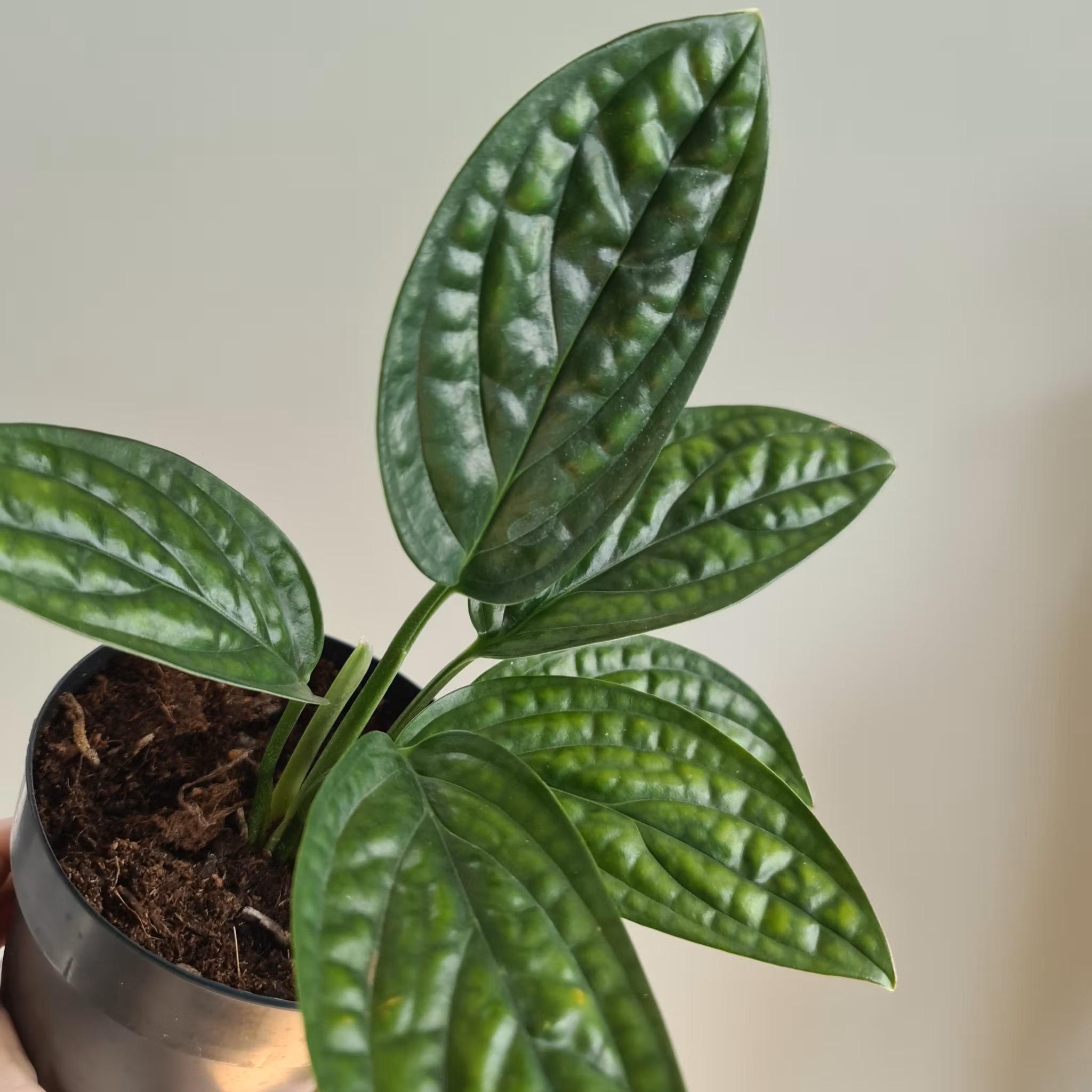 Epipremnum 'Marble Planet' är en imponerande klätterväxt som förgyller varje inomhusmiljö med sina vackra, marmorliknande blad. Bladen är ljusgröna med inslag av vitt, vilket ger ett sofistikerat och dekorativt utseende. Med sitt tåliga och snabbväxande växtsätt är den perfekt för att skapa en tropisk känsla och kan användas för att klättra på stöd eller hänga i ampel. Epipremnum 'Marble Planet' är en fantastisk växt för både små och stora utrymmen och passar i de flesta hem.