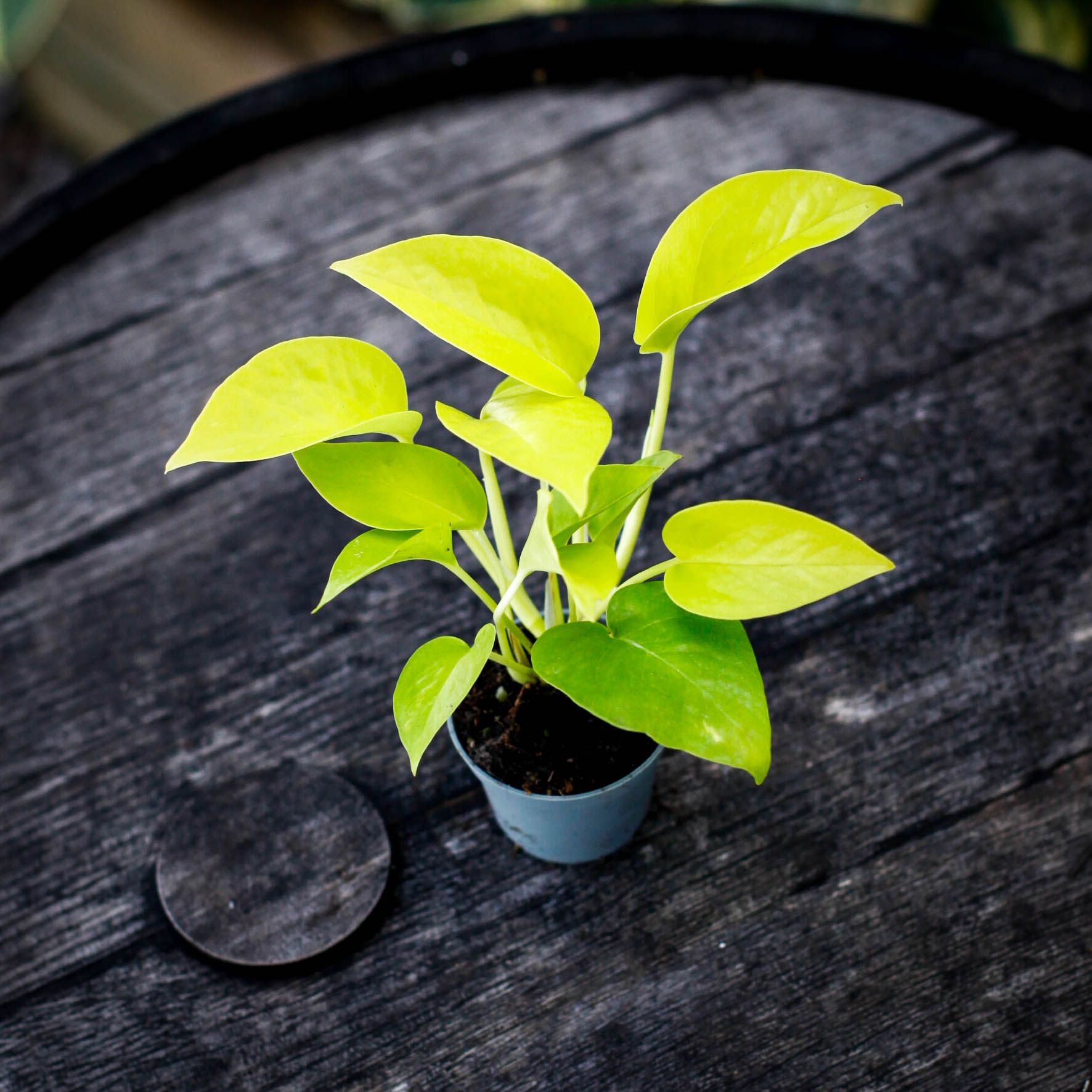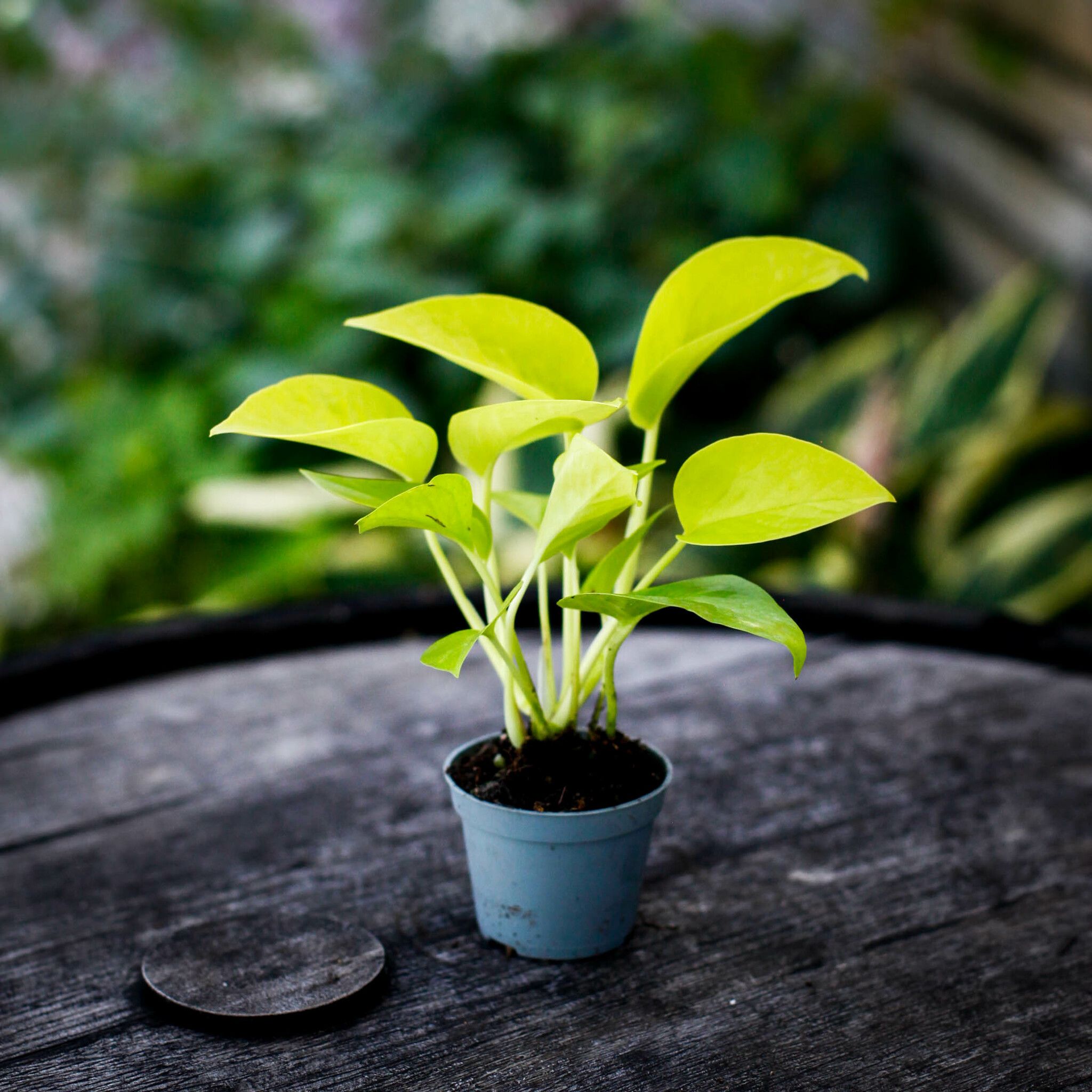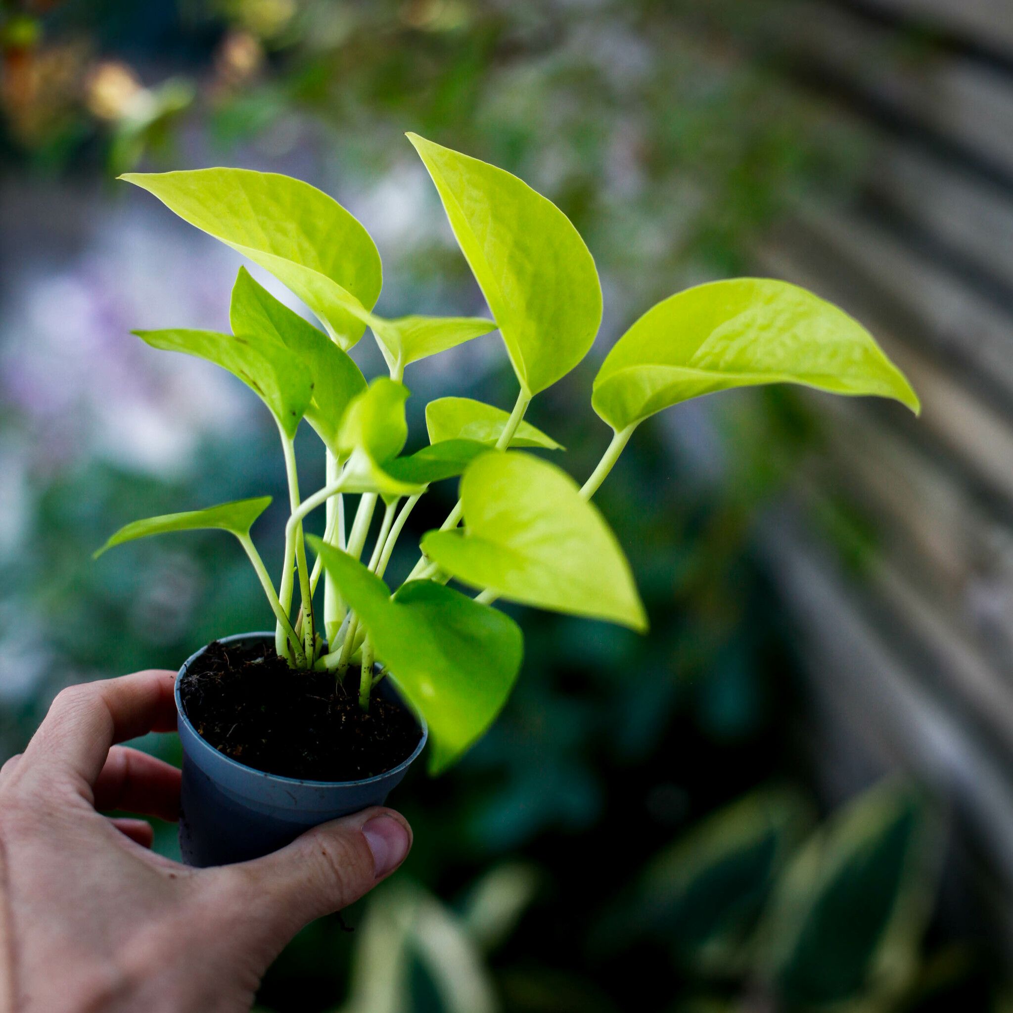 Epipremnum aureum 'Neon' – Neonfärgad gullranka som lyser upp i höstmörkret. Perfekt för att klättra längs väggar eller hänga i ampel. Skötsel: ljust, ej direkt