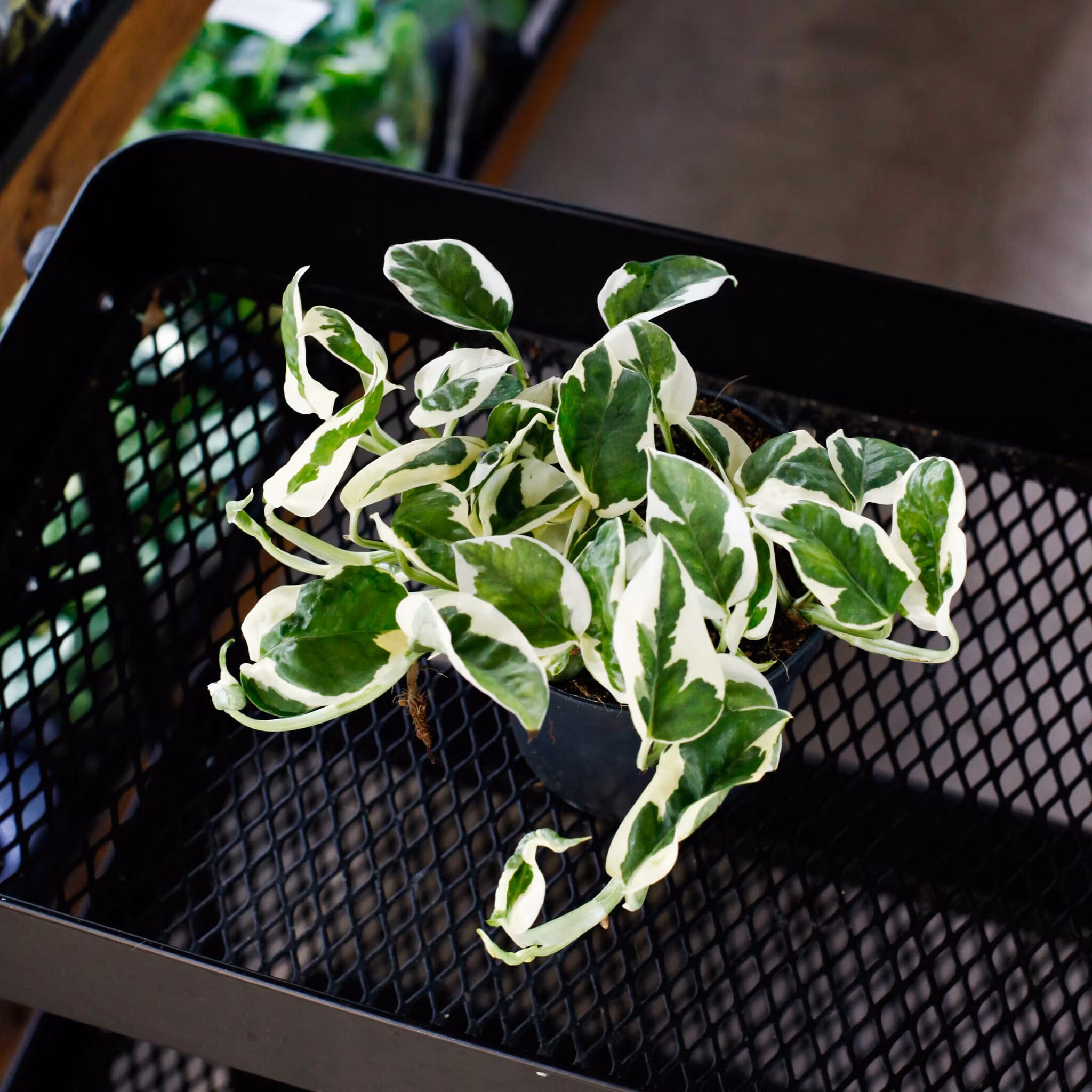 Epipremnum 'N'joy' - En trendig klätterväxt med gröna och vita marmorerade blad. Perfekt för alla rum, lättskött och ger en tropisk känsla. Köp nu! 🌿