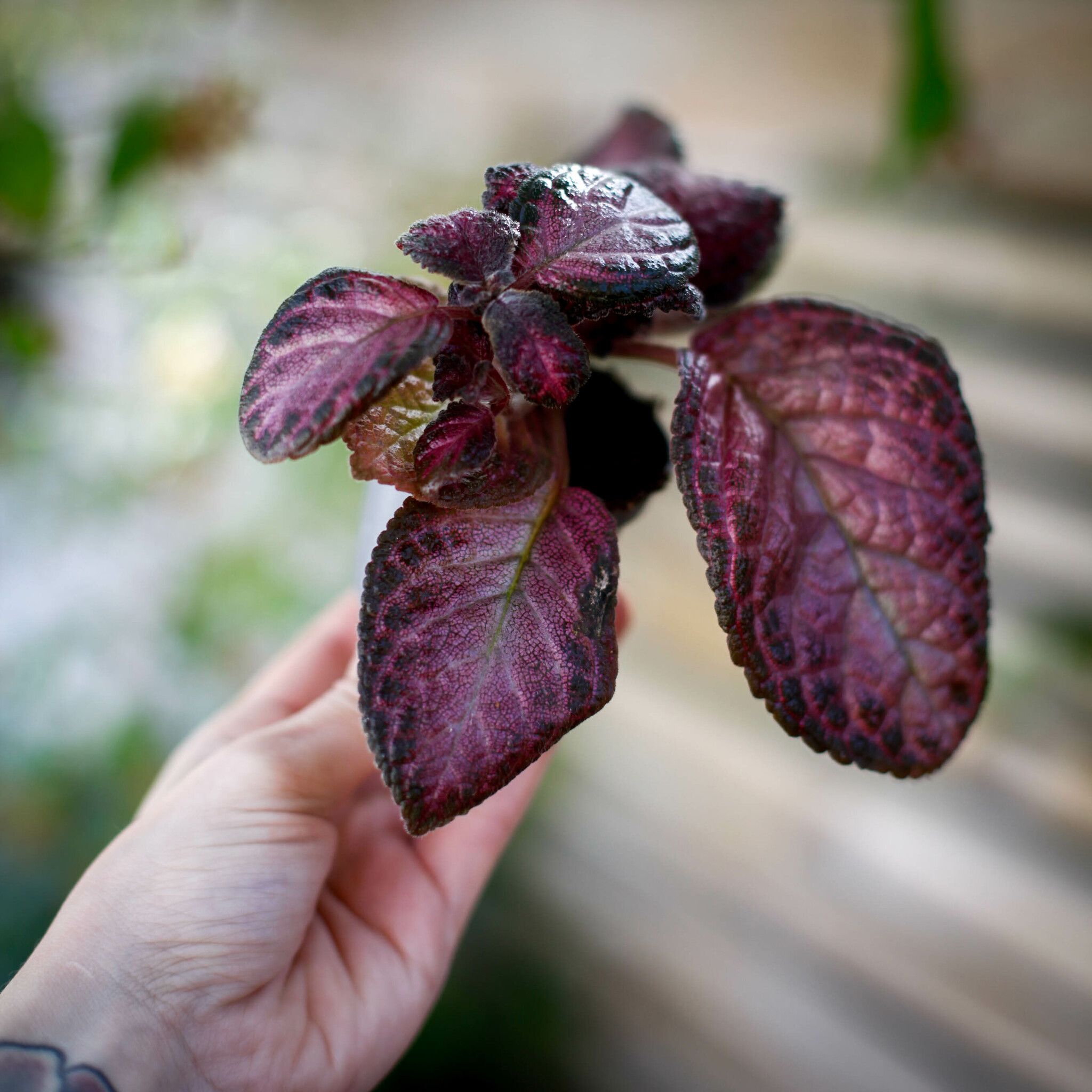 Episcia är en vacker och lättskött inomhusväxt med dekorativa, fläckiga eller marmoreringblad som kommer i olika nyanser av grönt, silver och rött. Den är idealisk för amplar eller som krukväxt, trivs bäst i ljusa, indirekta ljusförhållanden och kräver regelbunden vattning för att hålla jorden jämnt fuktig. Episcia blommar med färgglada, rörformade blommor och är perfekt för att lägga till en touch av färg och elegans till ditt hem.