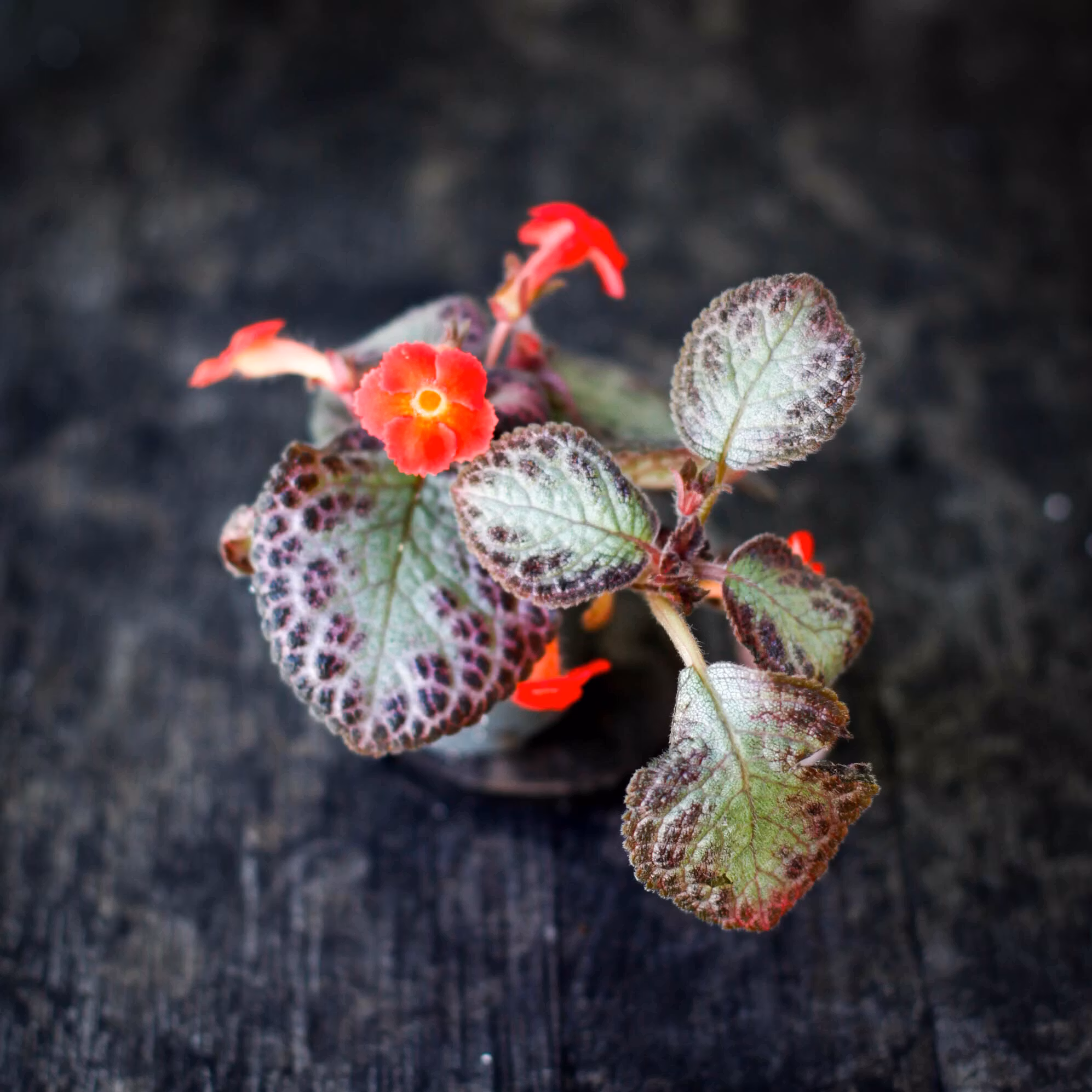 Episcia 'Pink Acajou' är en älskad inomhusväxt, känd för sina rosa blommor och silvriga blad. Den blommar rikligt och sprider en härlig färgklick i alla hem. Med rätt skötsel blir den en vacker och långlivad medlem i din växtsamling.