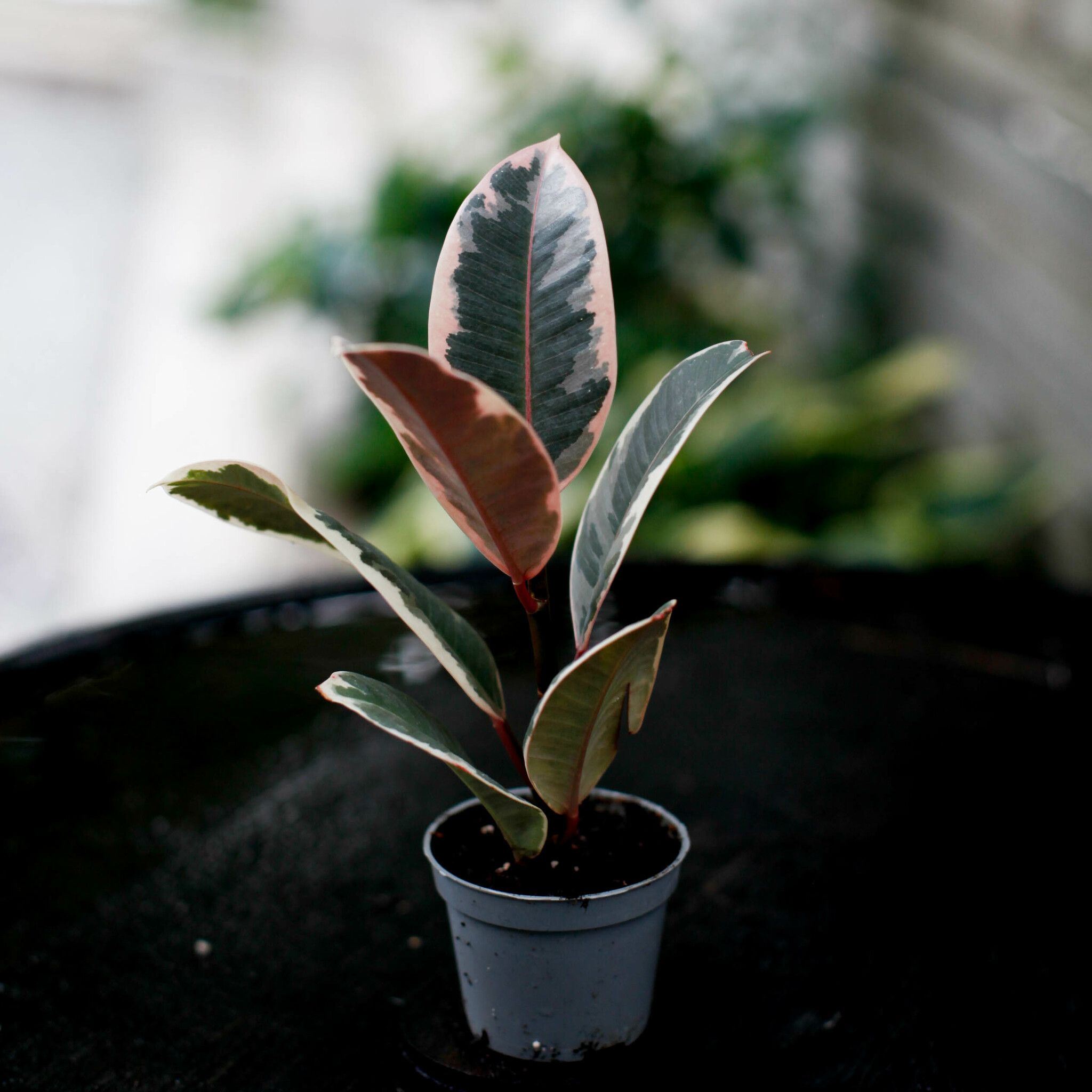 Ficus 'Belize' - 6 cm En lättskött fönsterfikus med rosa, krämvita och gröna blad. Perfekt för inomhusmiljöer. Beställ nu hos Klorofyllverket.se!