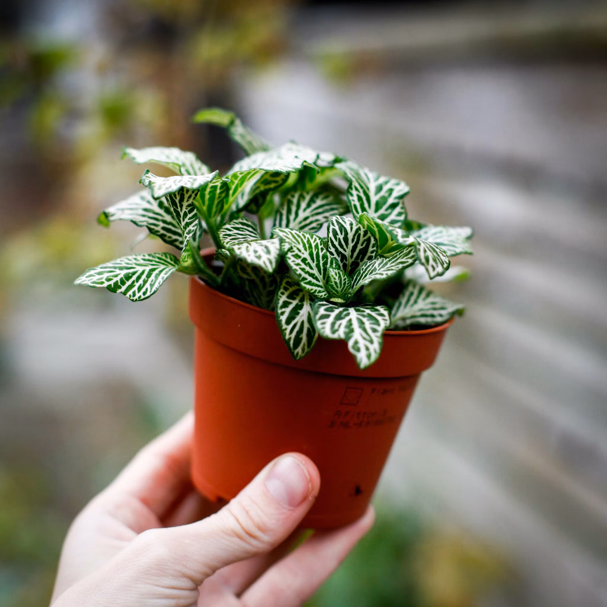 Fittonia ’Purple Snow Anne’, även kallad nervväxt, är en tropisk växt ur familjen Acanthaceae. Släktet Fittonia har sitt ursprung i Sydamerikas regnskogar, främst Peru, där växterna växer som marktäckare i fuktiga, skuggiga miljöer. Sorten ’Purple Snow Anne’ är särskilt uppskattad för sina friskt gröna blad med tydliga, vita nerver som ibland skiftar i svagt lila nyanser – en livfull och dekorativ växt som ger ett fräscht inslag i inomhusmiljön.