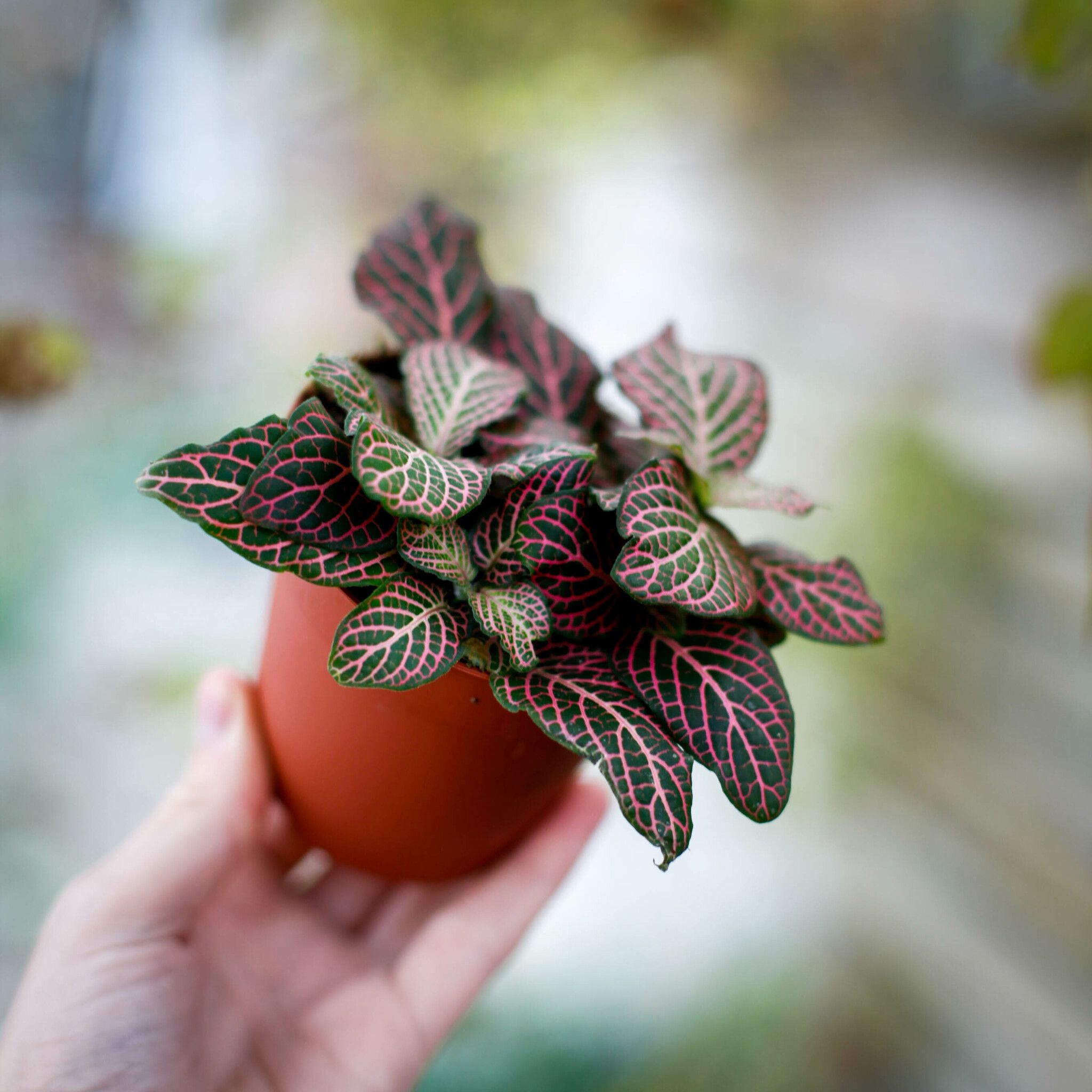 Fittonia 'Red Angel' 8,5 cm - Färgsprakande inomhusväxt med rosa nervådringar. Enkel skötsel för nybörjare och experter. Skapa tropisk känsla hemma!