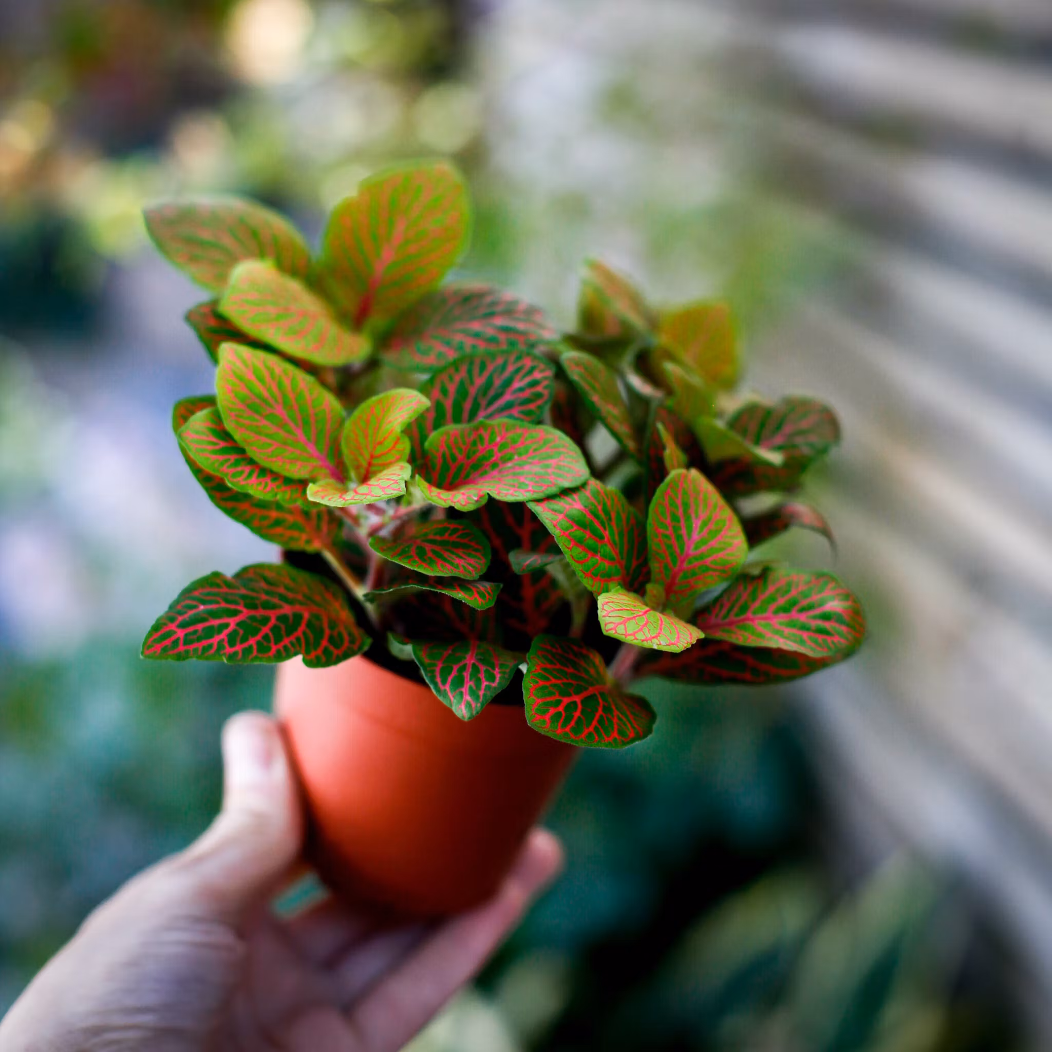 Fittonia 'Skeleton' kombinerar ett ovanligt färgspel med lättskött charm – en perfekt miniväxt med maximal effekt!