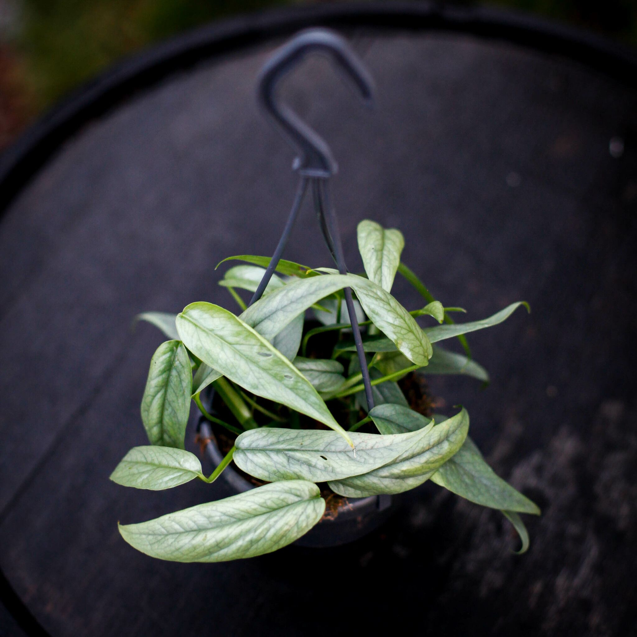 Epipremnum pinnatum 'Cebu Blue' är en unik och elegant klätterväxt som kännetecknas av sina silverblå blad med en metallisk glans. Denna exotiska växt har sitt ursprung i Filippinerna, där den naturligt slingrar sig uppför träd och ytor. Med sin förmåga att utveckla djupa fenestreringar (bladflikar) när den blir äldre, är den en favorit bland samlare och växtälskare. Perfekt för både amplar och mosspåle, denna snabbväxande skönhet är ett måste i varje grön oas.