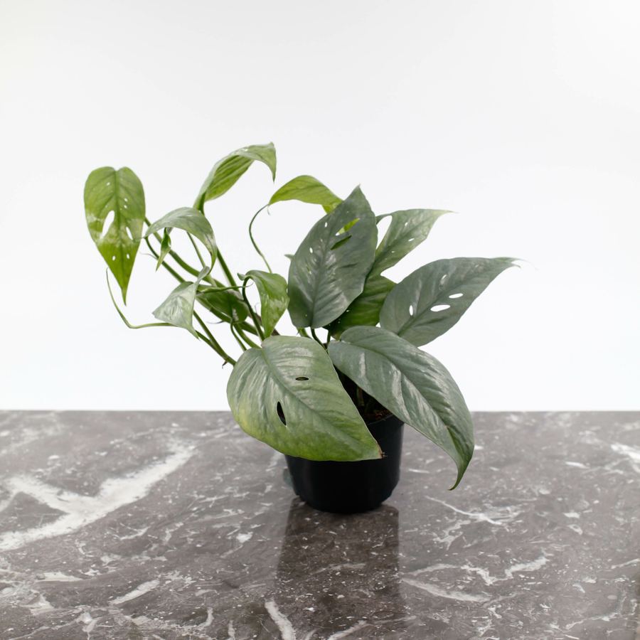 Epipremnum 'Cebu Blue' är en tropisk klätterväxt med blågrå, pilformade blad och ett snabbt växtsätt. Den är lätt att sköta och gör sig perfekt för att ge ditt hem en tropisk och sofistikerad känsla med sin unika bladfärg och form.
