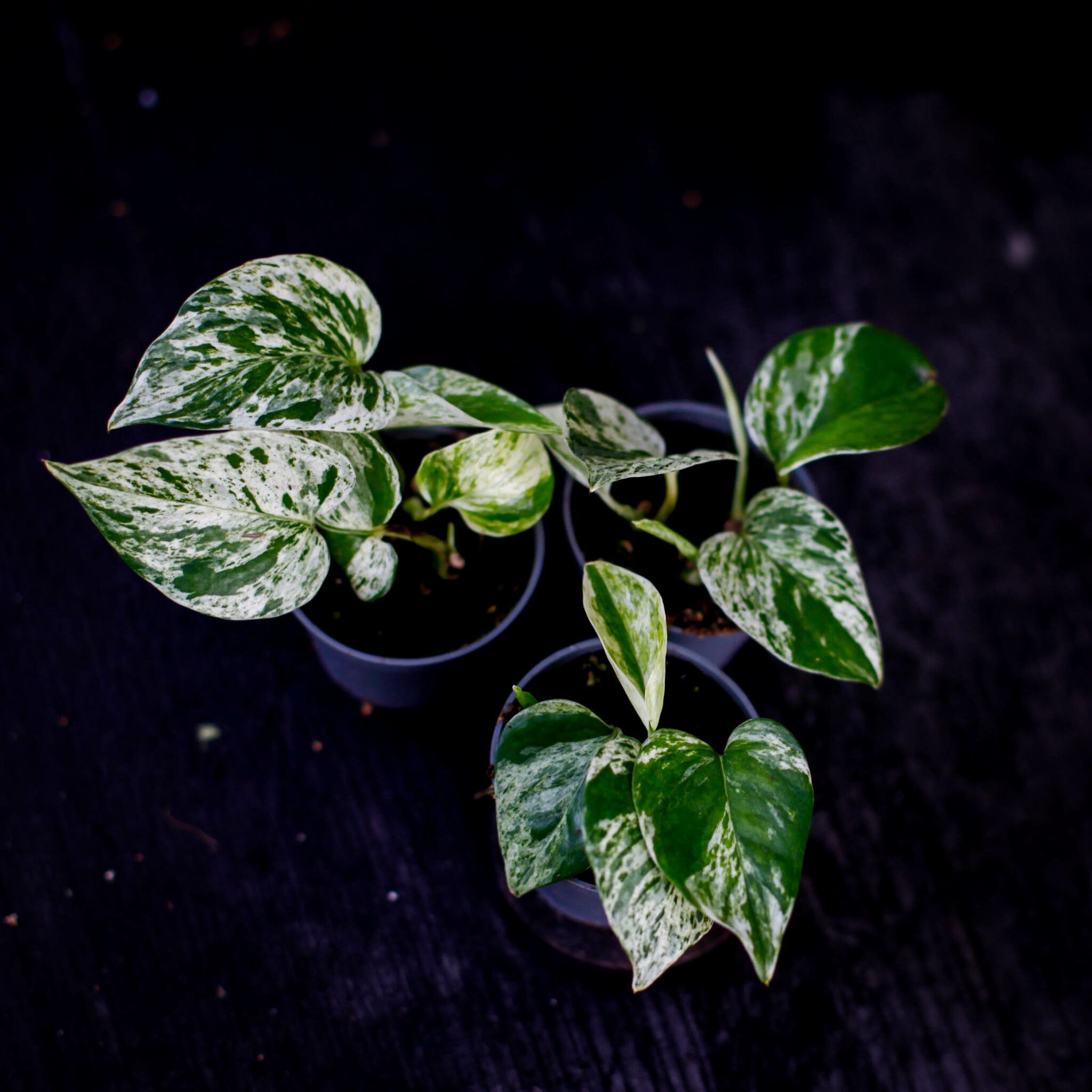 Epipremnum aureum ’Marble Queen’ är en populär klätter- och hängväxt inom familjen Araceae. Sorten härstammar från tropiska områden i Sydostasien och är uppskattad för sitt täta växtsätt och sin tydliga vitgröna variegering.