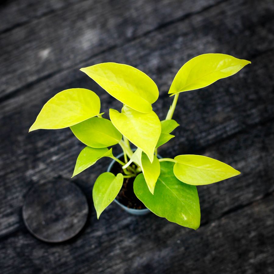 Epipremnum aureum 'Neon' – Neonfärgad gullranka som lyser upp i höstmörkret. Perfekt för att klättra längs väggar eller hänga i ampel. Skötsel: ljust, ej direkt