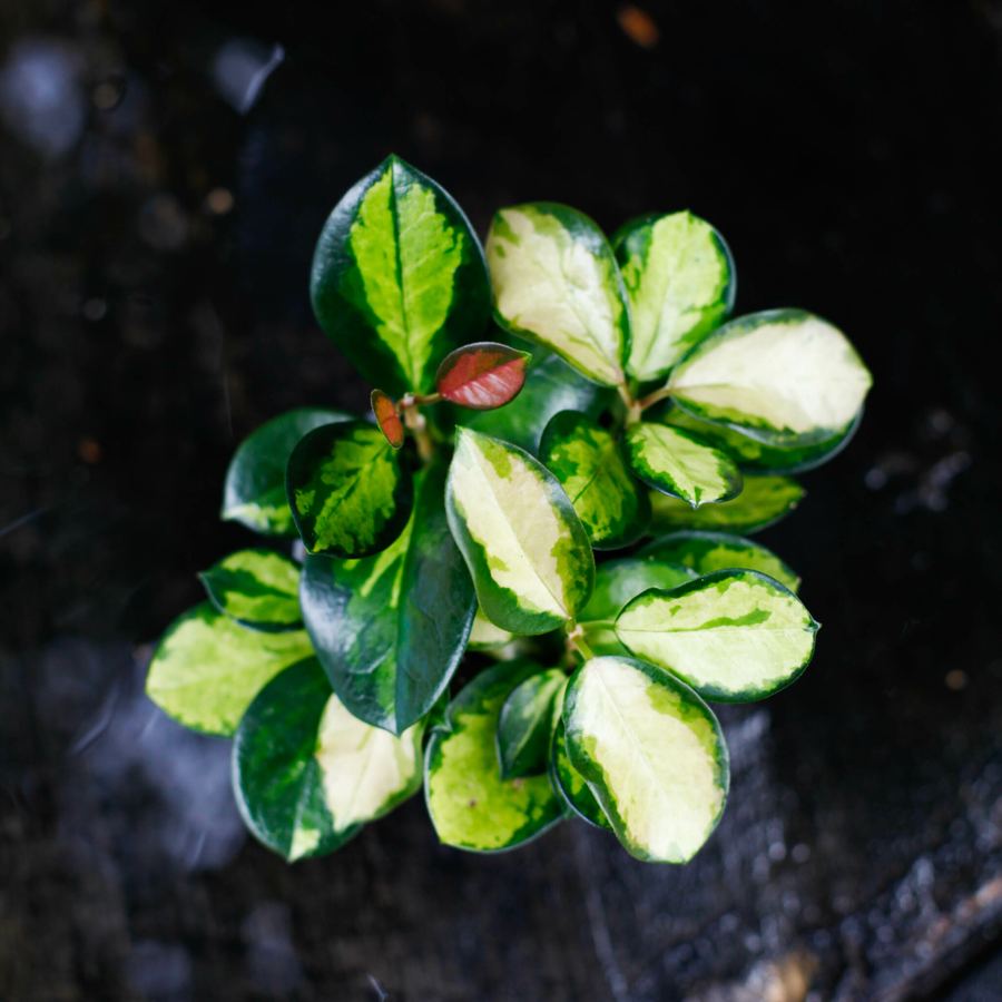 Hoya 'Lisa'12 cm, även kallad Porslinsblomma är en lättskött växt som får långa rankor och är fin i ampel. Bladen är vackert varigerade.