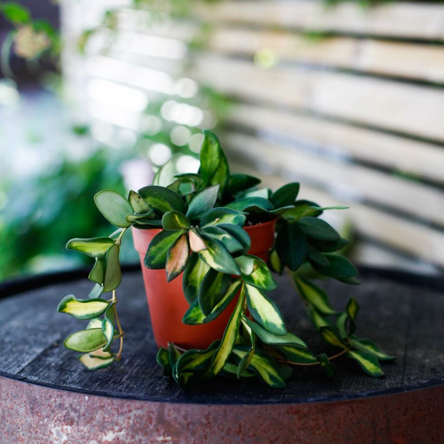 Hoya DS-70, 12 cm kruka., även känd som Porslinsblomma, är en lättskött klätterväxt med dekorativa, stjärnformade blommor och glänsande blad. Perfekt för ampel!