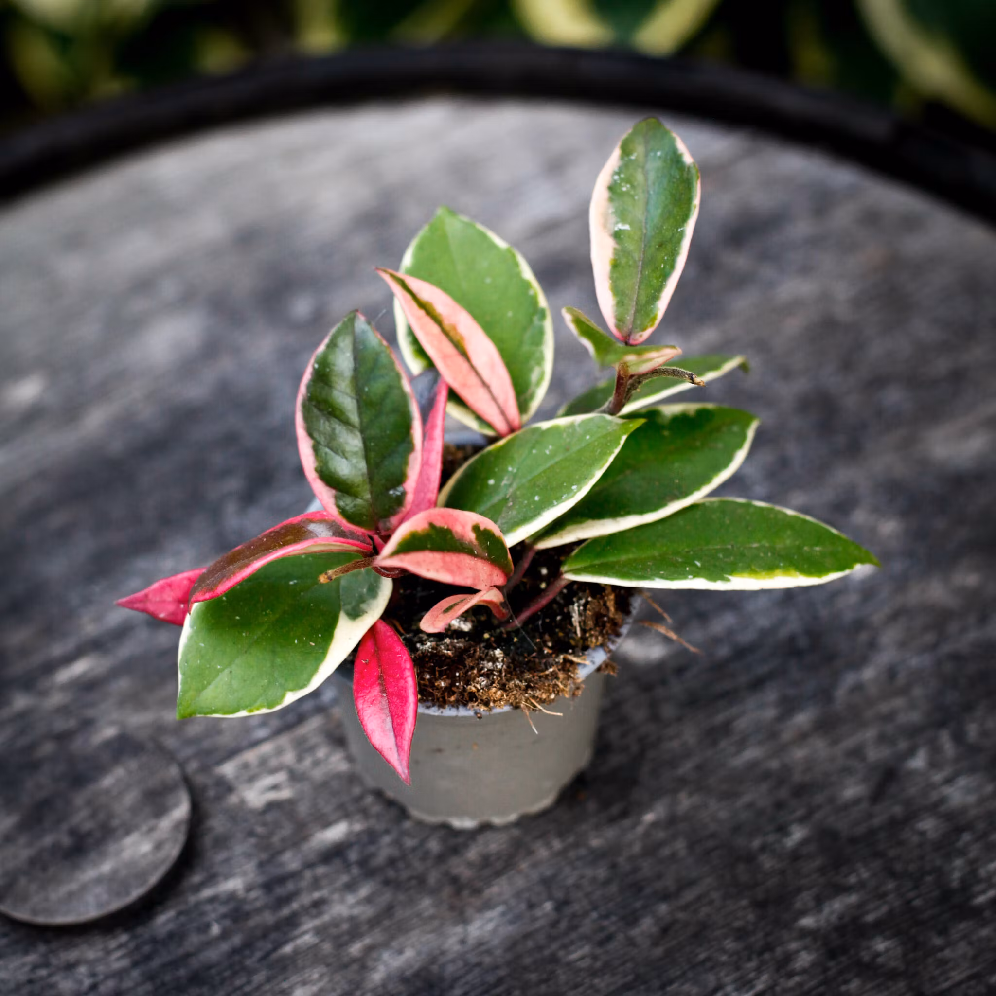 Hoya 'Flamingo Dream' – en tropisk skönhet med variegerade, vaxartade blad. Perfekt för ljusa platser, lättskött och en favorit bland samlare.