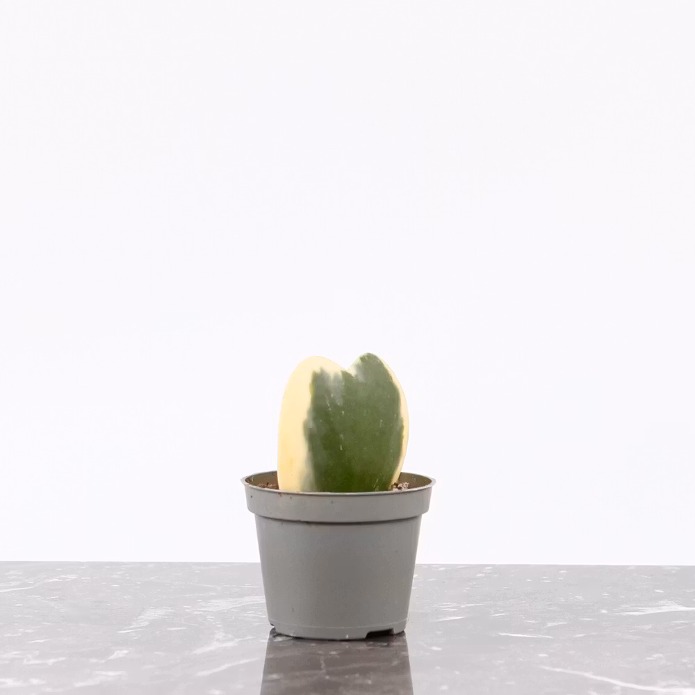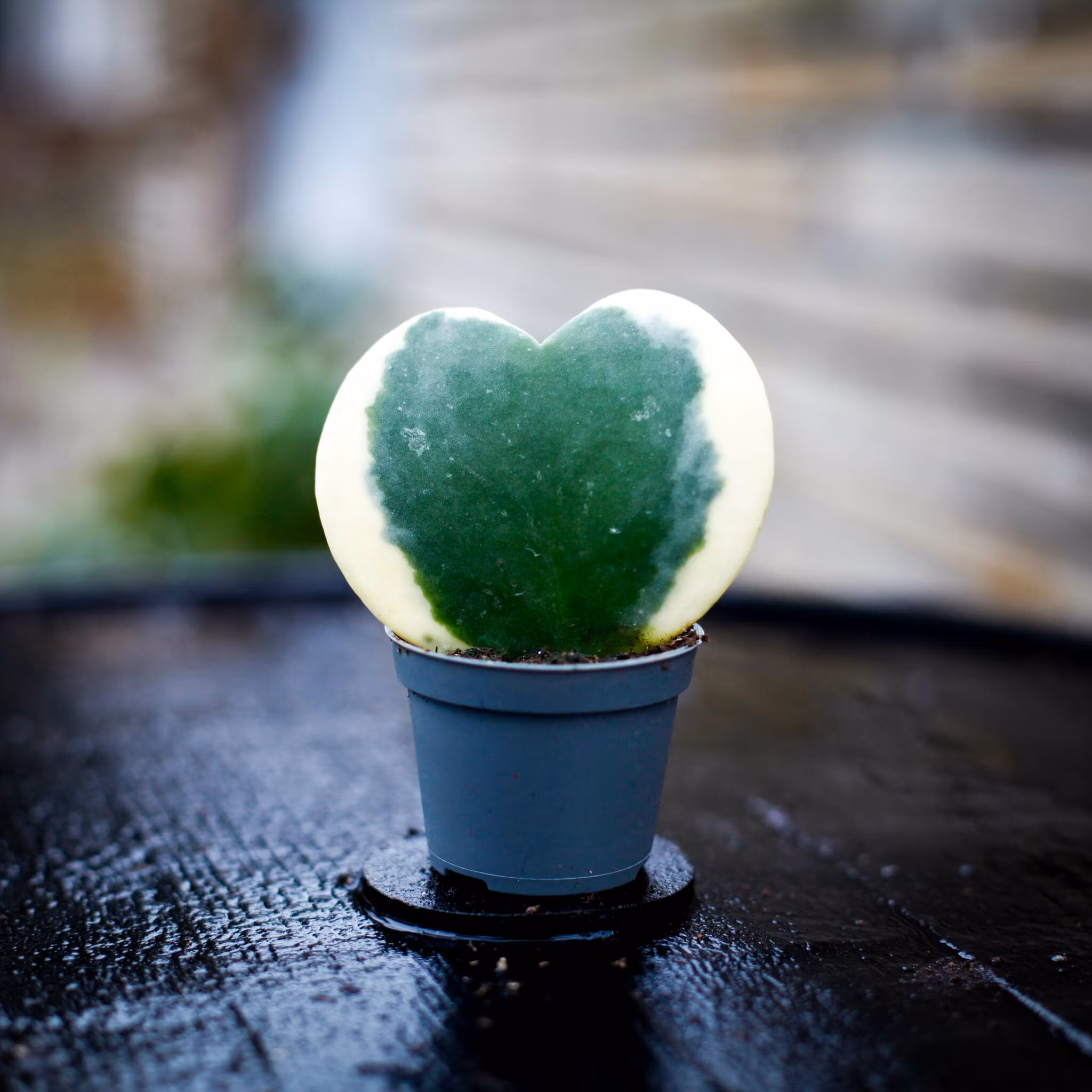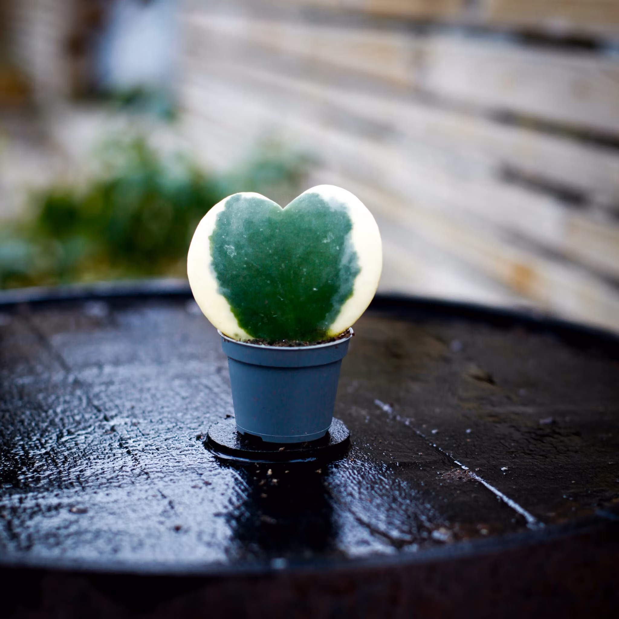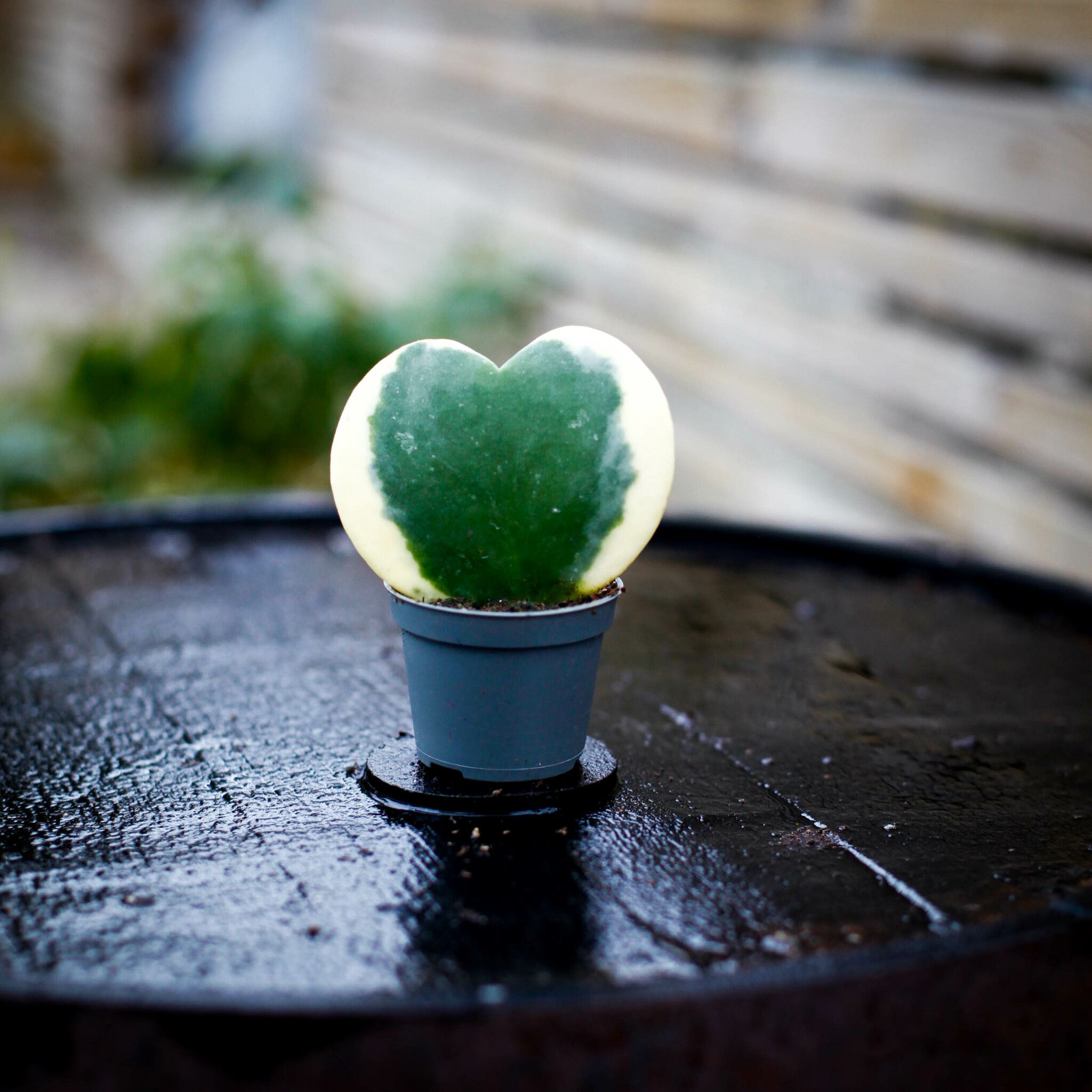 Hoya kerrii 'Variegata' är känd för sina hjärtformade blad, som gör den till en symbol för kärlek och vänskap. Växten blommar med små, stjärnformade blommor som avger en söt doft och är verkligen ett ögonblicks nöje när den blommar. Eftersom det är en långsamväxande växt och tål att bli lite torr, gör den till en utmärkt växt för den som vill ha ett vackert tillskott utan att behöva ge för mycket uppmärksamhet varje dag.