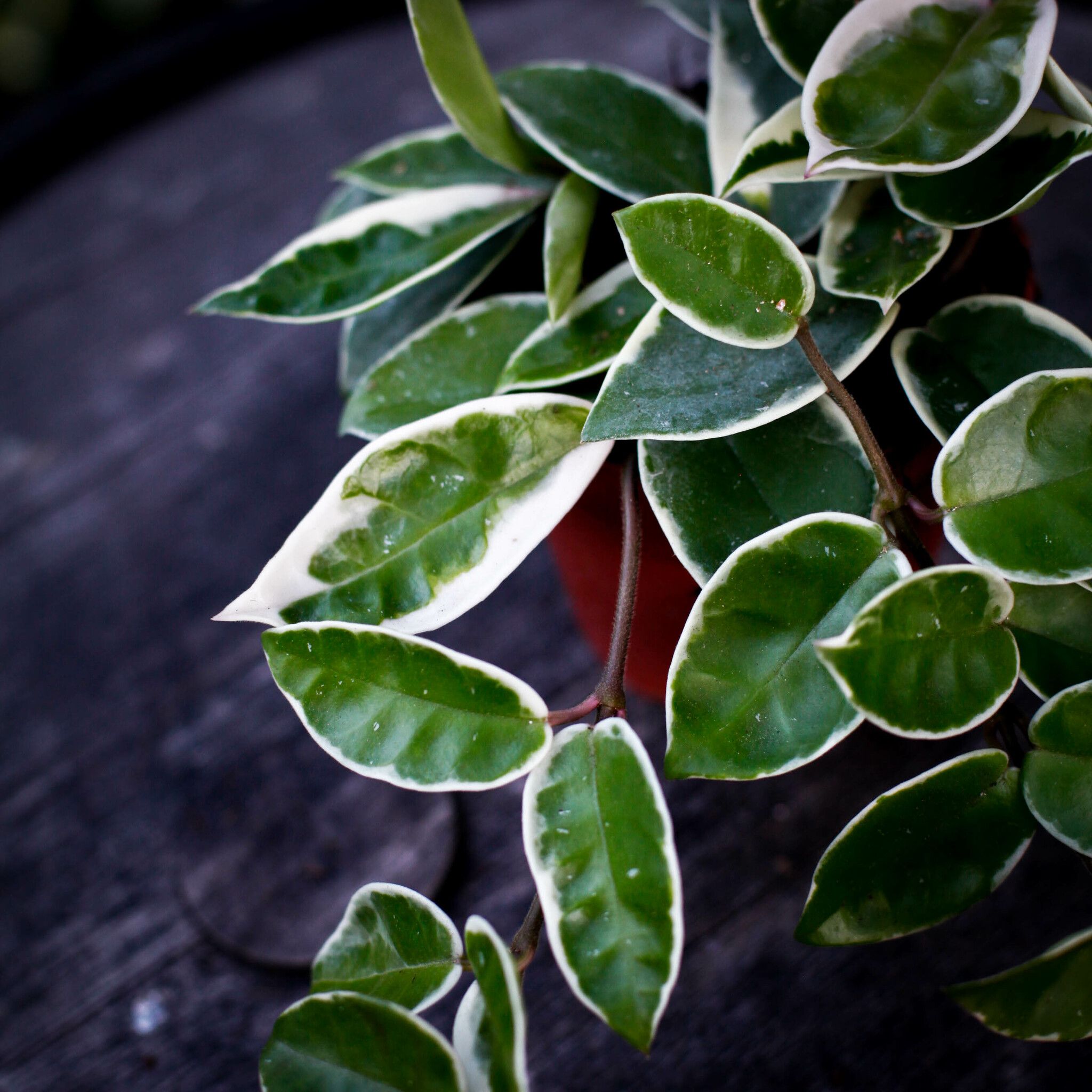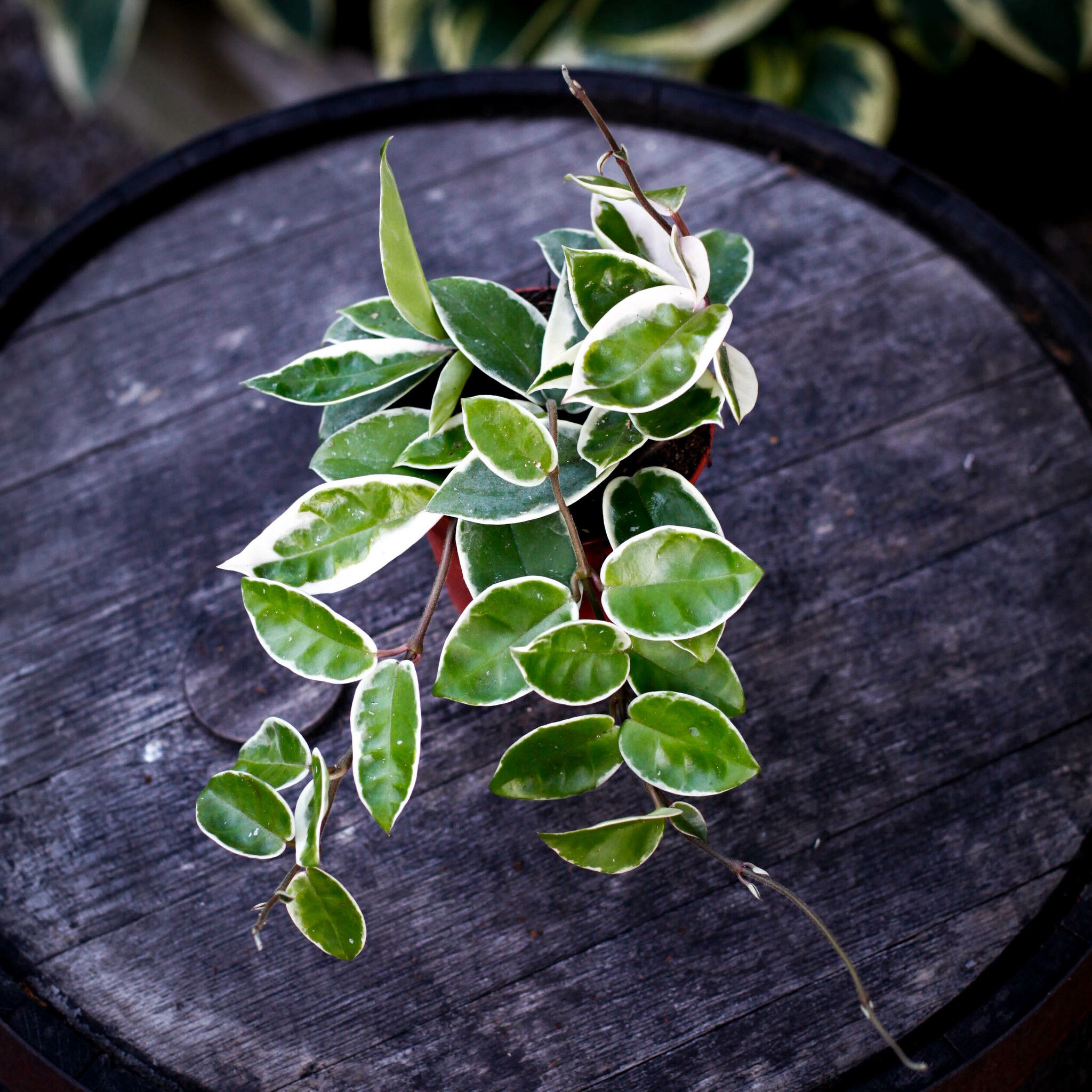Hoya 'Krimson Queen' är en lättskött klättrare med brokiga blad och doftande blommor. Perfekt i ampel eller spaljé för färg och form i ditt hem.
