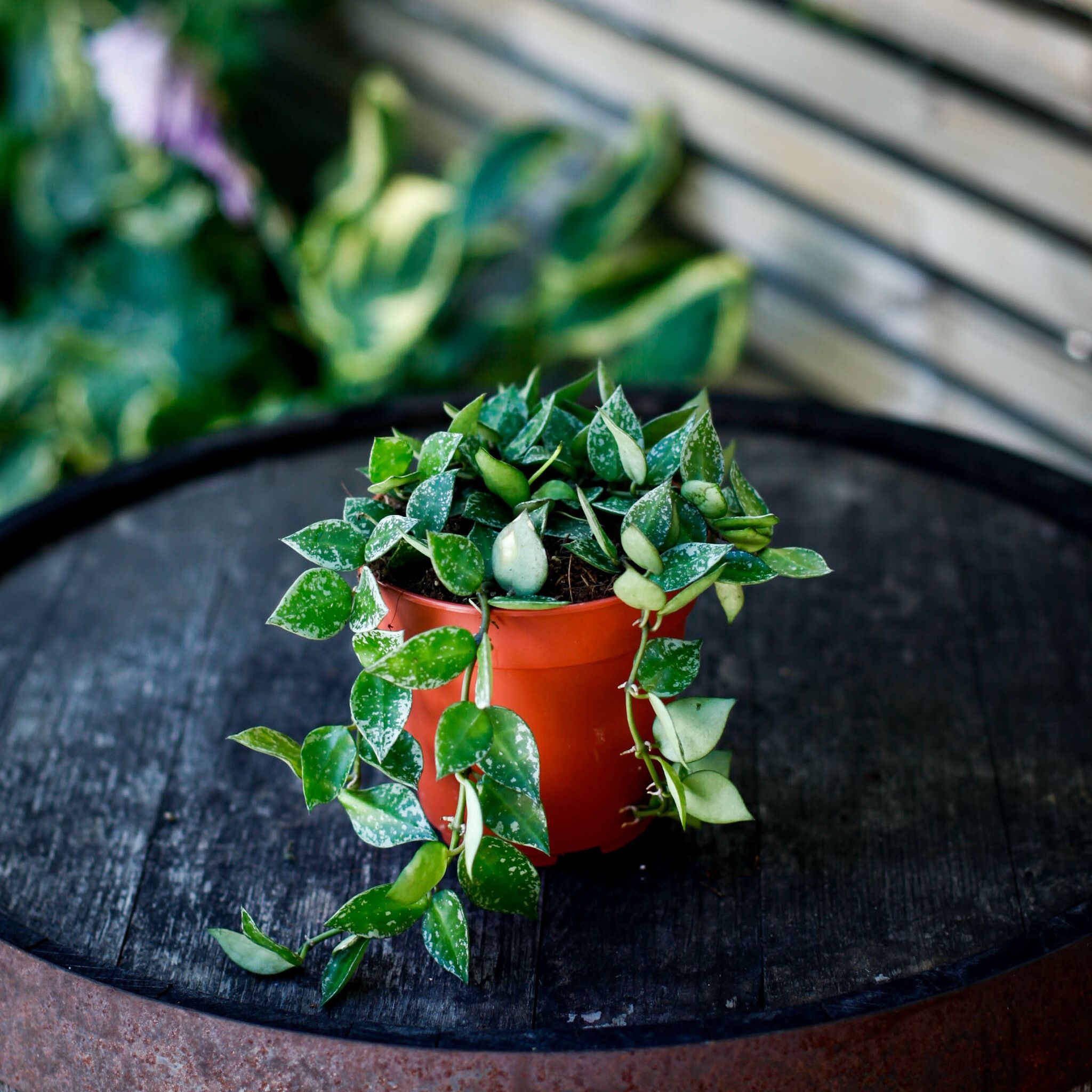 Hoya Krohniana 'Splash' 12 cm - Porslinsblomma En skatt från Filippinerna, hjärtformade blad & krämvita blommor med doft.