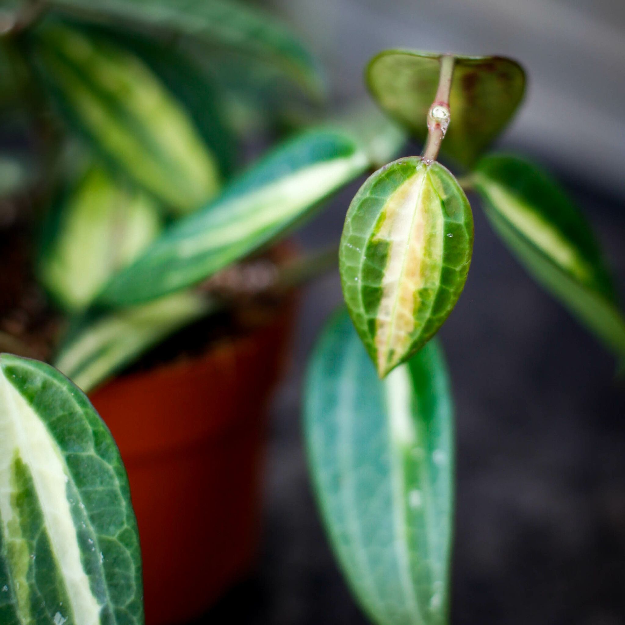 Hoya latifolia 'Pot Of Gold' är en fantastisk variation av Hoya latifolia, känd för sina stora, robusta blad med en gyllene, krämfärgad variegering. Denna unika växt är ett perfekt tillskott för samlare som söker något ovanligt och elegant. Med sitt klättrande växtsätt och tåliga natur är 'Pot Of Gold' ett blickfång i alla hem och ger en exotisk touch till inredningen.