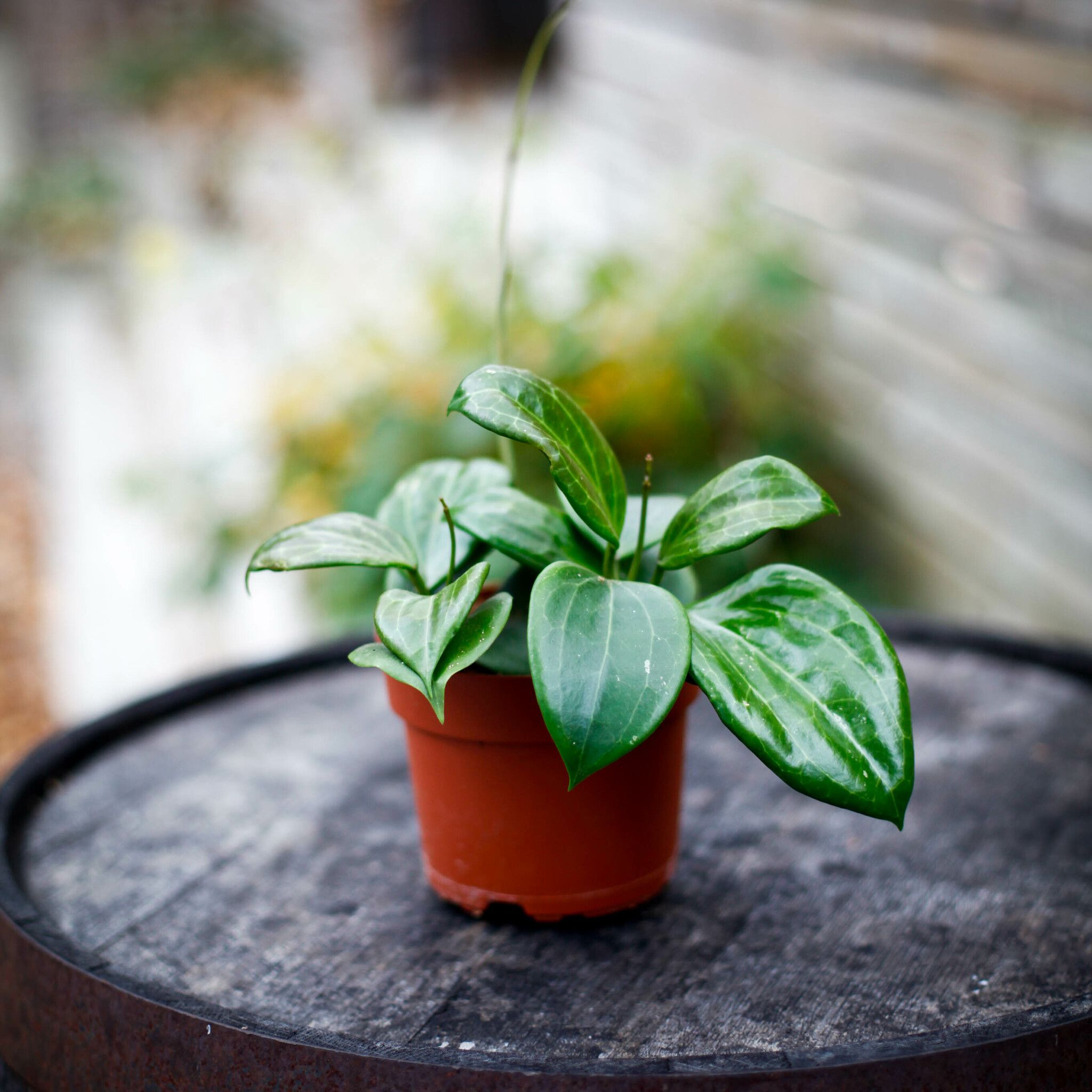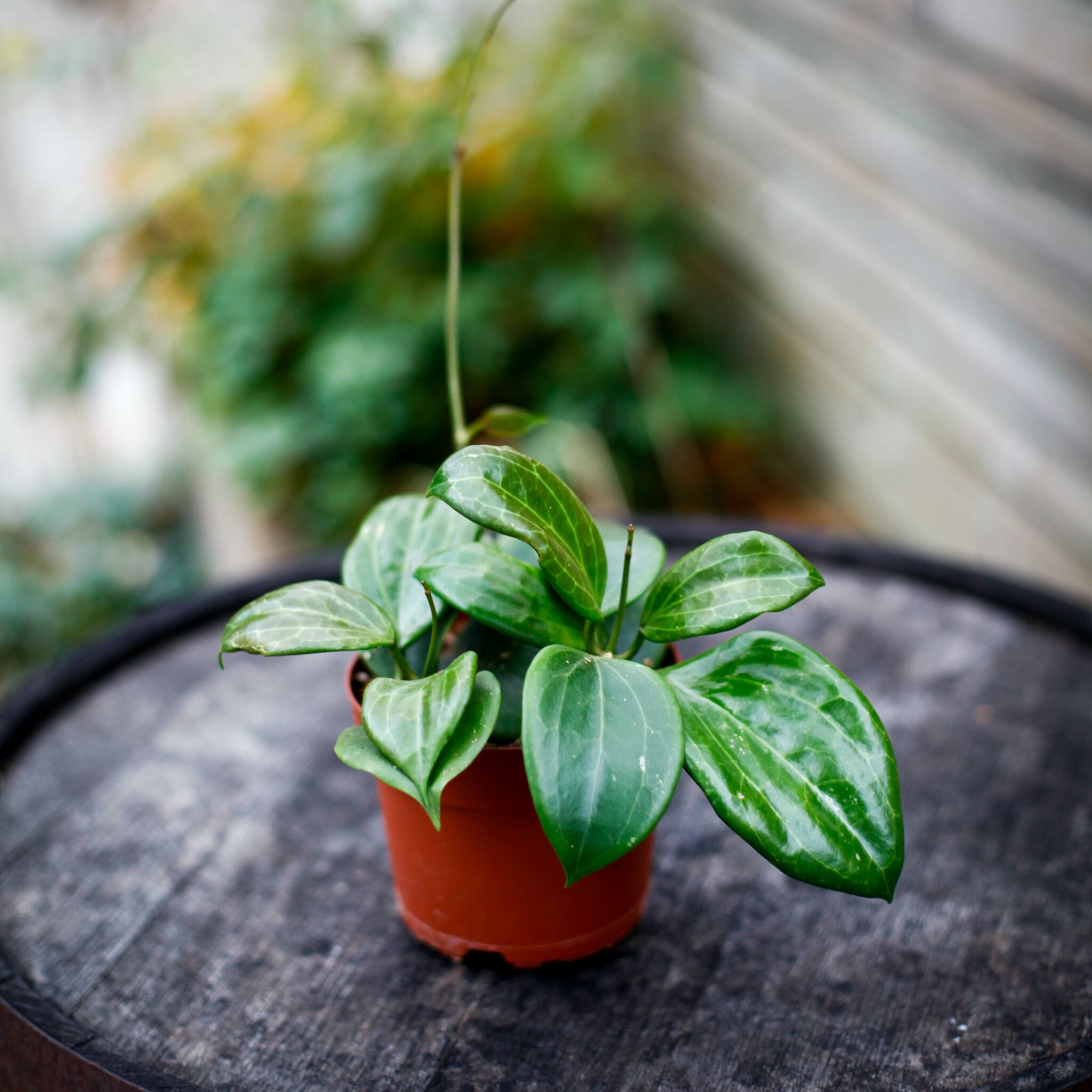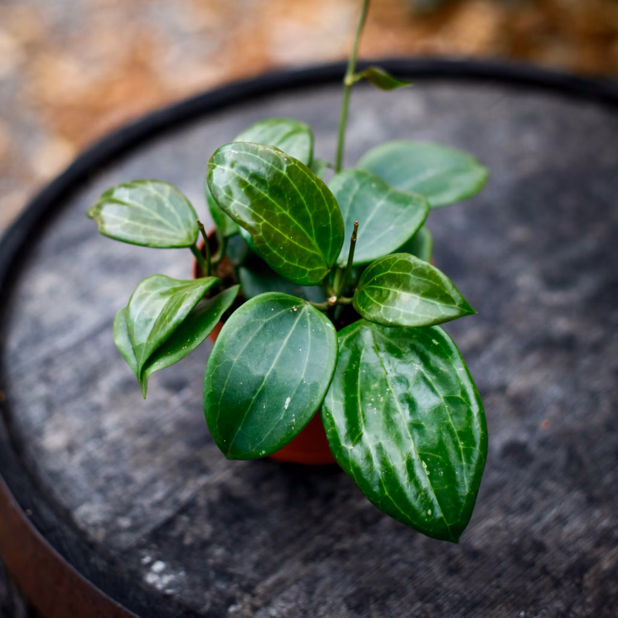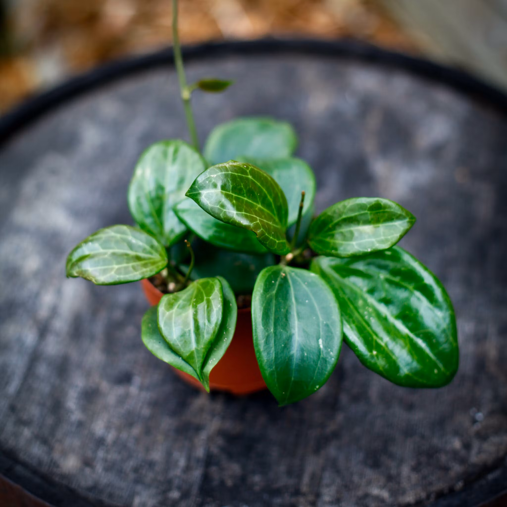 Upptäck Hoya Quinquenervia 12 cm– en unik porslinsblomma med glansiga blad och doftande blommor, perfekt för att ge ditt hem en exotisk touch. 🌿✨