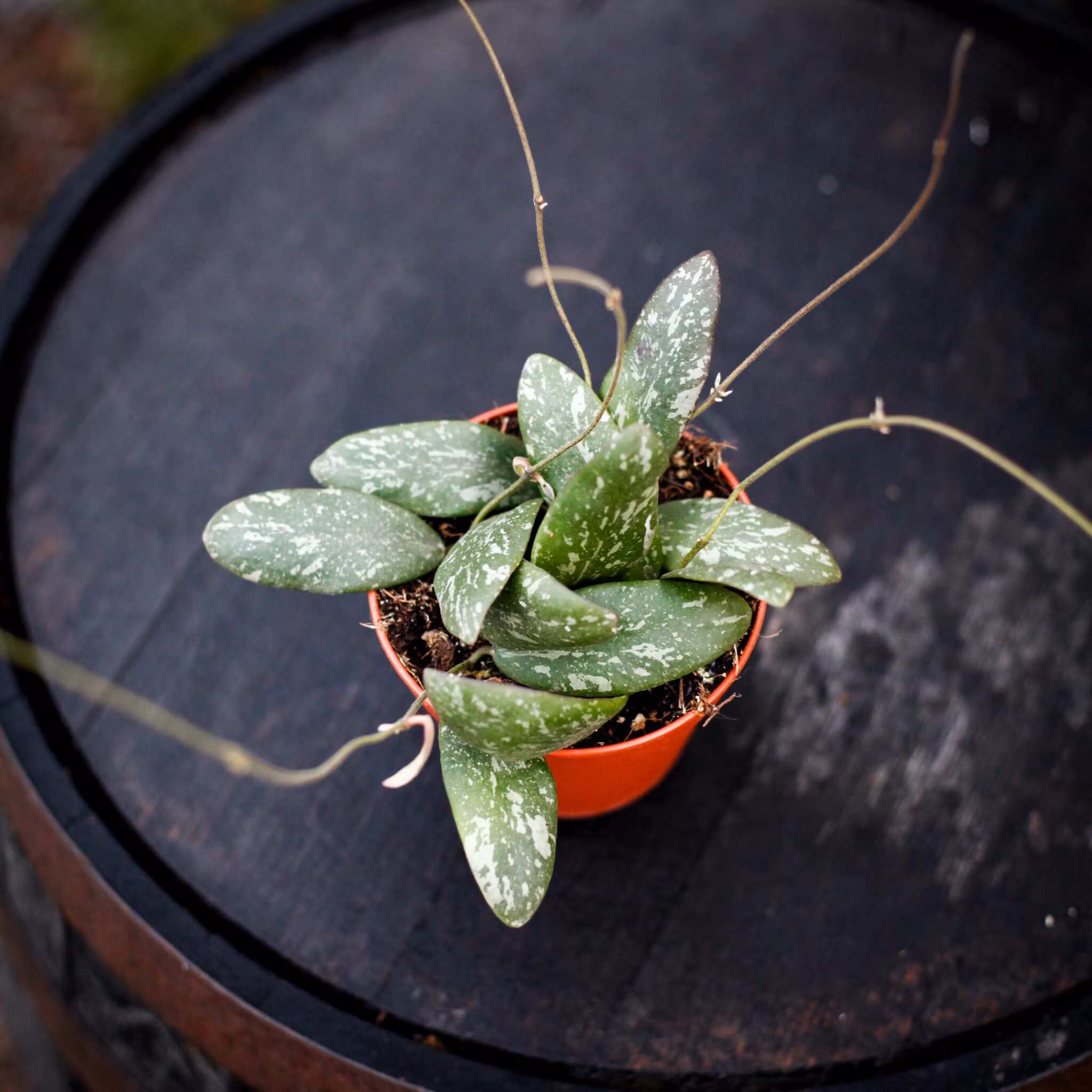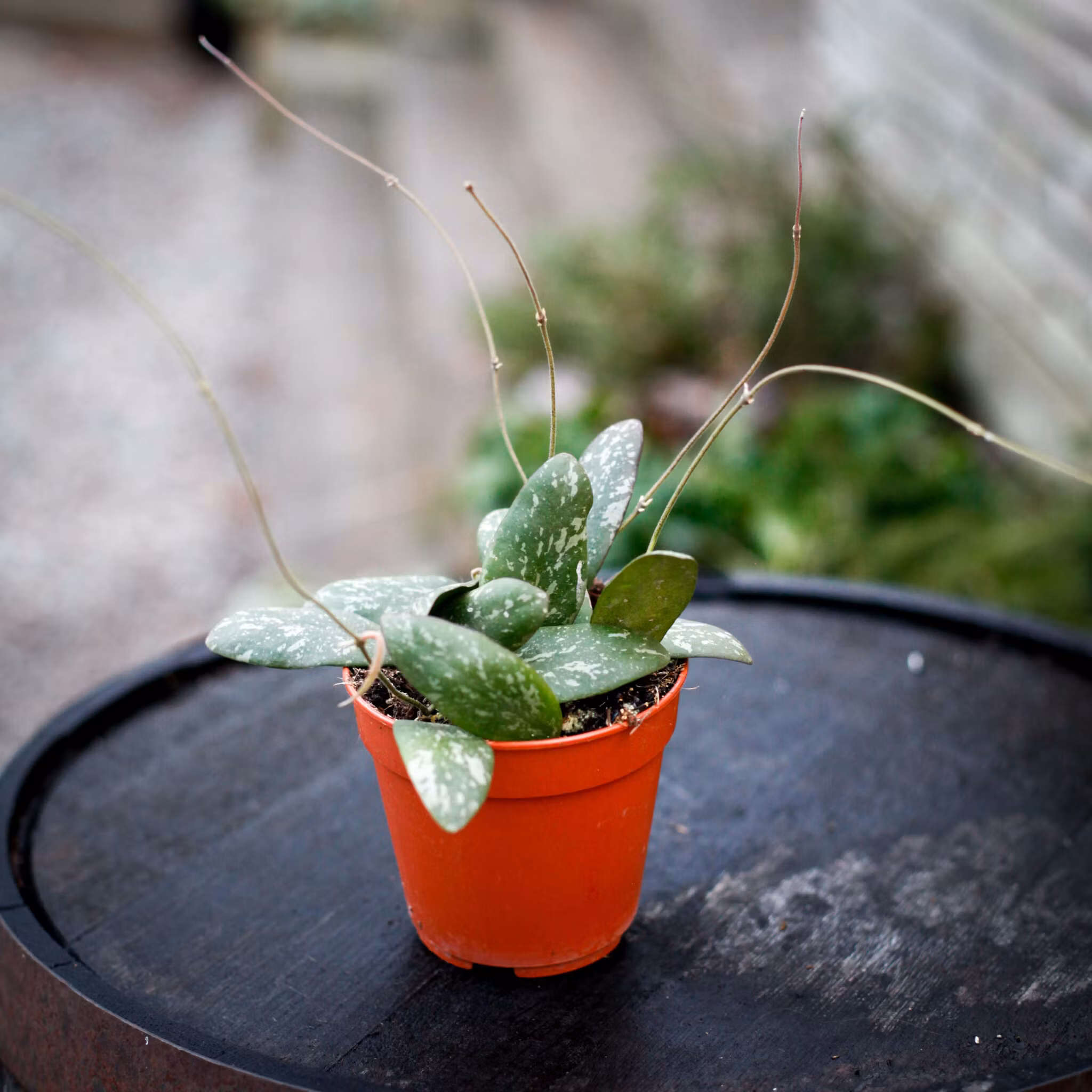Hoya sigillatis - En sällsynt porslinsblomma med marmorerade blad och doftande blommor. Perfekt för hängande amplar och växtstöd. Köp hos Klorofyllverket!