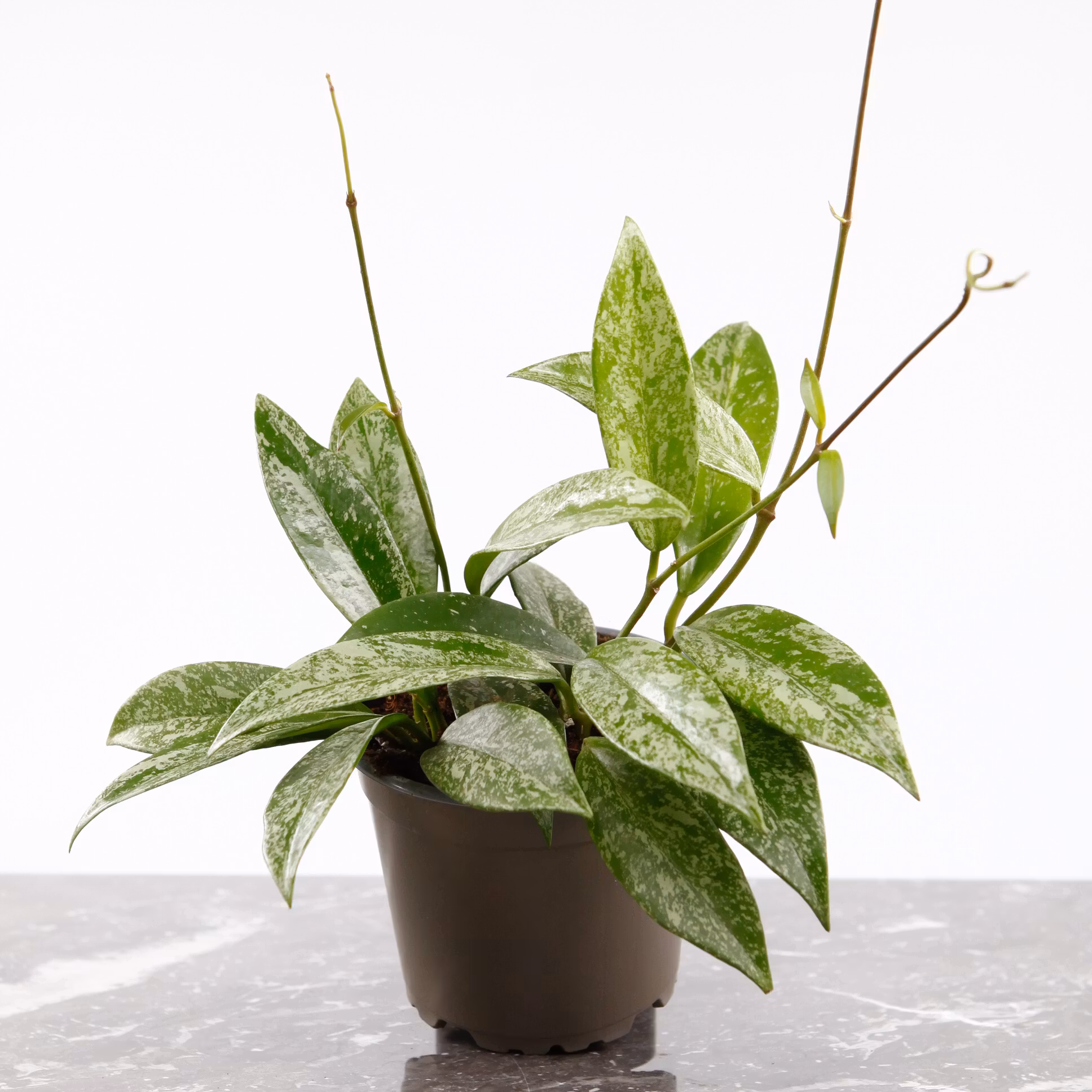 Hoya 'Silver Spot' 12 cm - En lättskött porslinsblomma med unika silverprickar. Trivs bäst i indirekt ljus och kräver minimal vattning. Perfekt för alla växtäls