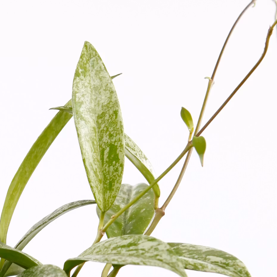 Hoya 'Silver Spot' är en vacker och intressant variant av den populära vaxblomman. Med sina unika, silverfärgade fläckar på de mörkgröna bladen, är denna växt ett fantastiskt tillskott till ditt växtsamling. Hoya 'Silver Spot' är lättskött, vilket gör den till ett bra val för både nybörjare och erfarna växtälskare.