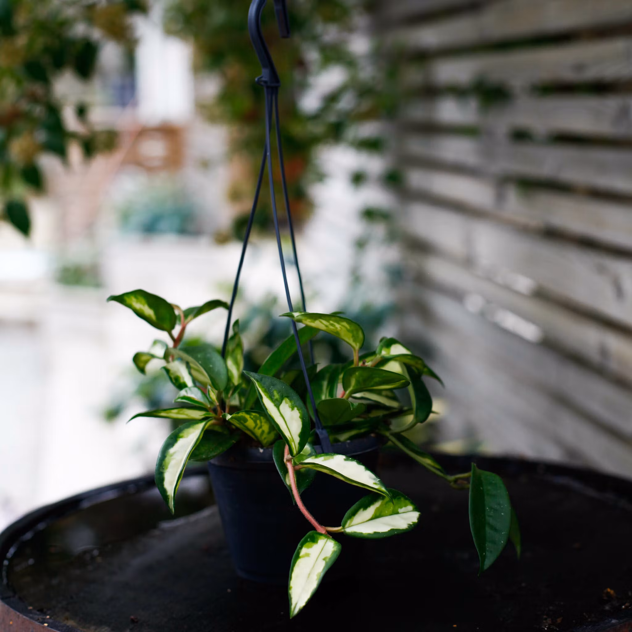 Hoya carnosa 'Tricolor' i Ampel – En Färgstark Vaxblomma som Hänger vackert