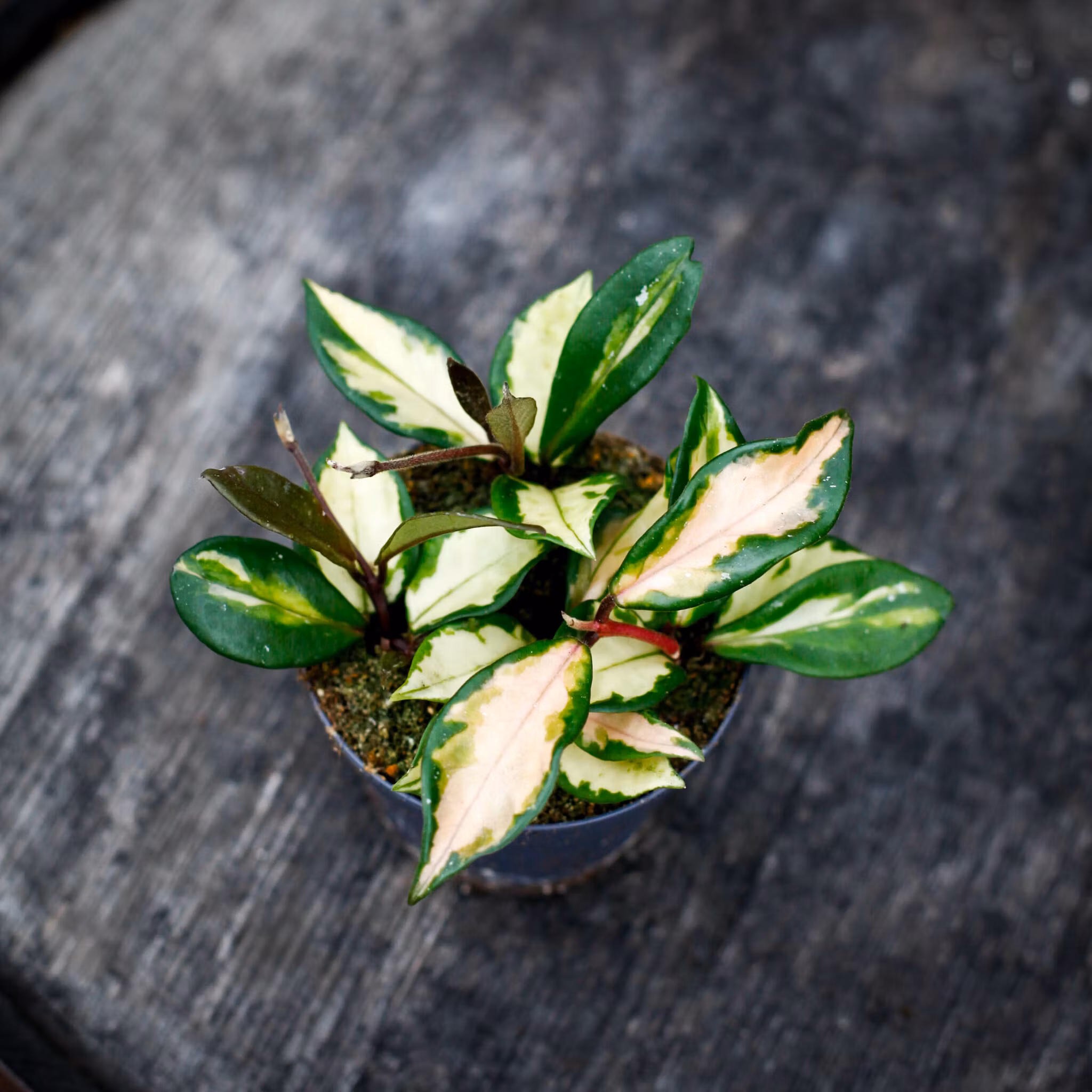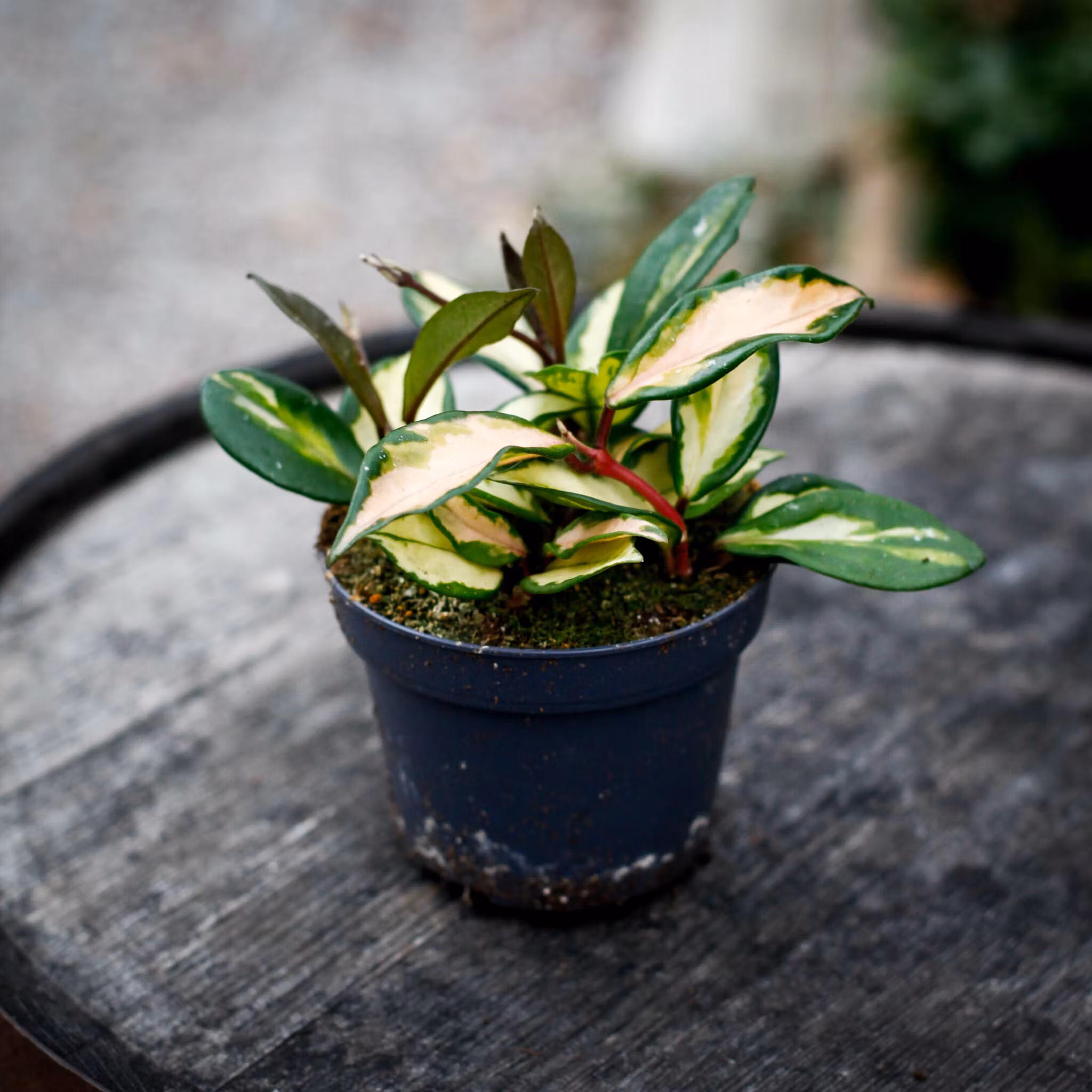 Hoya 'Tricolor' är en hybrid som är särskilt känd för sina vackra, flerfärgade blad som kan gå från grön till rosa och vita nyanser beroende på ljuset och växtförhållandena. Växten blommar även med små, stjärnformade blommor som ger ett härligt doftande tillskott till ditt hem. Hoya 'Tricolor' är inte bara dekorativ utan också lätt att ta hand om, vilket gör den till en utmärkt växt för den som vill ha något speciellt i sitt hem.