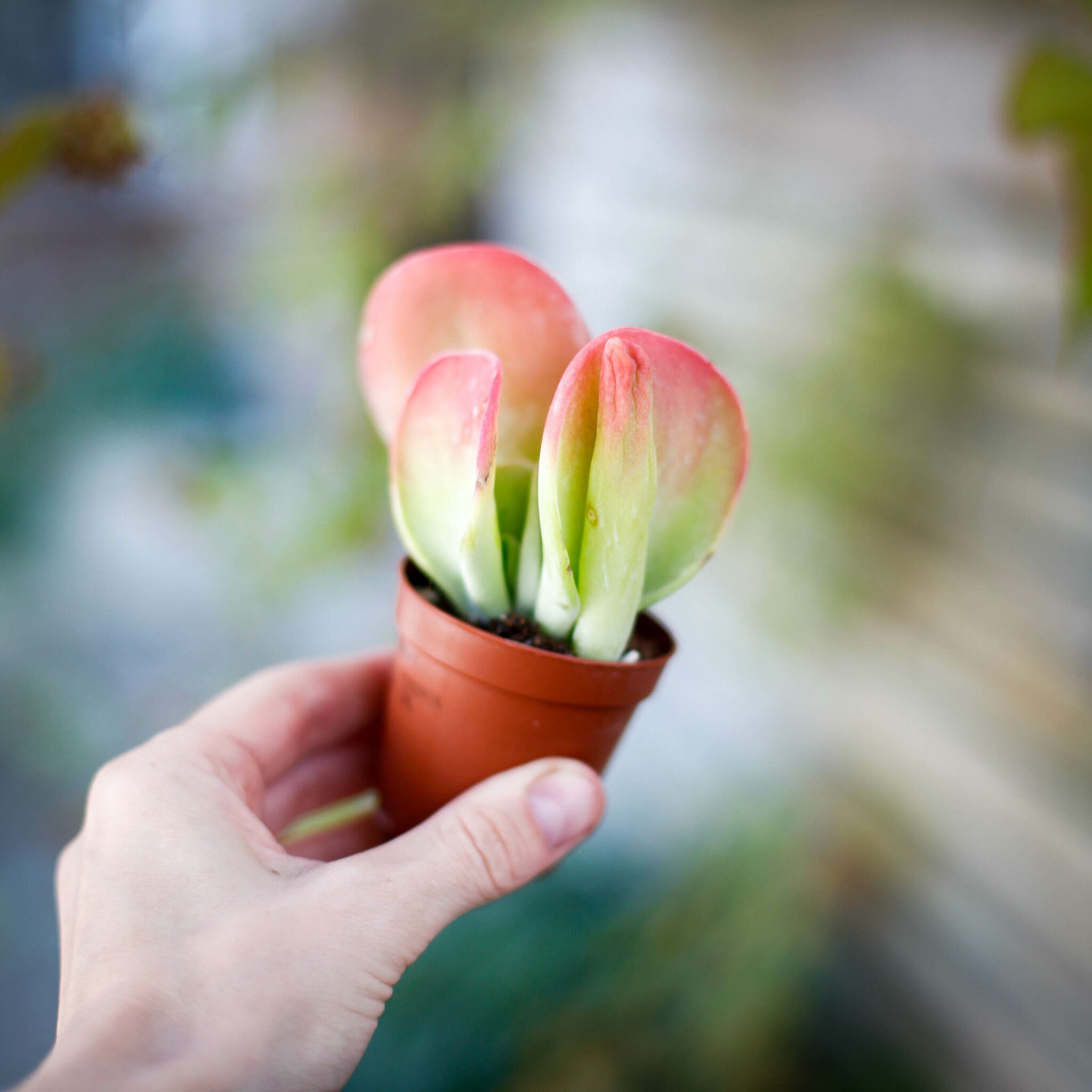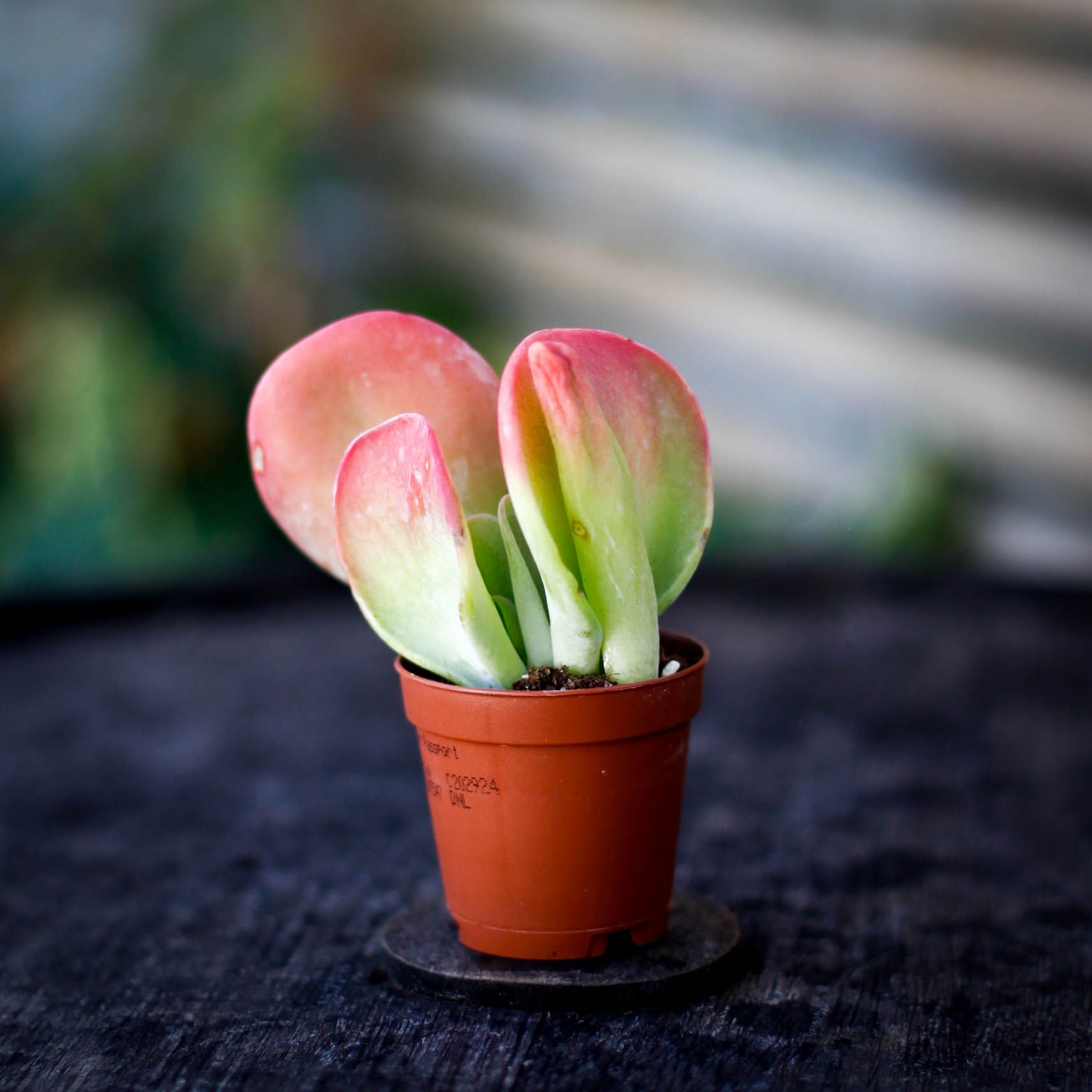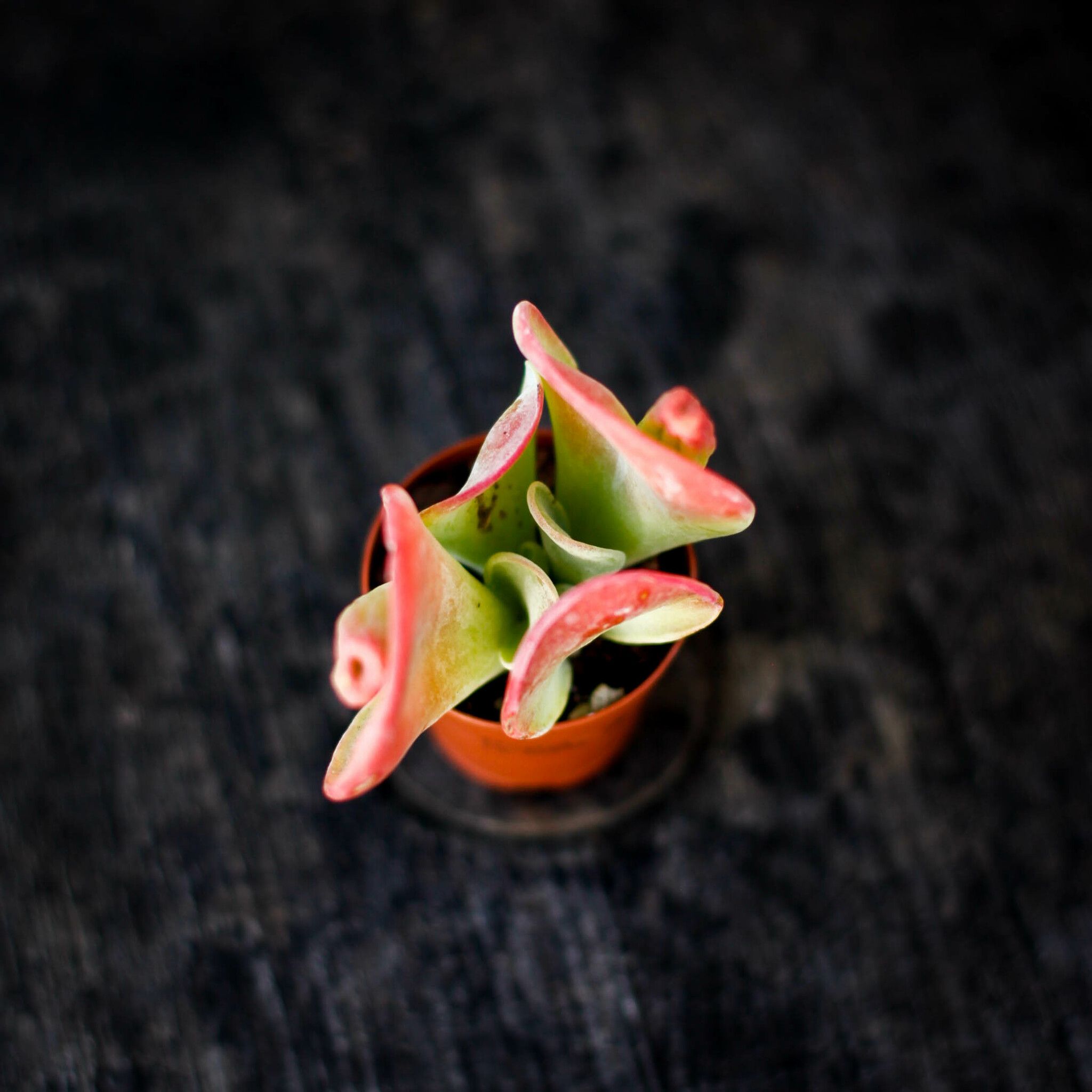 Kalanchoe luciae 'Oricula' 6 cm, med sina dramatiska färgskiftningar och skulpturala blad, förvandlar ditt hem till en tropisk oas. Perfekt för alla växtälskare