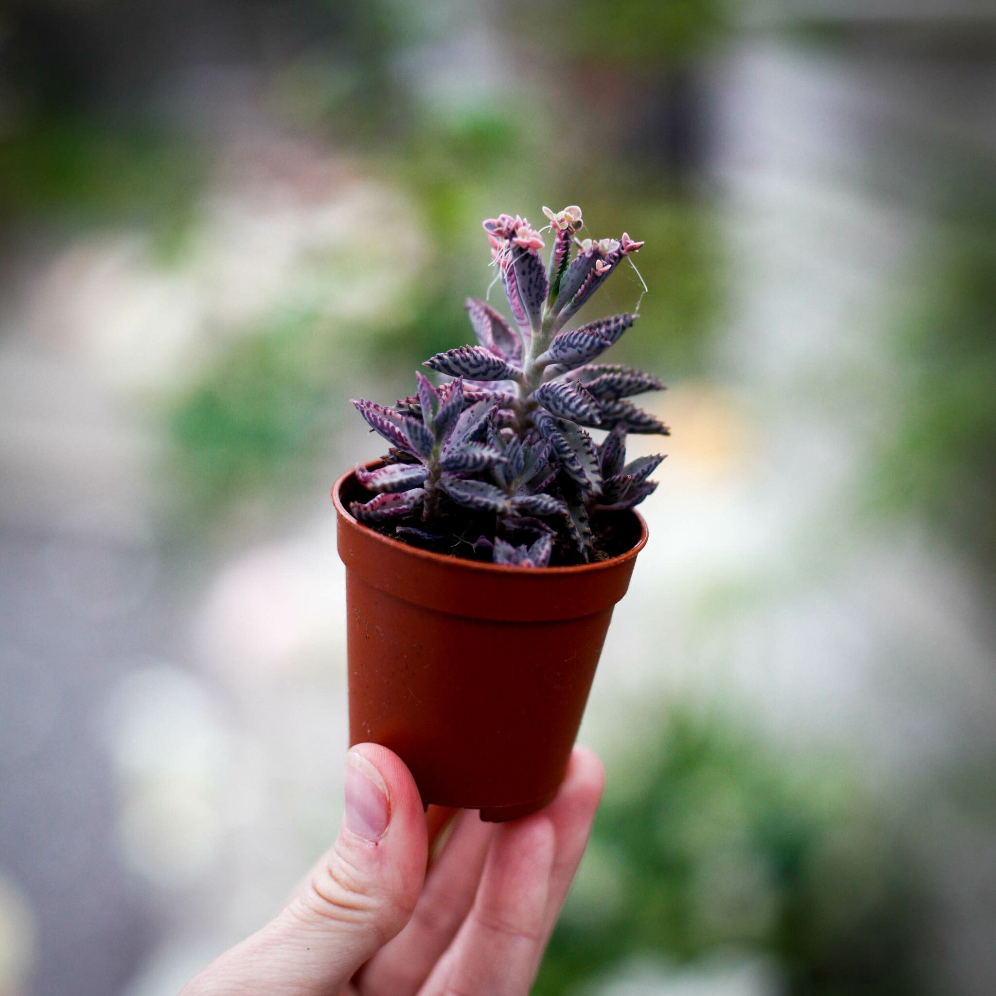 Upptäck Kalanchoe 'Pink Butterfly' 6 cm, hos Klorofyllverket.se – en färgglad suckulent med unika, rosa "fjärilsblommor".