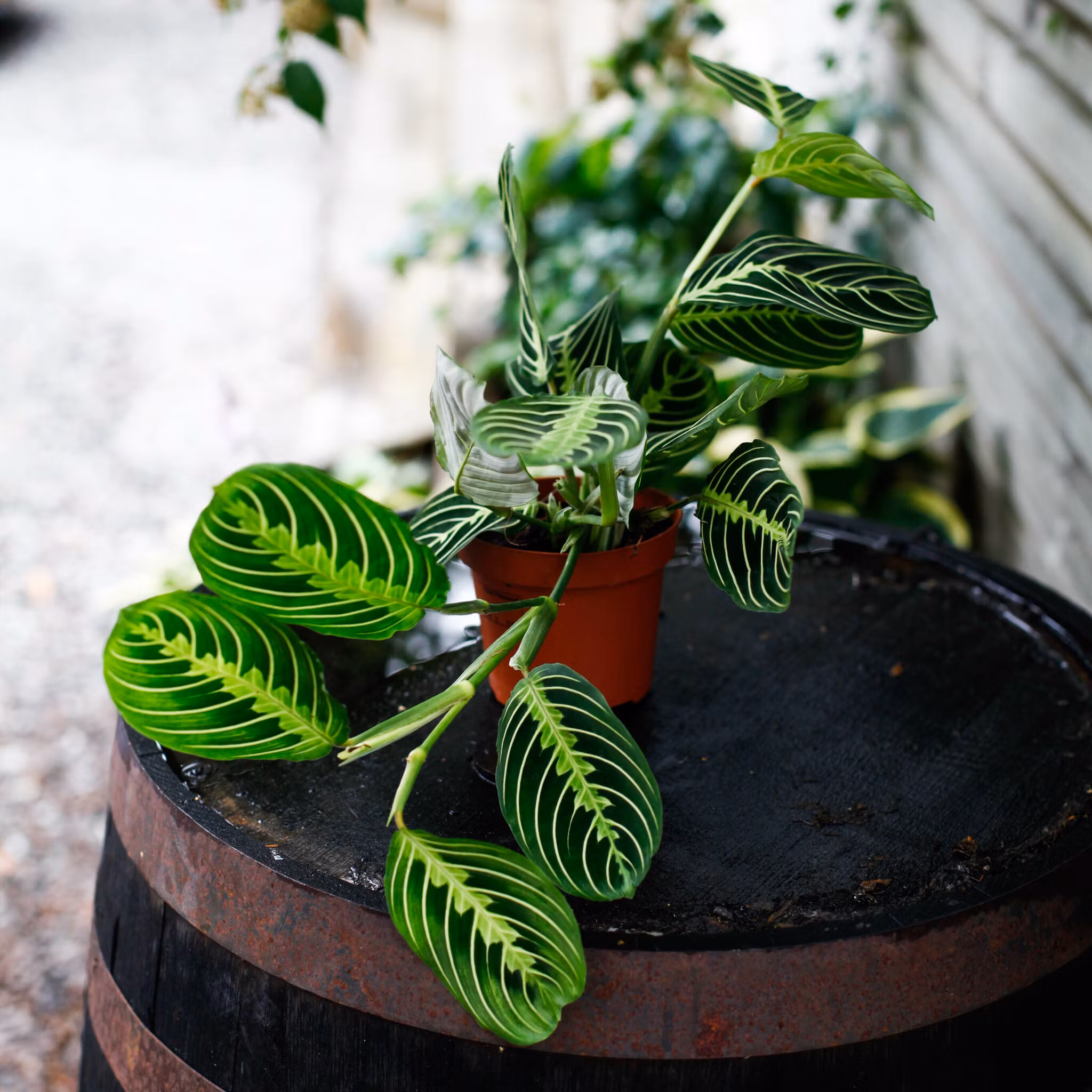 Maranta Leuconeura 'Lemon Lime' 12 cm, - Moses Stentavlor, en färgstark krukväxt med unika randiga blad. Perfekt för ampel och lättskött.