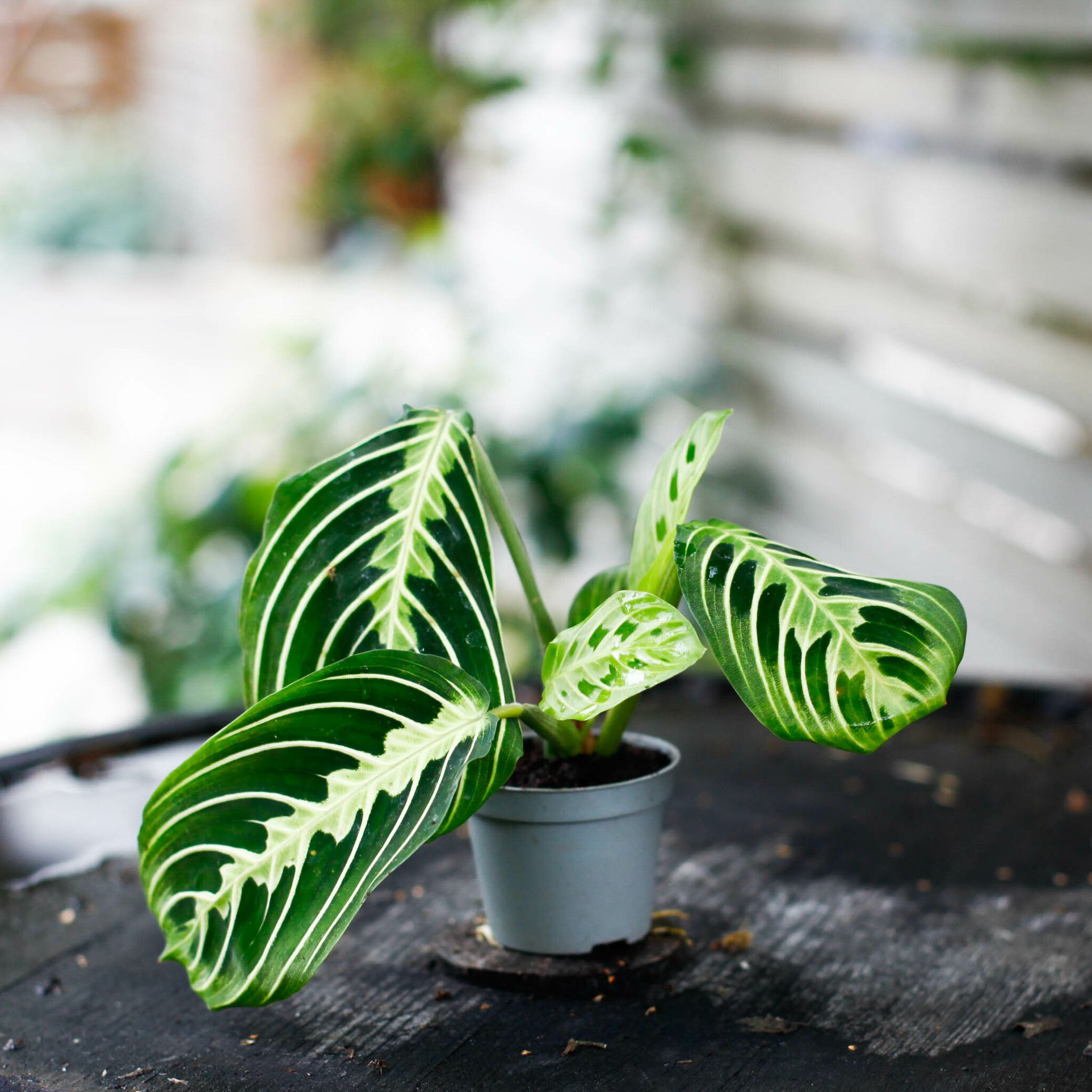Maranta Leuconeura 'Lemon Lime' 6 cm - Färgstark krukväxt med unika randiga blad. Perfekt för ampel och trivs i ljus eller halvskugga.