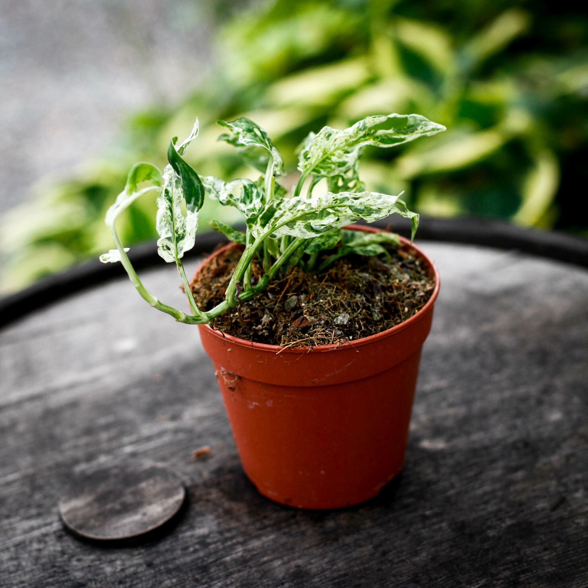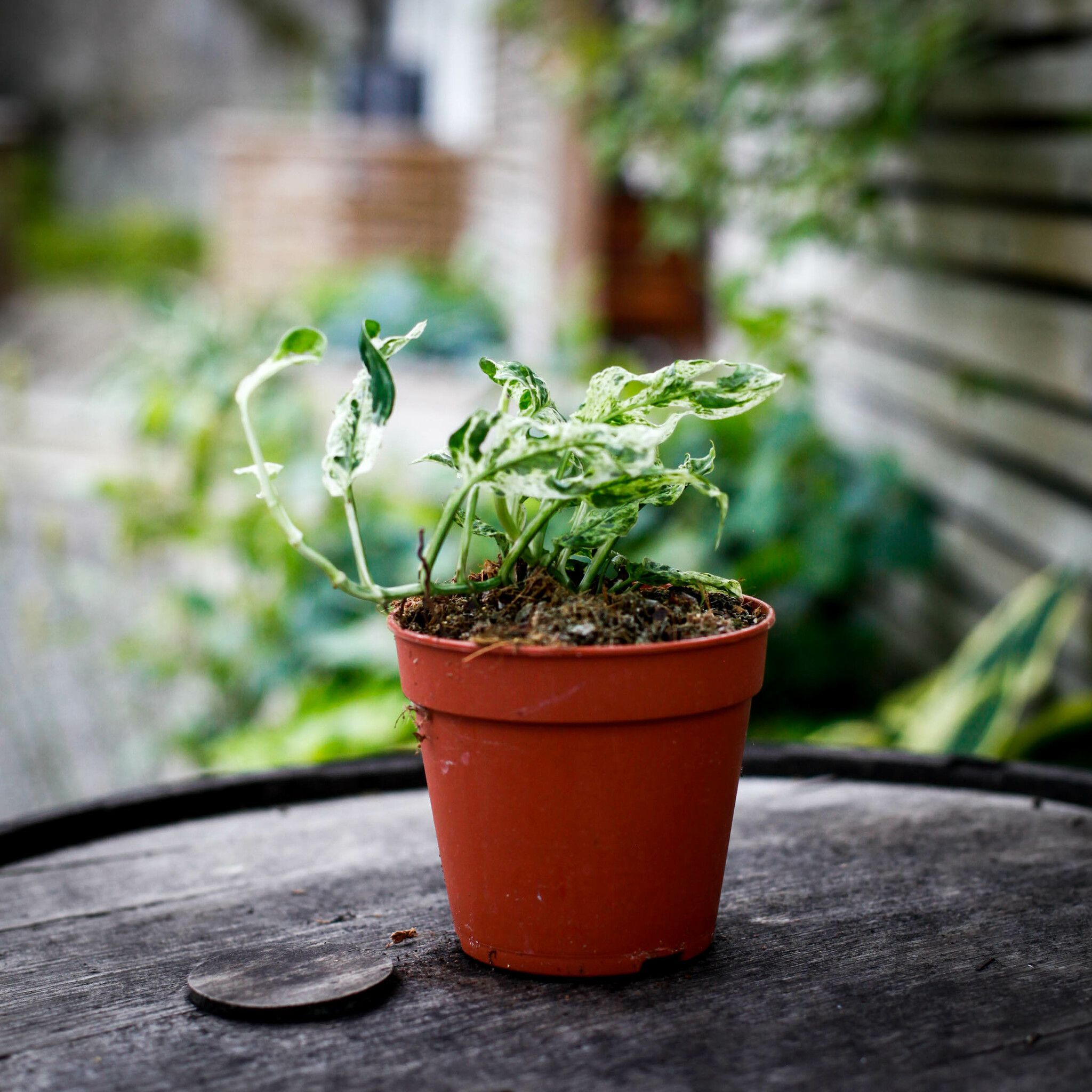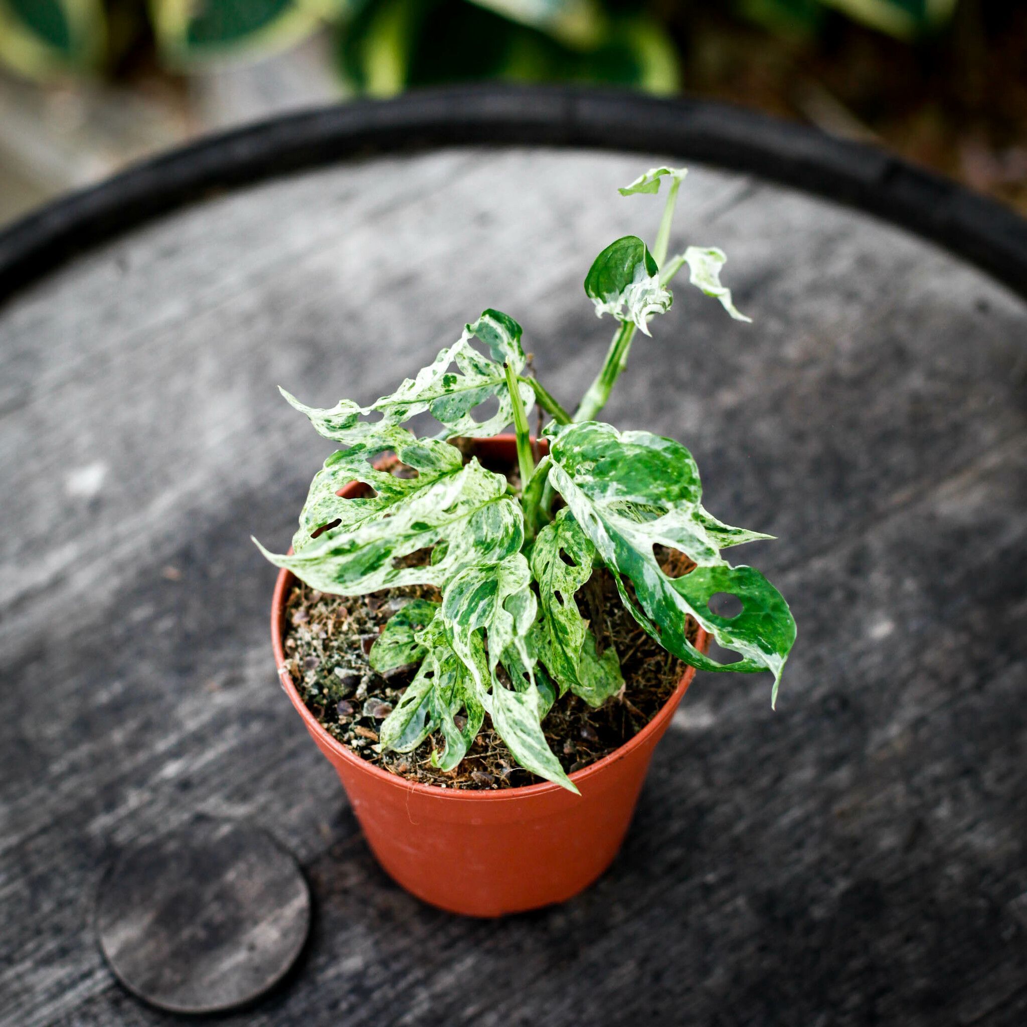 Monstera adansonii 'Frozen Freckles' är en fascinerande och exklusiv klätterväxt som med sina unika fläckar drar blickarna till sig. Den är perfekt för dig som vill ha en iögonfallande och elegant växt i din samling.