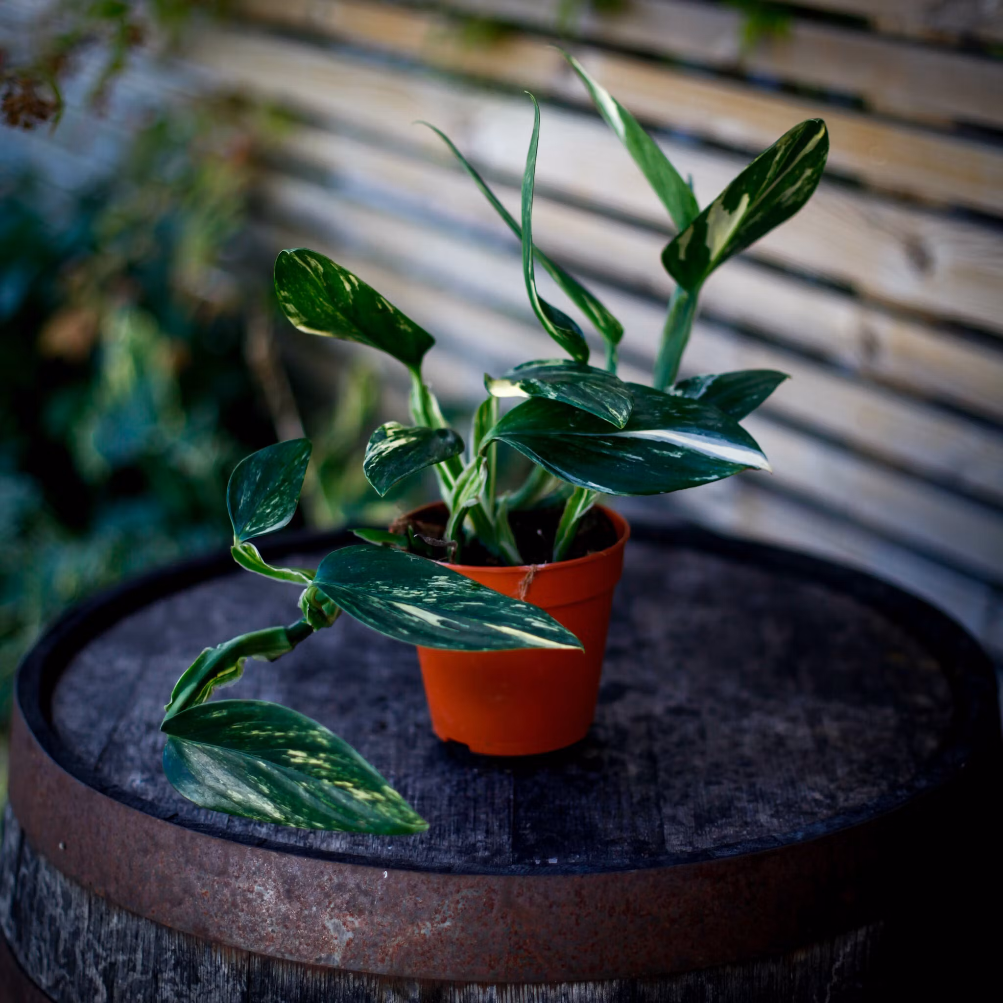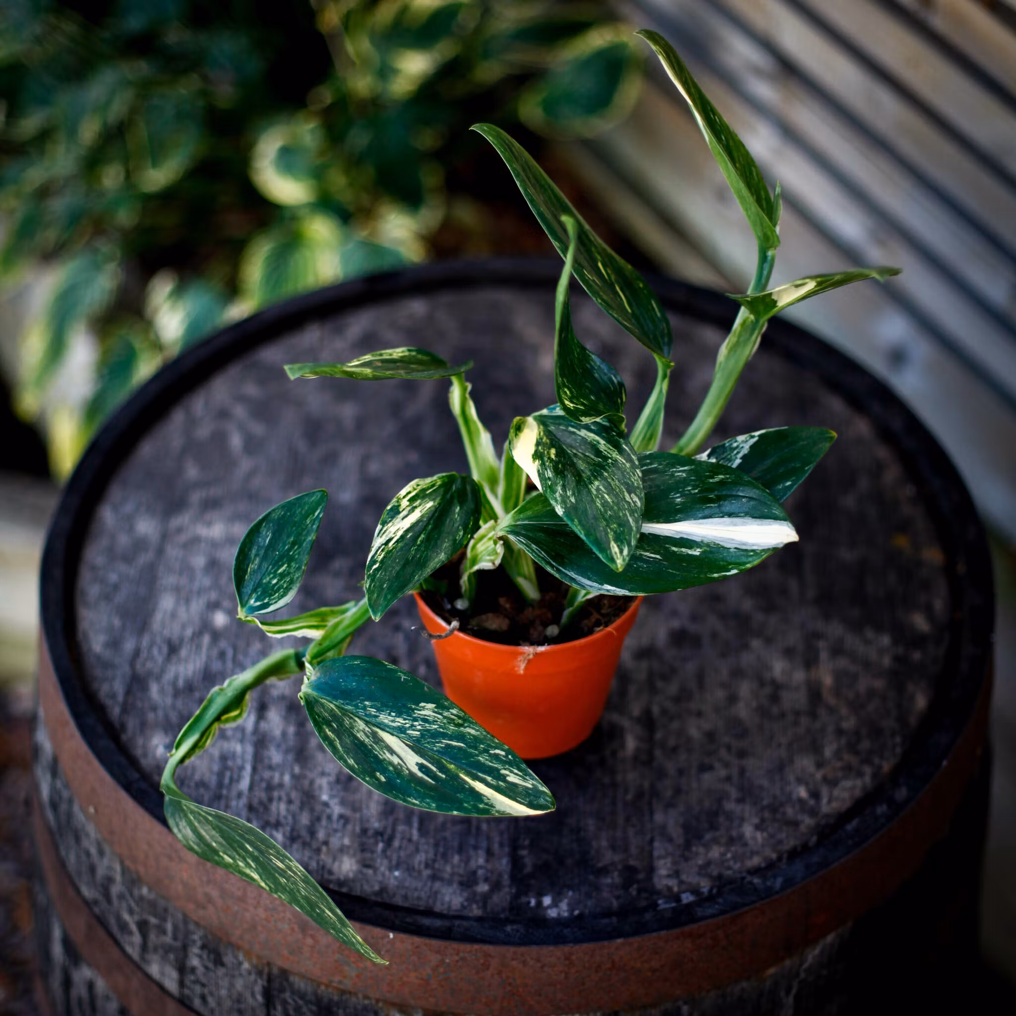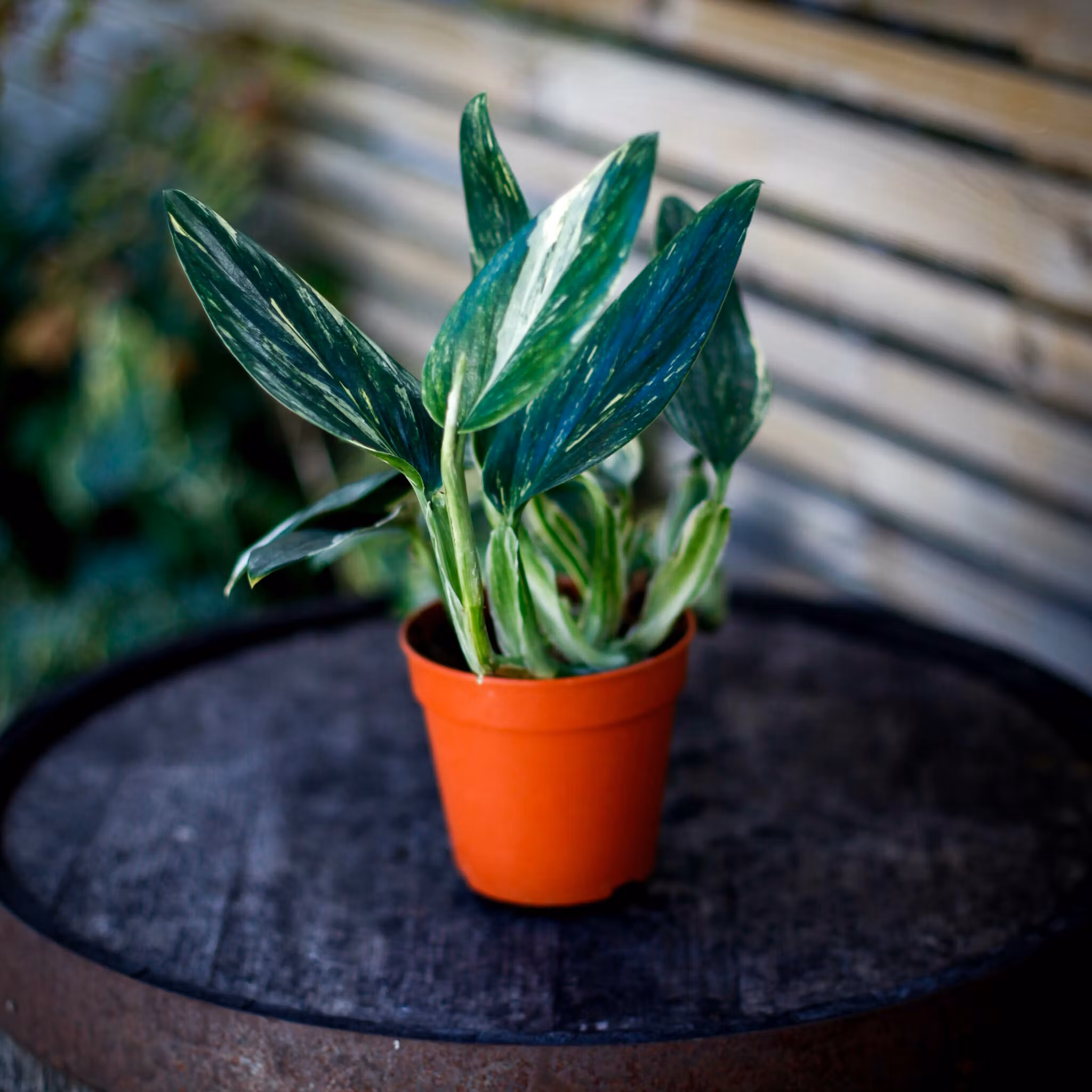 Monstera standleyana är en sällsynt och stilren klätterväxt som blir ett lyxigt inslag i varje hem. Den är uppskattad för sina långsträckta, blanka blad som kan ha oregelbundna vita eller krämfärgade inslag, vilket ger växten en modern och elegant känsla. Monstera standleyana är ett utmärkt val för den som söker en ovanlig Monstera-art med ett exklusivt utseende.