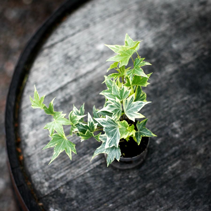 Hedera helix 'Broget' - Lättskött murgröna med vackra gröna och krämvita blad, perfekt för spaljé, ampel eller som marktäckare. Köp hos Klorofyllverket.se.