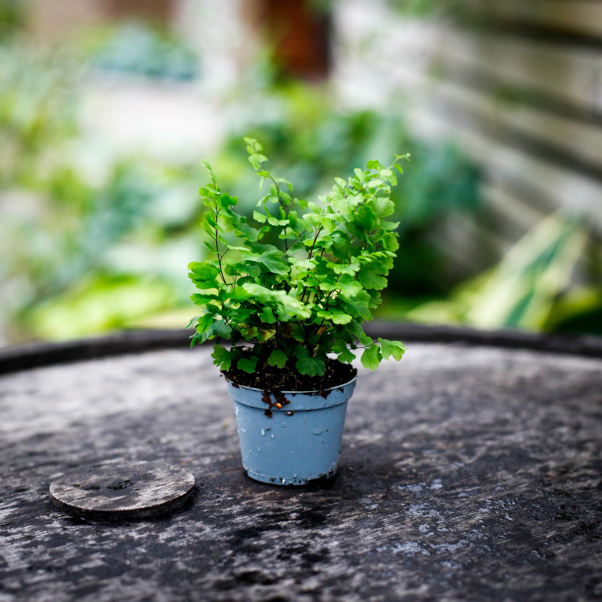 Adiantum ‘Fritz Luthi’ - En drömlik bräkenväxt med skira, solfjäderformade blad. Perfekt för halvskuggiga platser och älskar hög luftfuktighet.