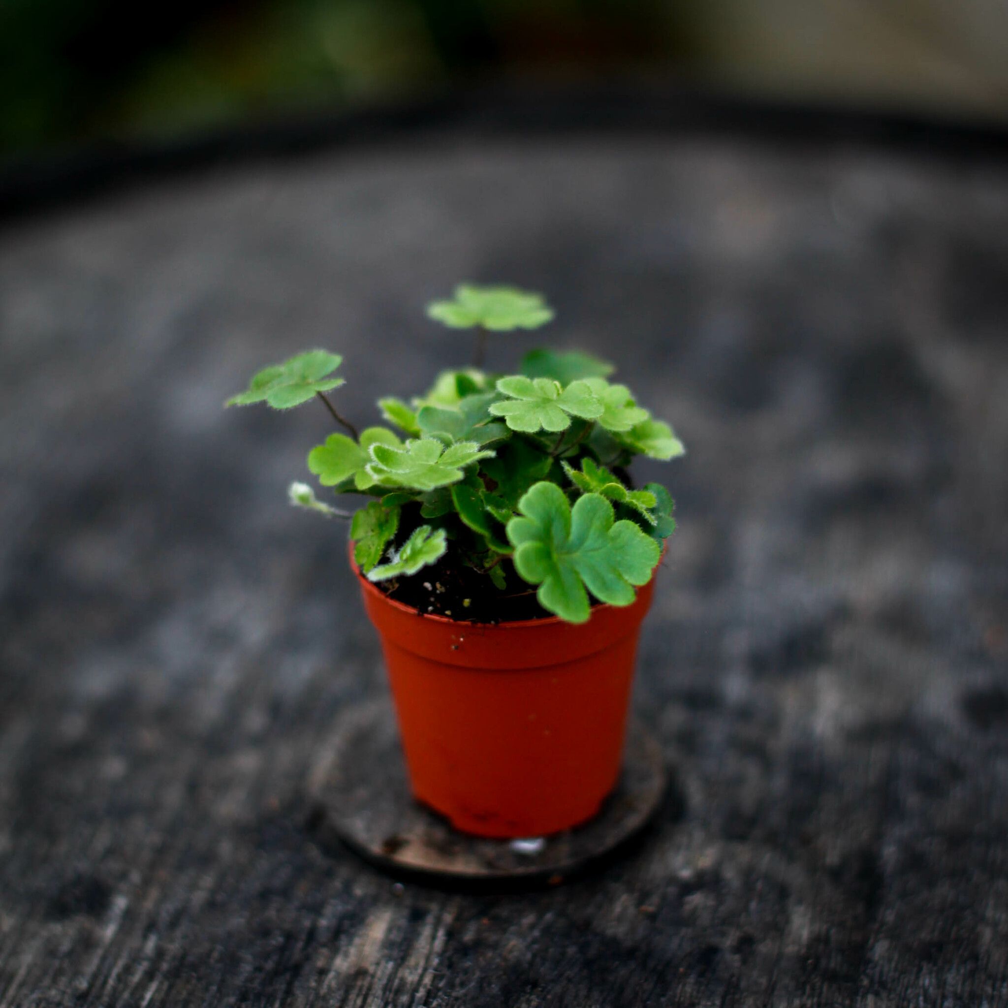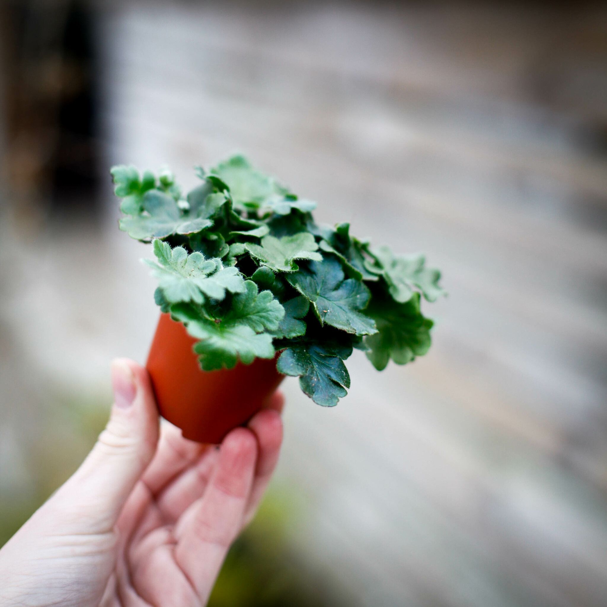 Upplev den exotiska skönheten hos Doryopteris cordata, en unik ormbunke med hjärtformade och "antler"-blad. Perfekt för skuggiga hörn! 🌿