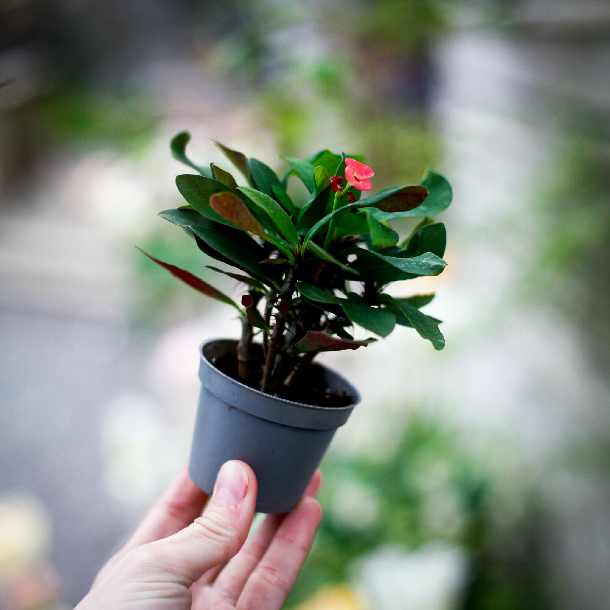 Euphorbia milii 'Eos' - Kristi Törnekrona: En exotisk och tålig växt med långlivade blommor. Perfekt för soliga fönster och enkel skötsel. Köp hos Klorofyllverk