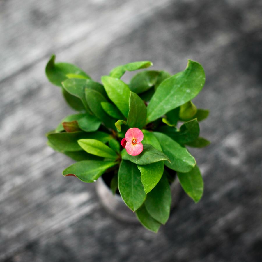 Euphorbia milii härstammar från Madagaskar och sägs ha fått sitt namn "Kristi törnekrona" eftersom man förr trodde att dess taggar påminde om dem i Bibelns berättelse. Den blommar rikligt i rätt miljö och är känd för sin tålighet och sitt unika uttryck – en växt som verkligen står ut i mängden.