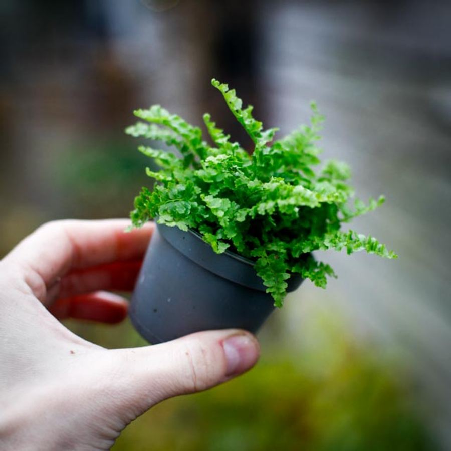 Nephrolepis exaltata 'Fluffy Ruffles' - Kompakt ormbunke med krusigt bladverk. Perfekt för halvskugga och hög luftfuktighet.