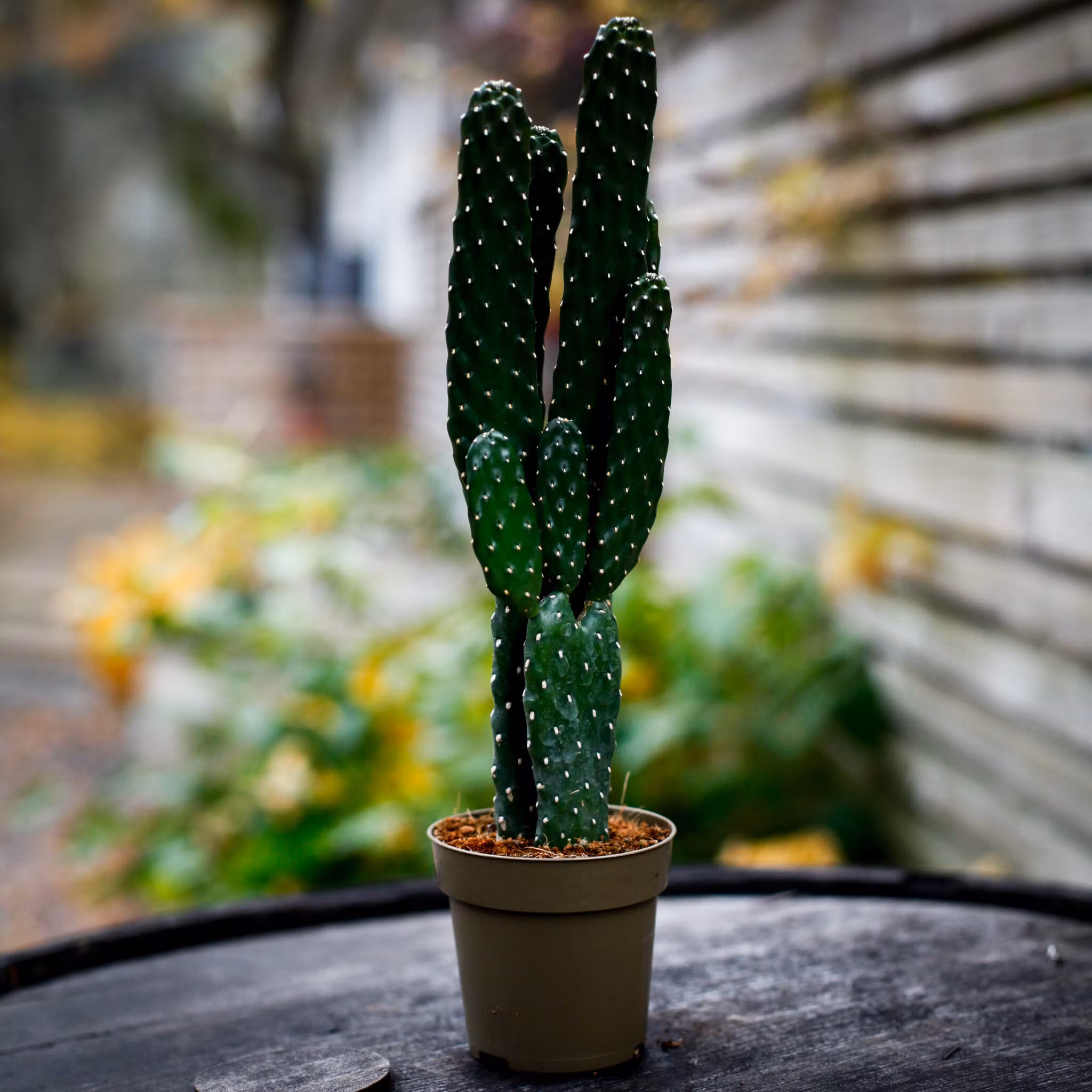 Opuntia rubescens, även kallad röd paddelkaktus, är en tålig växt ur familjen Cactaceae. Arten har sitt ursprung i Sydamerika och är känd för sina platta, ovala segment som får en rödaktig ton vid starkt ljus. Den är nära släkt med den klassiska fikonkaktusen och uppskattas för sitt kraftiga växtsätt och sin förmåga att anpassa sig till torra miljöer.