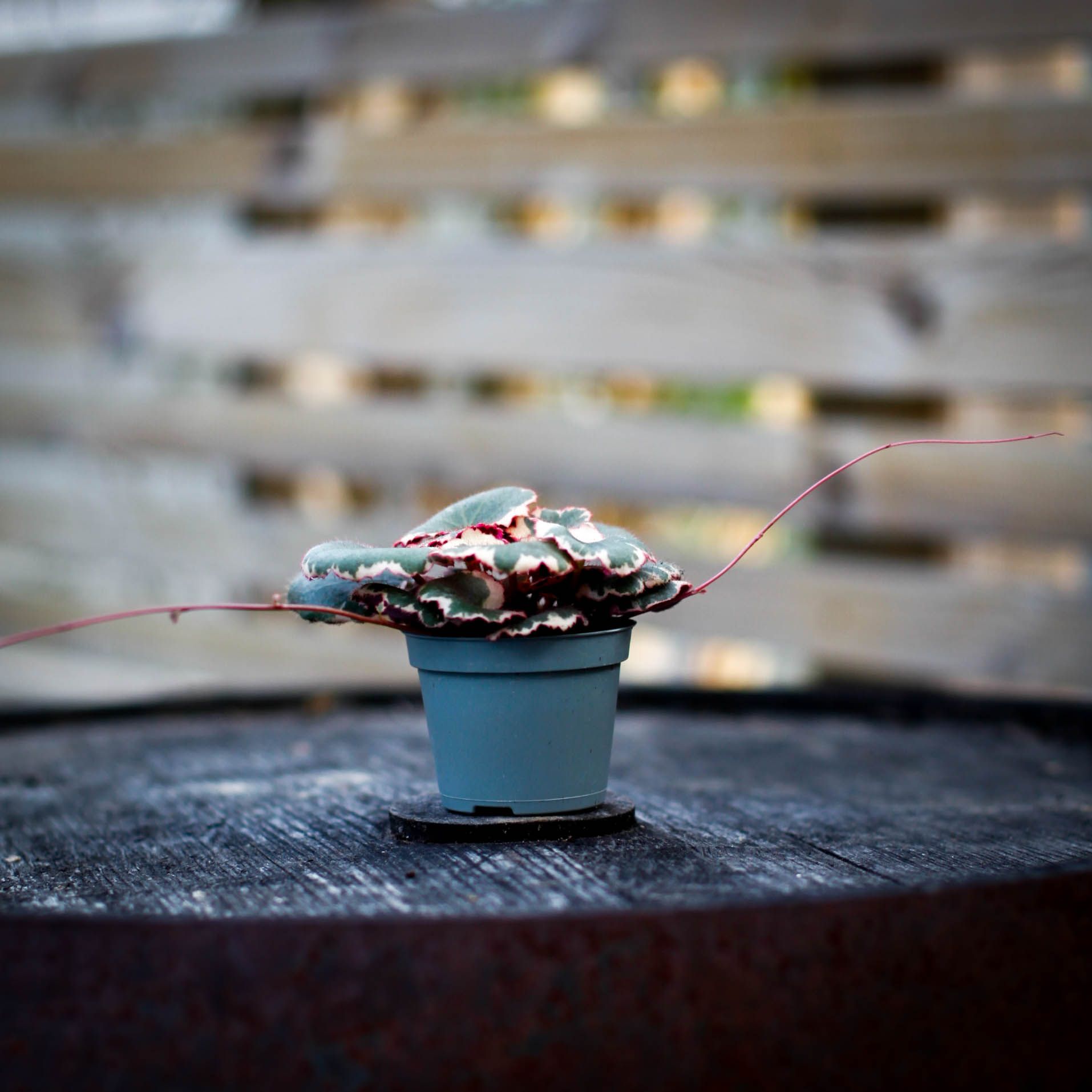 Upptäck Saxifraga 'Tricolor' 6 cm, - en alpin skönhet med rosaröda trådar och purpurfärgade blad. Perfekt för svalare miljöer!