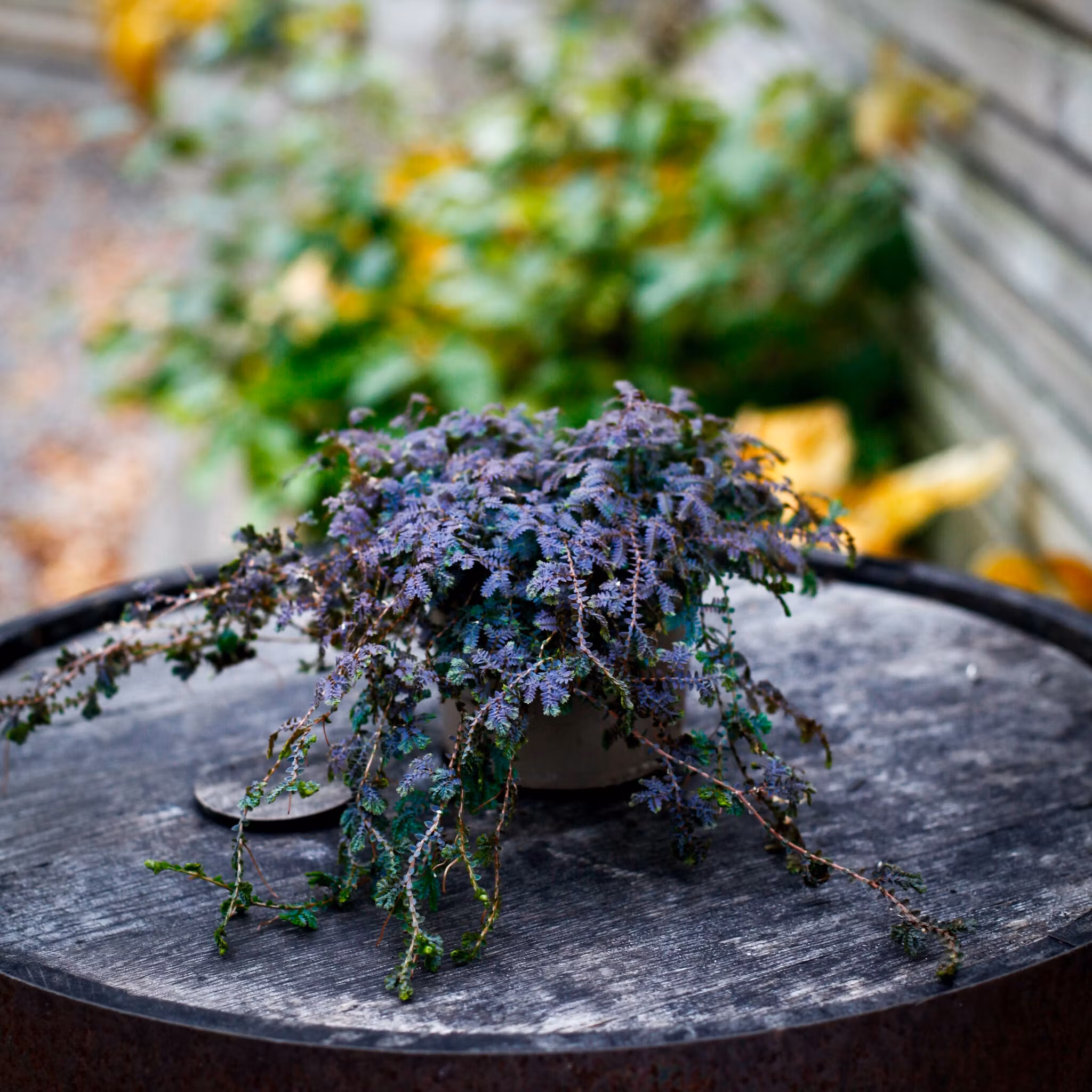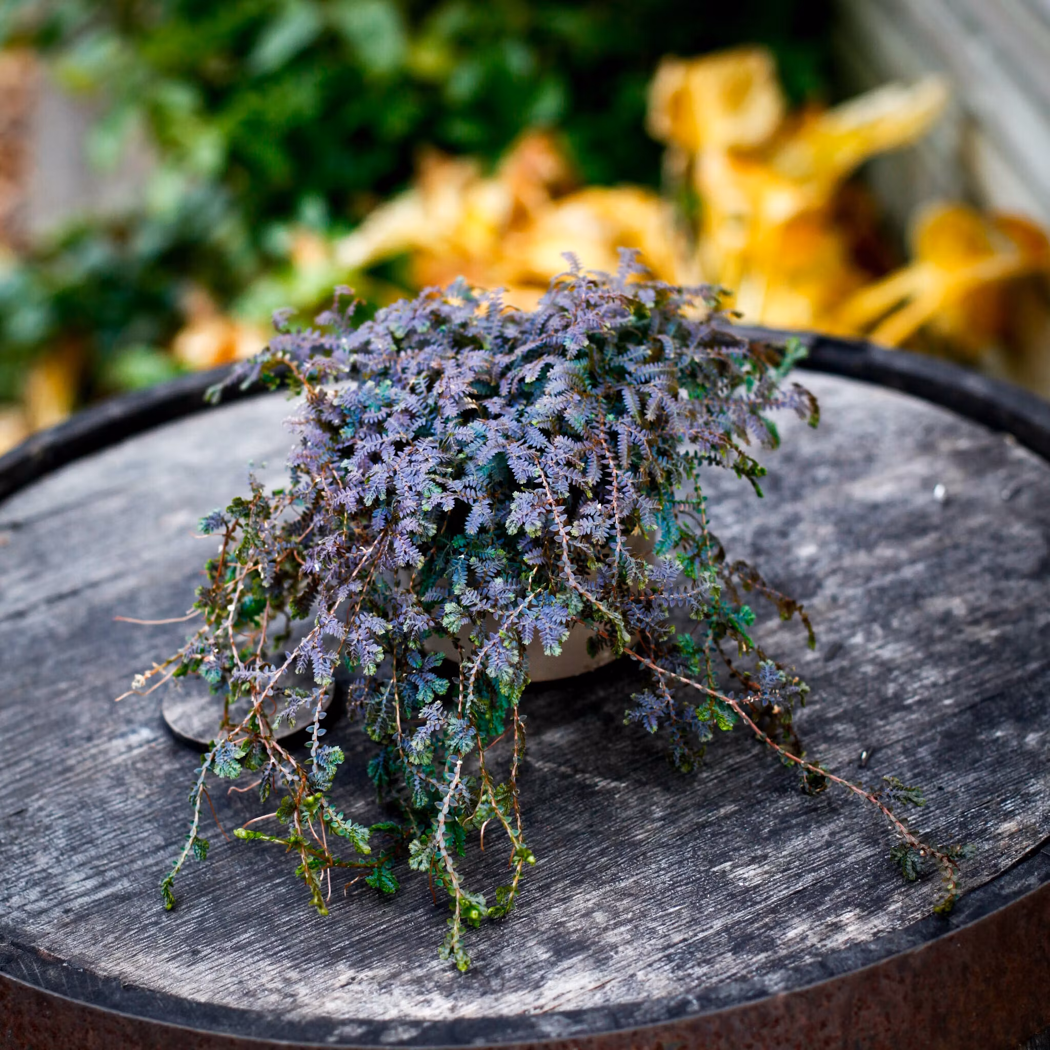 Selaginella uncinata ’Patina’, även kallad regnbågsspikmossa, är en lågväxande sporväxt ur familjen Selaginellaceae. Arten har sitt ursprung i Kina och är känd för sitt metalliskt skimrande bladverk. Sorten ’Patina’ utmärker sig genom sina blågröna till kopparfärgade nyanser som skiftar beroende på ljus – en fascinerande växt som tillför ett nästan magiskt inslag i växtsamlingen.