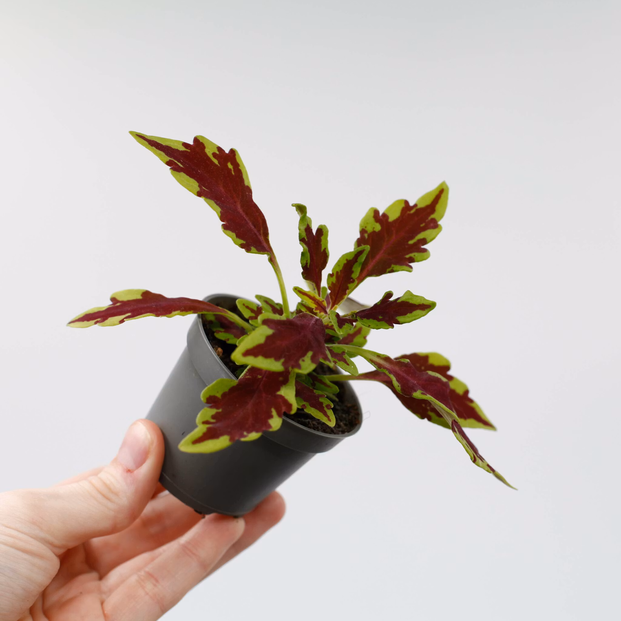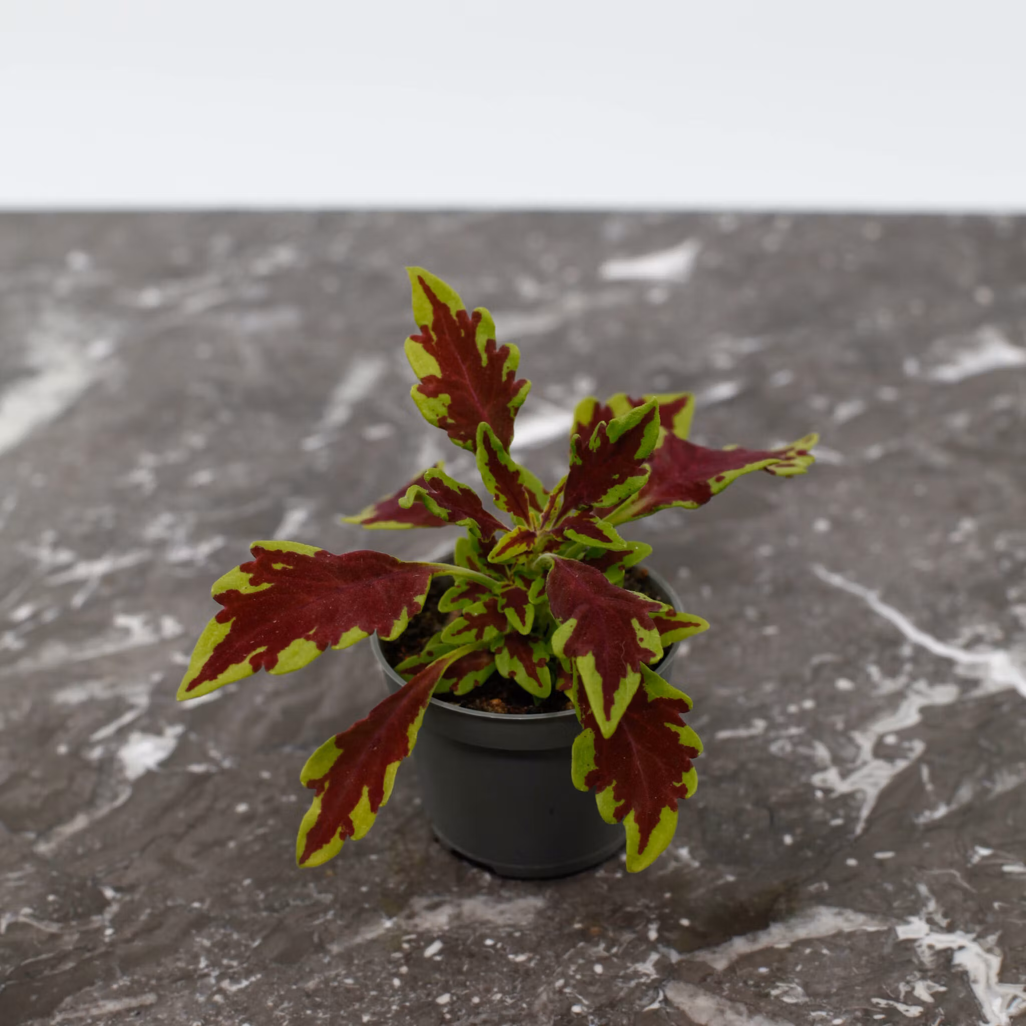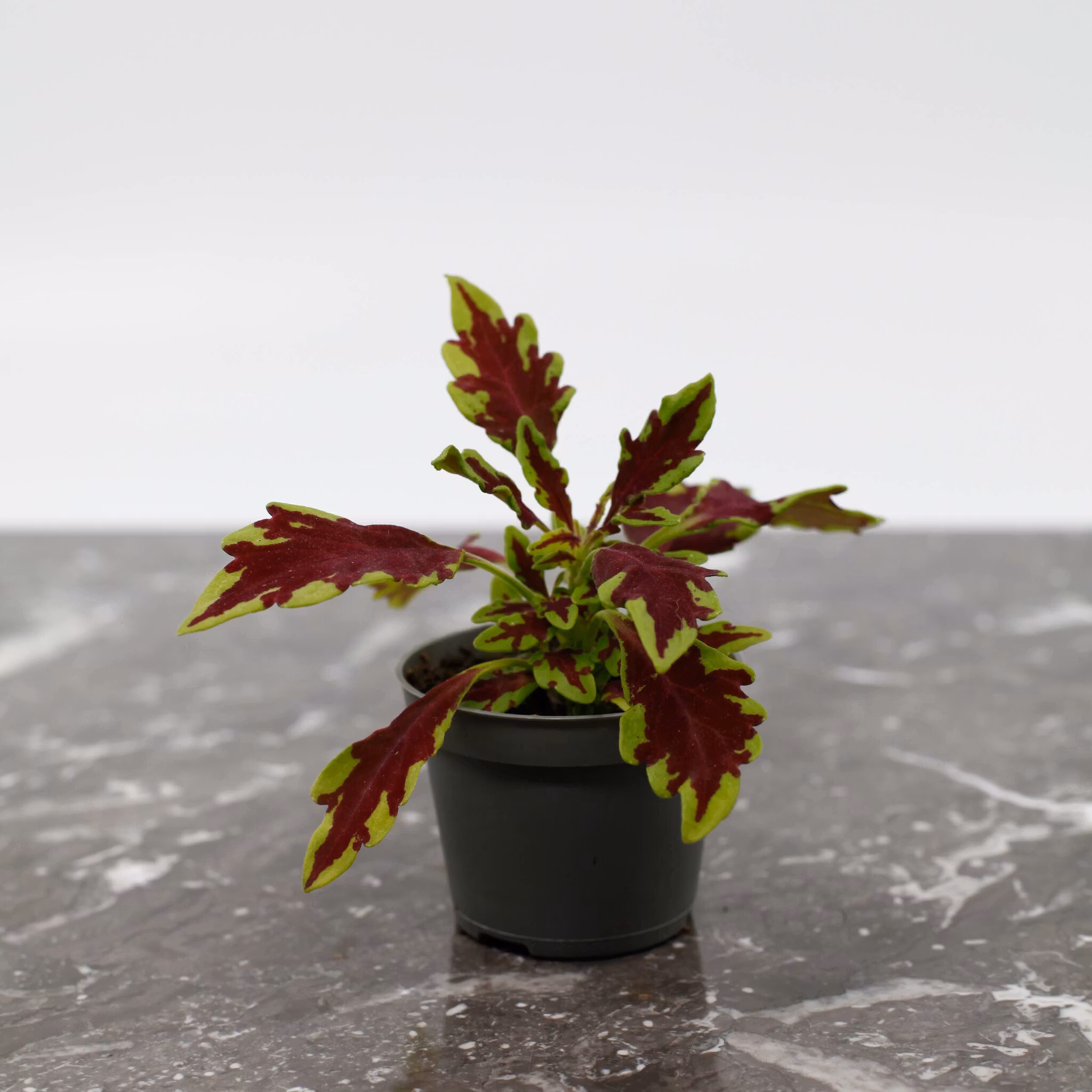 Palettblad 'Le Freak' är en spektakulär växt som sticker ut med sitt intensiva färgspel. Bladen har en levande kombination av rosa, grönt och gult som bildar ett abstrakt, nästan konstnärligt mönster. Med sitt unika utseende och buskiga växtsätt är den ett perfekt val för den som vill lägga till en färgstark detalj i hemmet eller trädgården. Så om du letar efter en växt som inte bara är vacker att se på utan också ger en fantastisk färgklick till ditt gröna utrymme, är Coleus 'Le Freak' ett utmärkt val! Ge den en plats i din trädgård eller kruka och låt den sprida glädje och färg till din vardag.