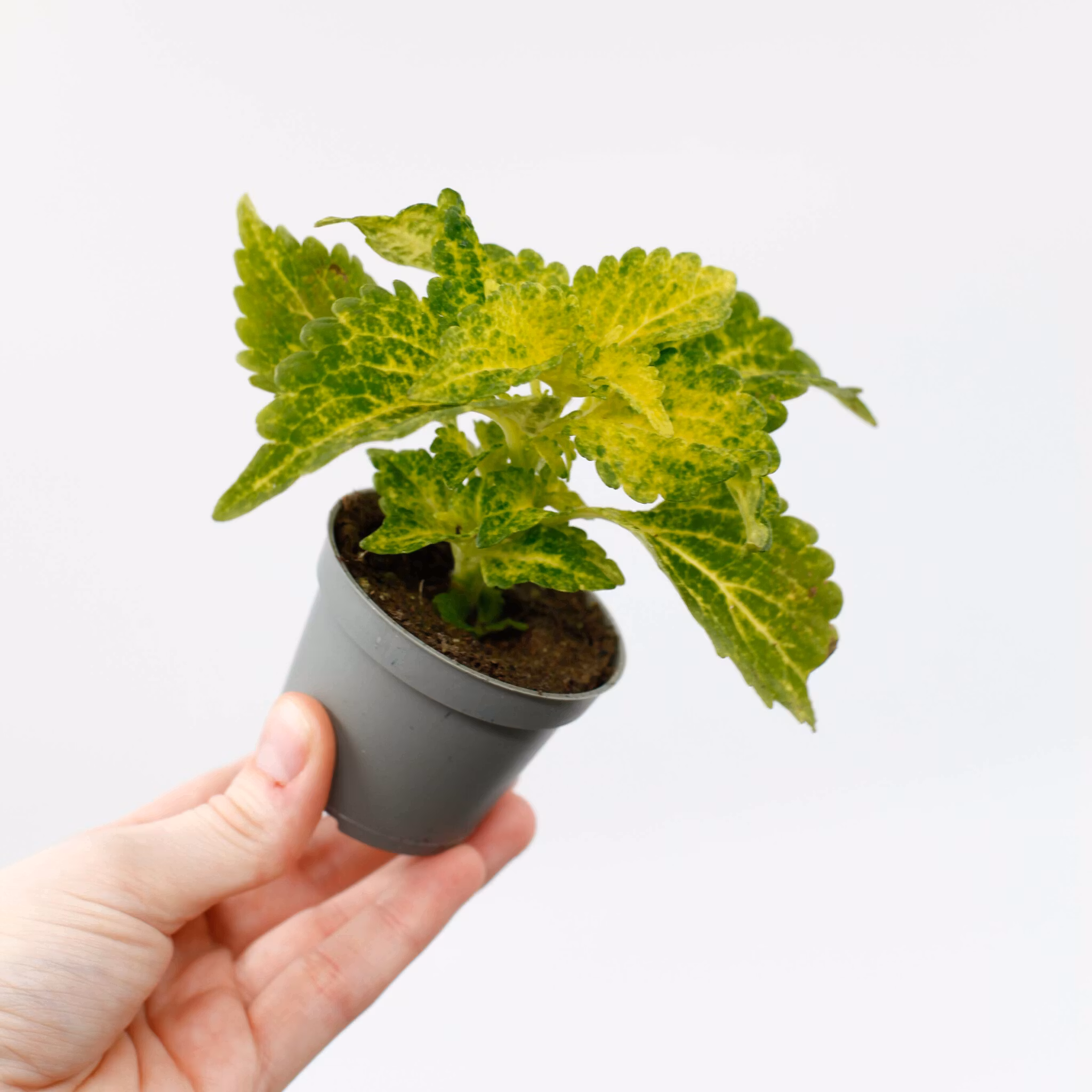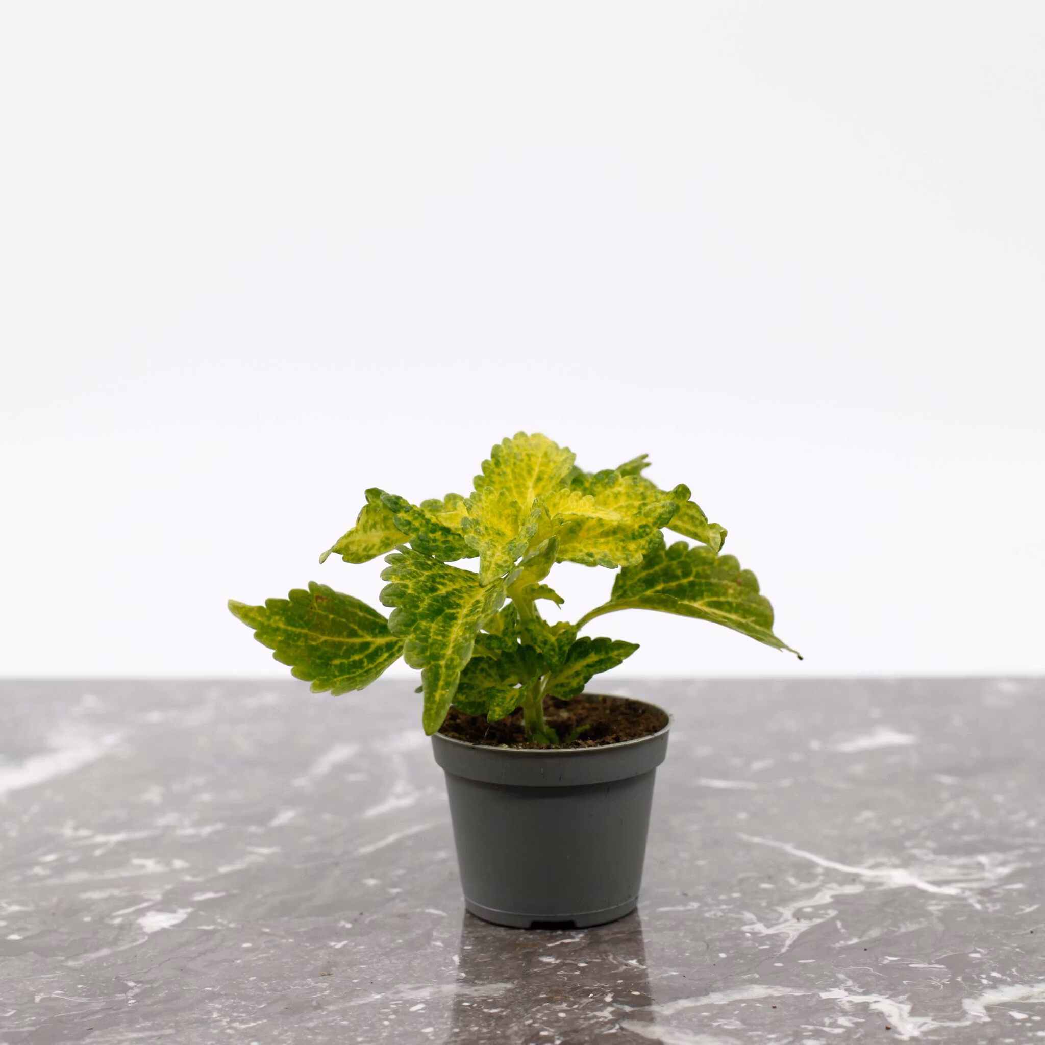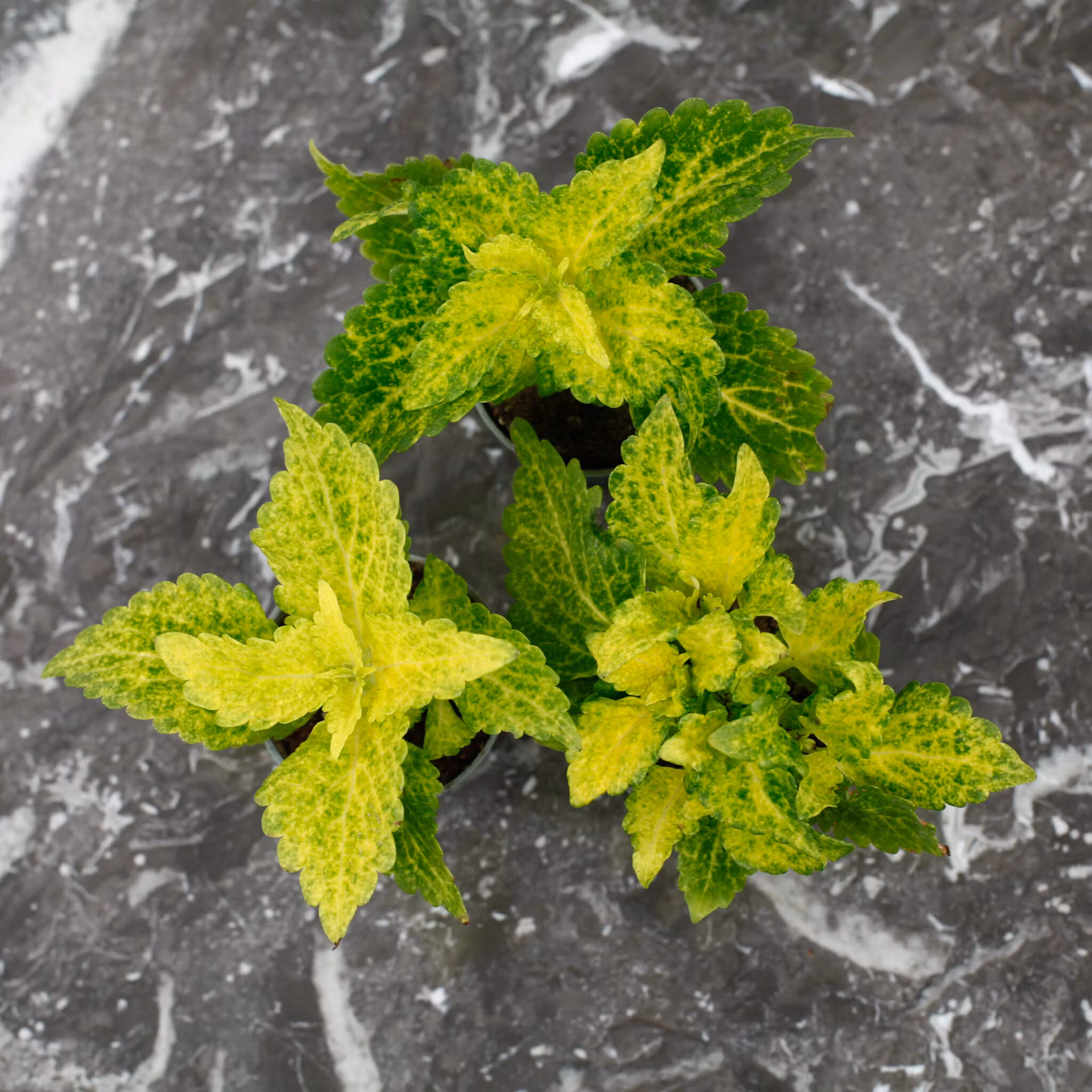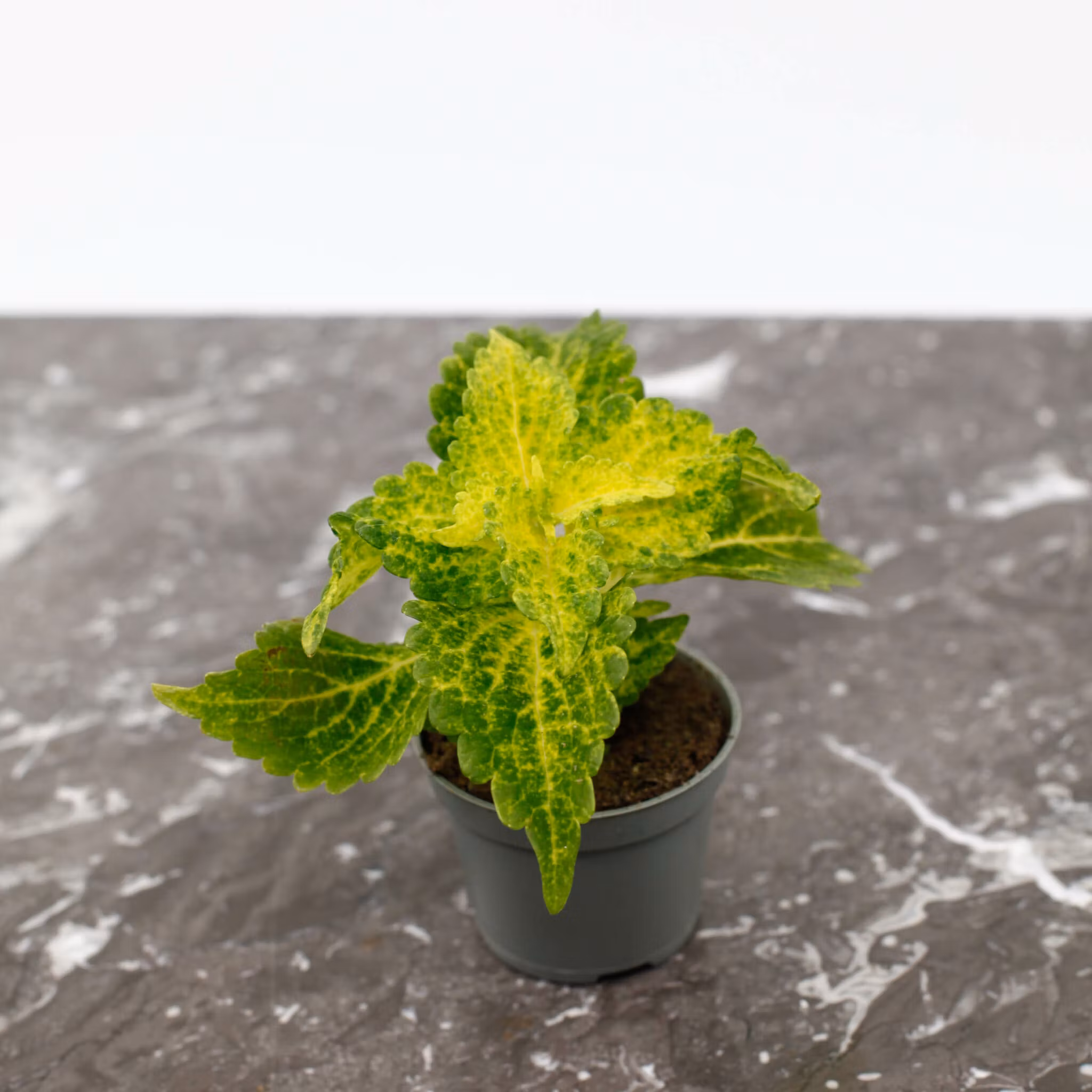 Palettblad 'River Walk' är en elegant växt med ett unikt bladverk som kombinerar djupa, gröna nyanser med livliga inslag av purpur och rosa. Bladen har en mjukt vågig kant som förstärker det dynamiska utseendet, och dess harmoniska färgspel gör den till en iögonfallande dekoration i hemmet eller på uteplatsen. Det ljusa limefärgade bladverket hos Coleus 'River Walk' skapar en fräsch och livlig känsla, medan de spräckliga bladen tillför en unik och spännande dimension till dess skönhet. Denna kombination av färger och mönster gör att växten sticker ut och blir en iögonfallande prydnad.