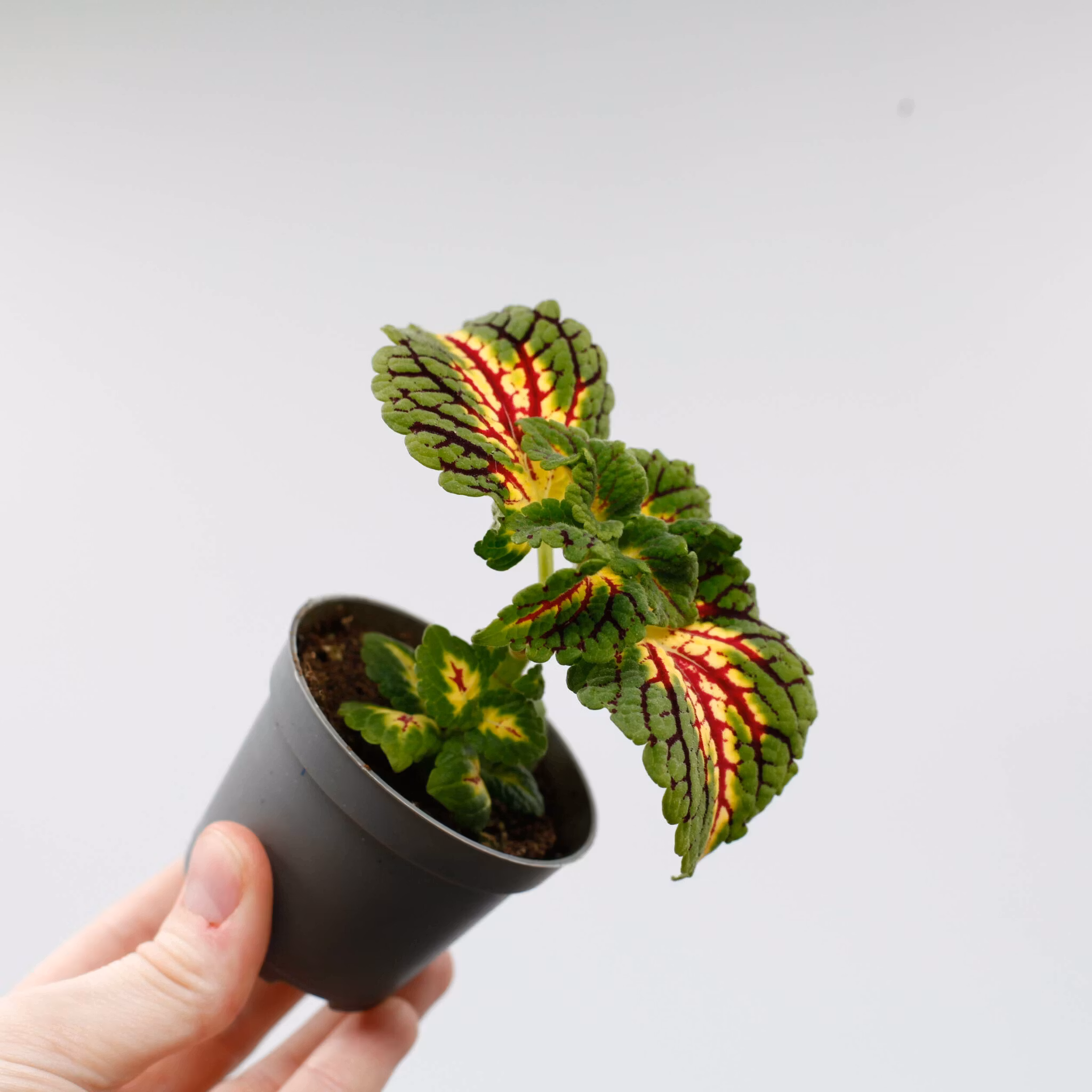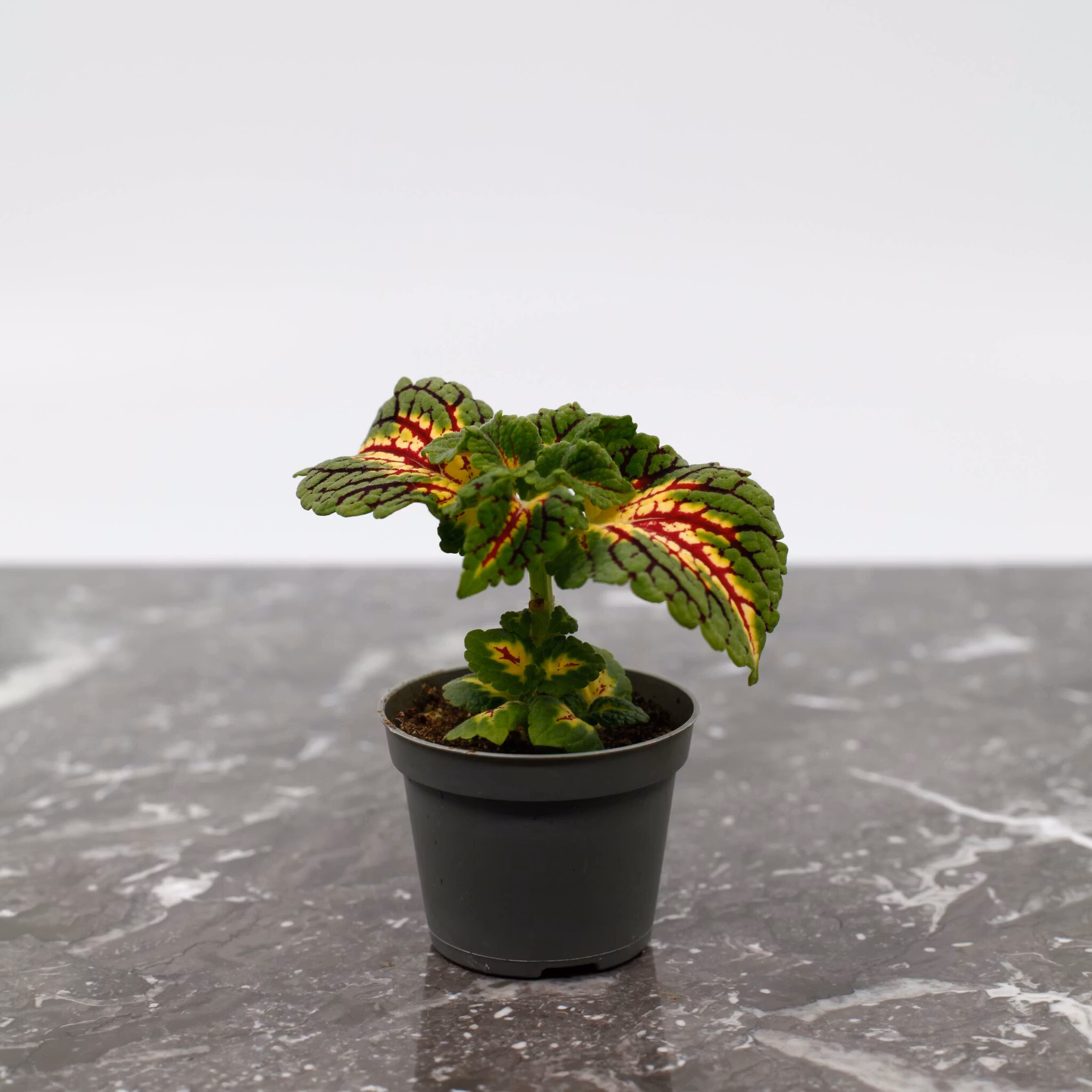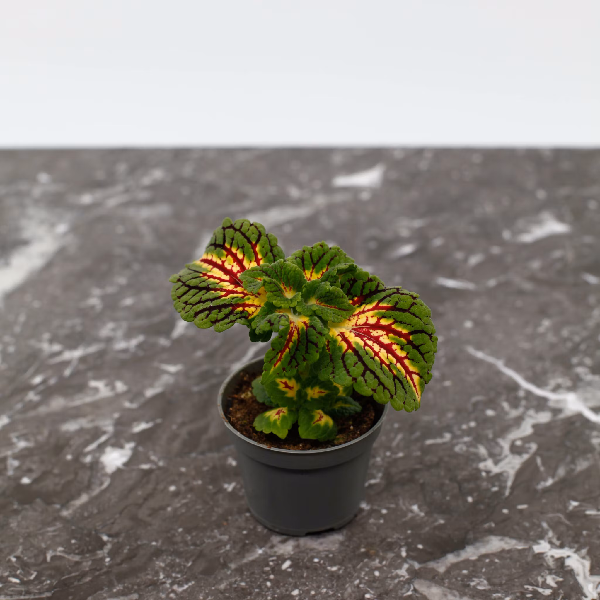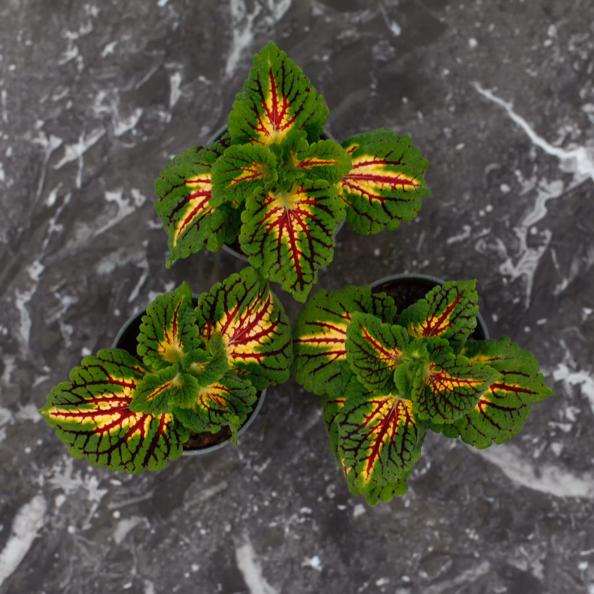 Det är just detta unika och iögonfallande mönster som gör Coleus 'Spacecake' till en sådan fantastisk växt. Dess levande färger och roliga design skapar en livlig och energifylld atmosfär där den placeras, vilket gör den till ett perfekt val för att ge en touch av glädje och lekfullhet.
