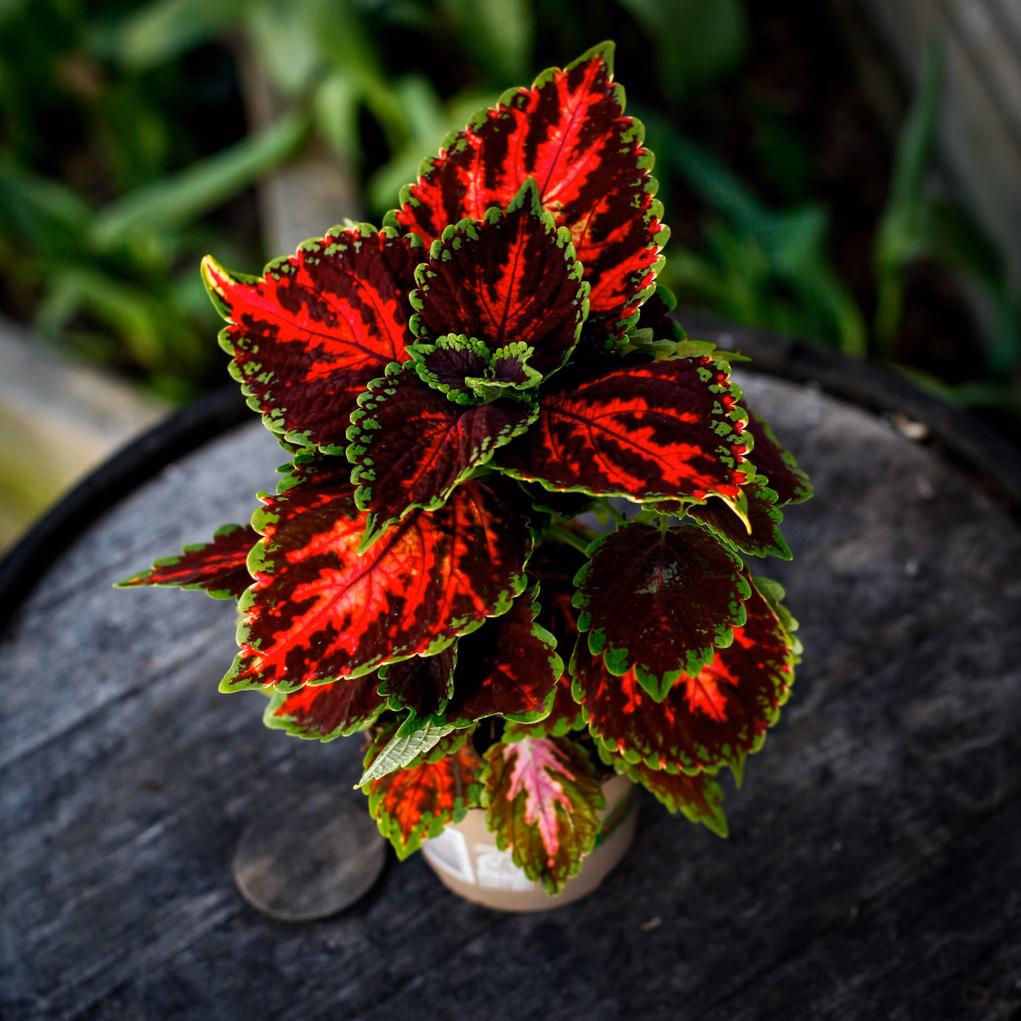 Coleus 'Flamboyant Flamingo' är den perfekta växten för dig som älskar färg, form och uttryck. Oavsett om du har en modern inredning eller en mer bohemisk stil, blir den här sortens coleus ett levande konstverk som drar blickarna till sig – och sprider glädje året runt.