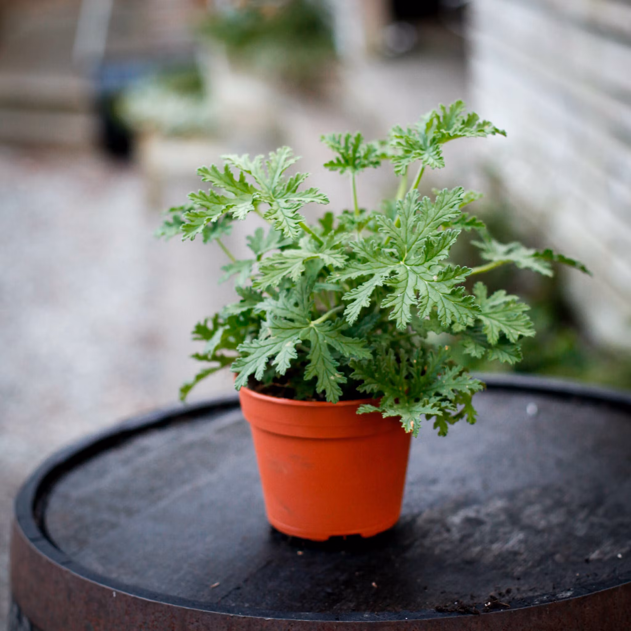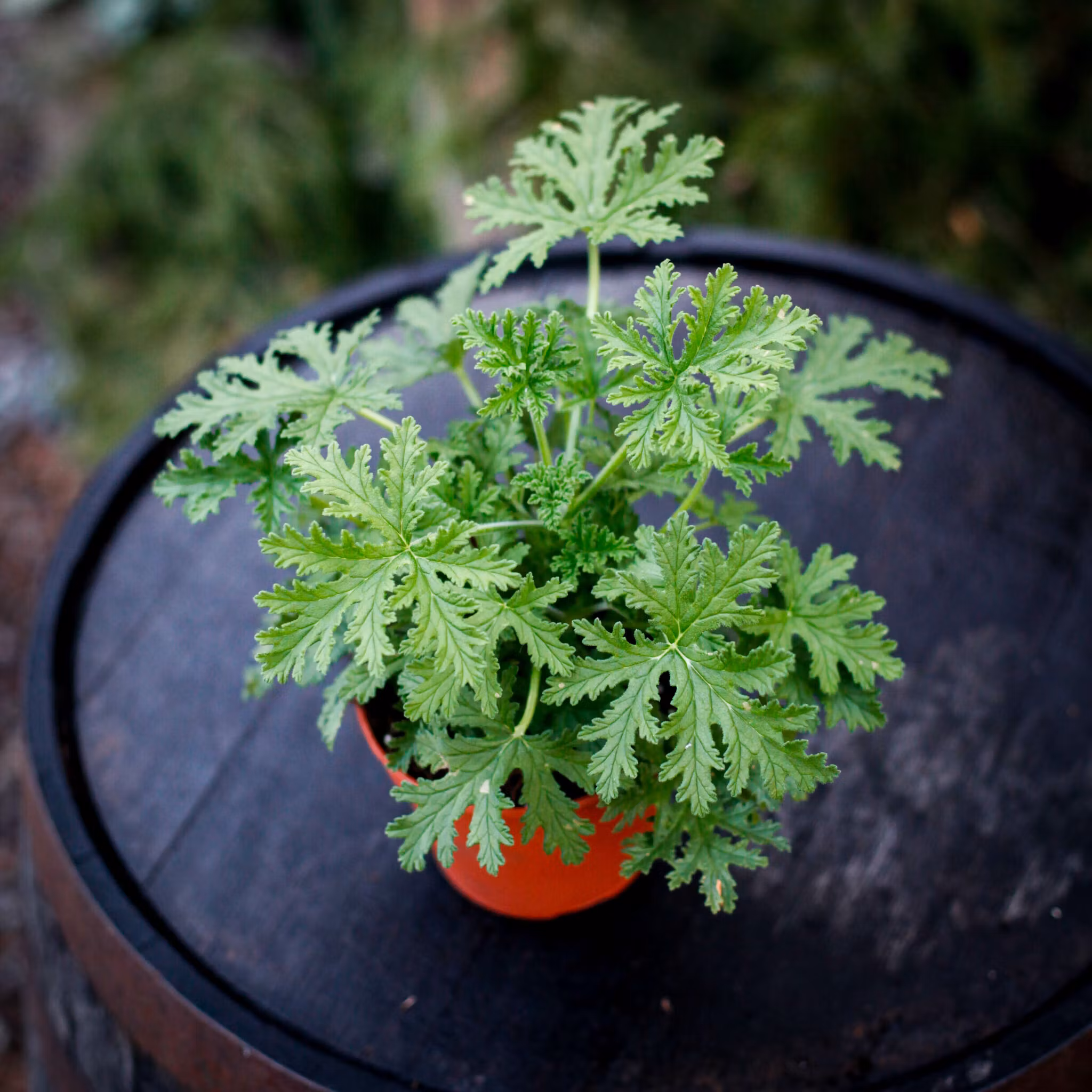 Upptäck Pelargonium graveolens 'Dr. Westerlund', en älskad doftpelargon med citrusdoft, perfekt för att förbättra inomhusluften och skapa trivsel.