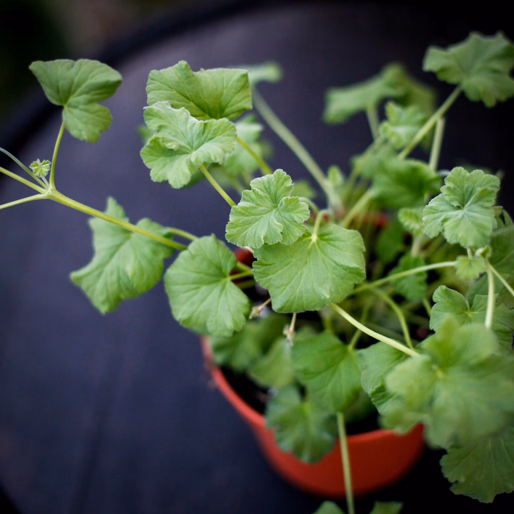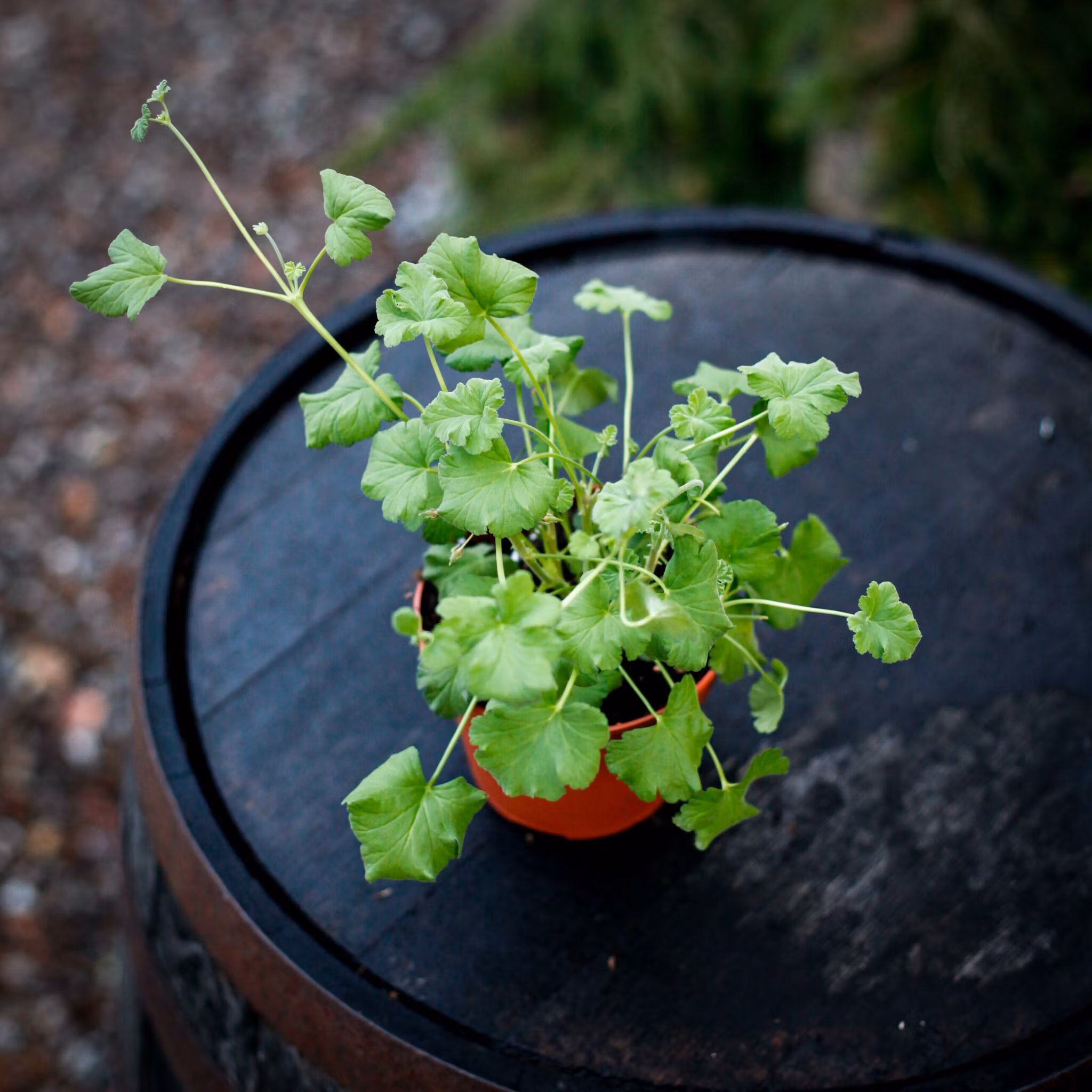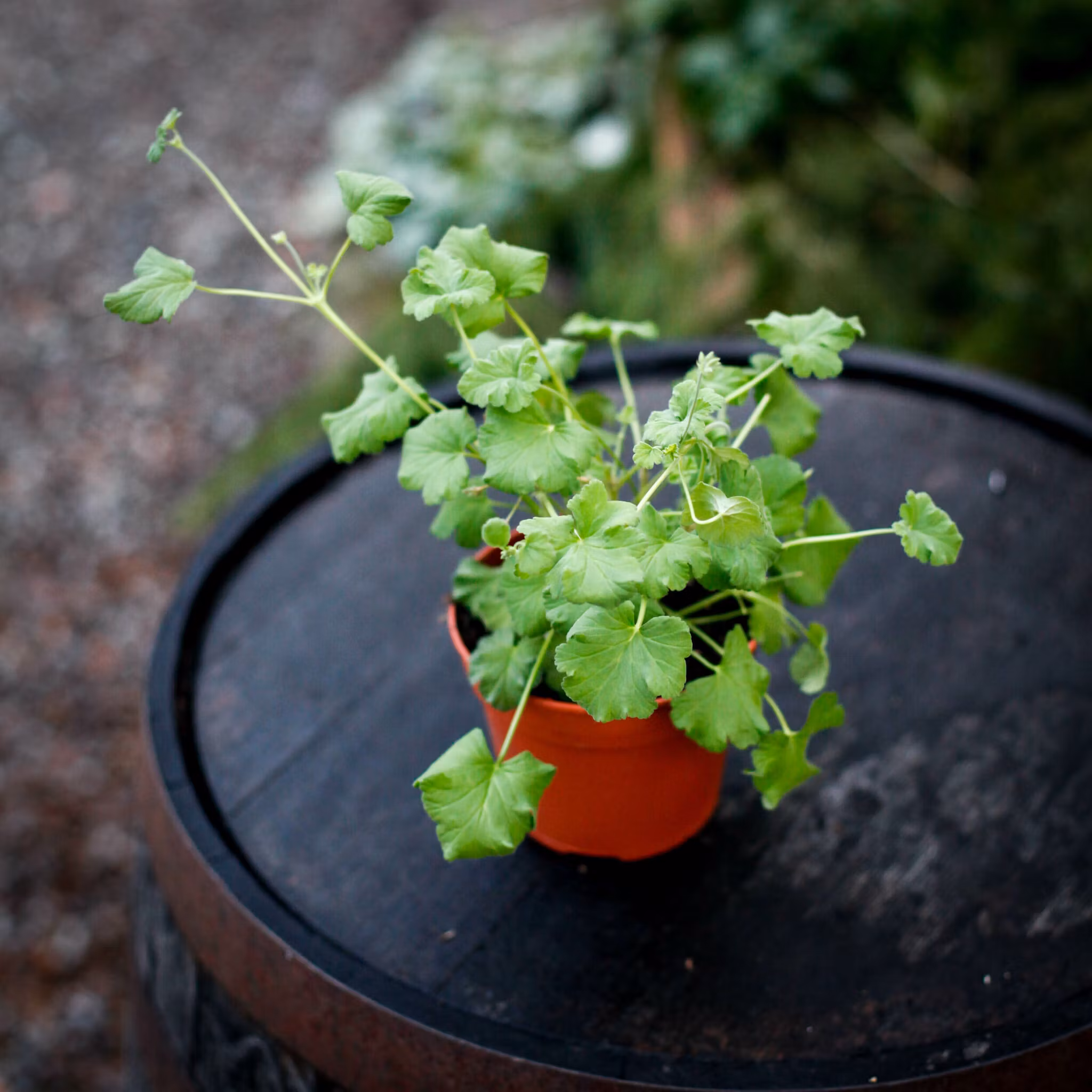 Upptäck Pelargon 'Fragrans' – en doftande skönhet med kryddiga, grågröna blad. Perfekt för fönsterbrädan och trädgården. Köp på Klorofyllverket.se!