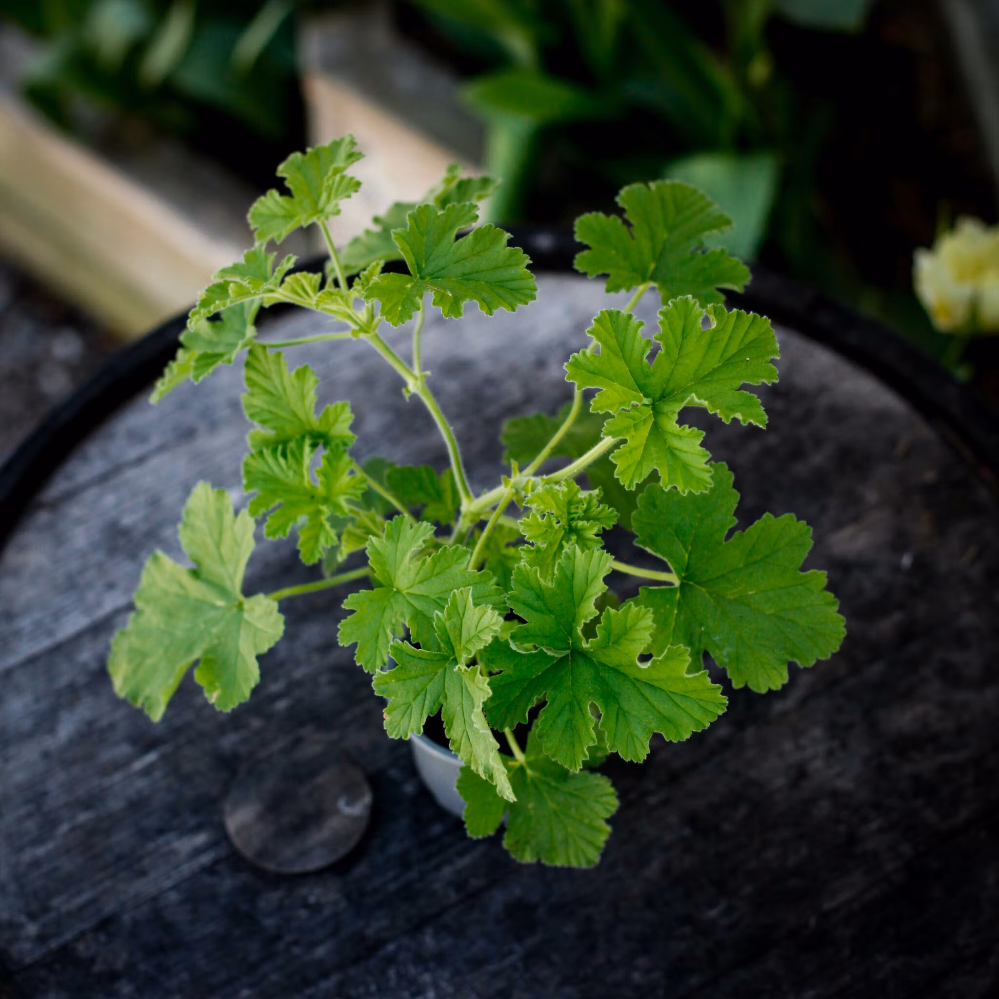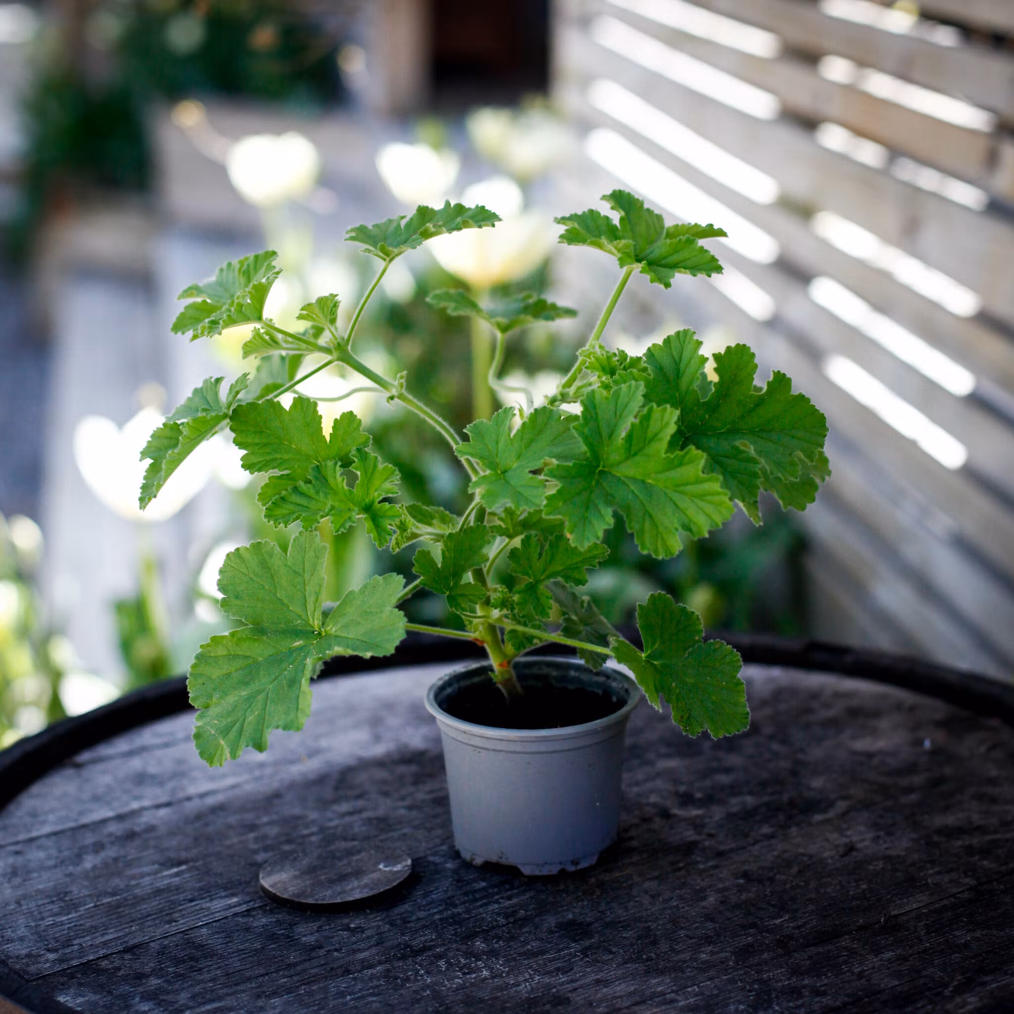 Upptäck Pelargonium 'Attar of Roses', en doftpelargon med ros- och citrondoft. Perfekt för stora krukor, växthus och kulinariska äventyr. 🌿