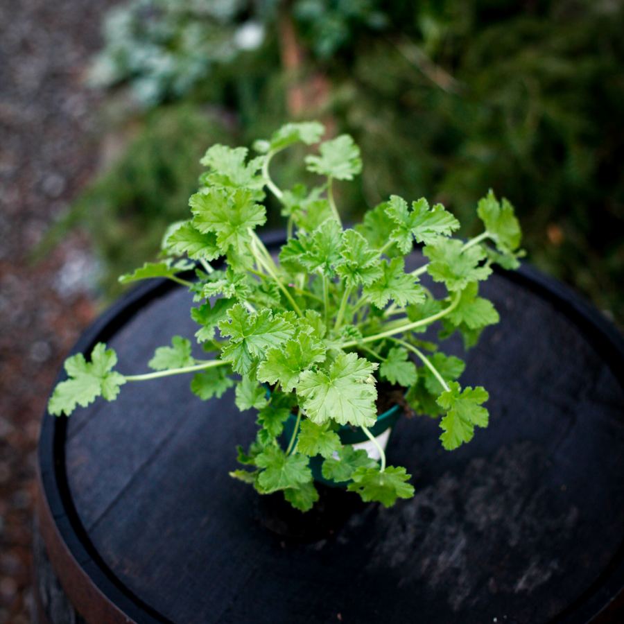 Pelargonium 'Attar of Roses' 12 cm - En doftpelargon med rosendoft och ljusrosa blommor. Perfekt för inomhus och utomhus, kräver sol och väldränerad jord.