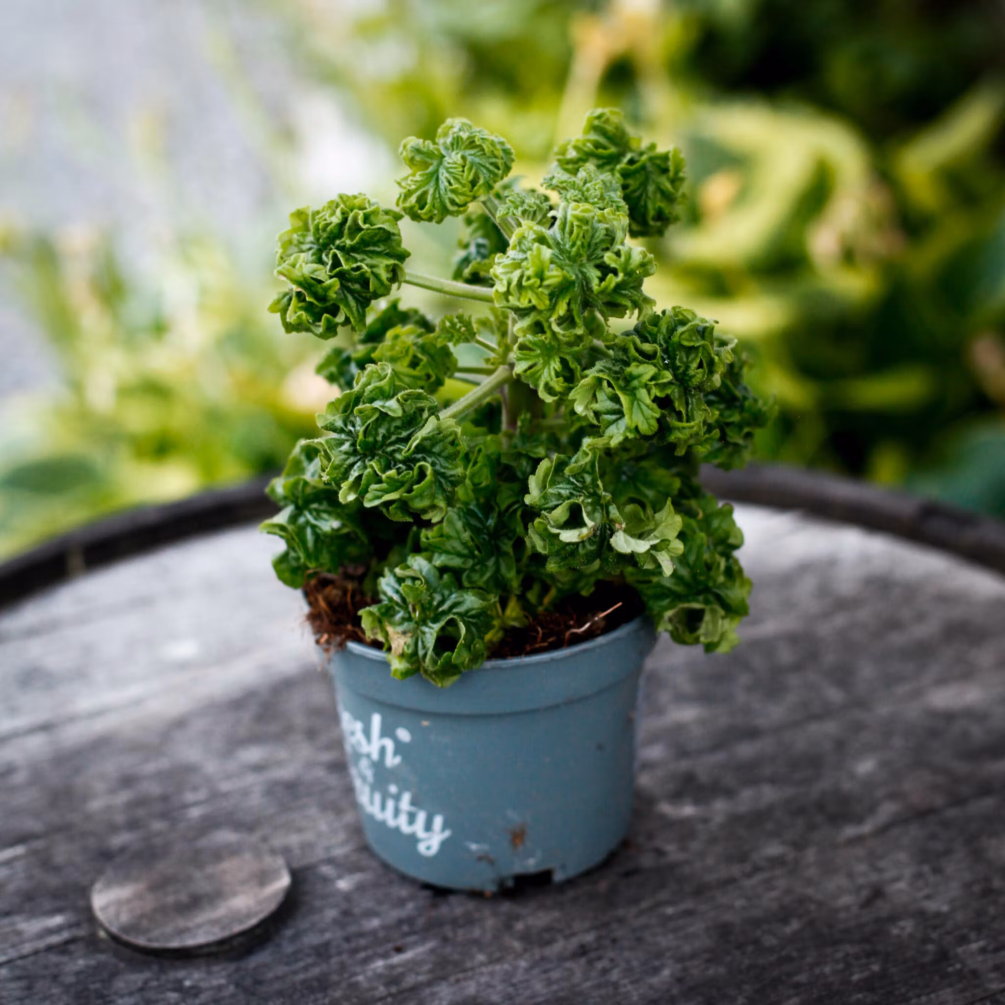 Pelargonium 'Bontrosai' är en sällsynt och fascinerande doftpelargon som imponerar med sina udda och vackra egenskaper. Den har ett kompakt, bonsailiknande växtsätt och är känd för sina rynkiga, skruvade blad. Denna ovanliga sort har också en underbar doft av ros och citrus.